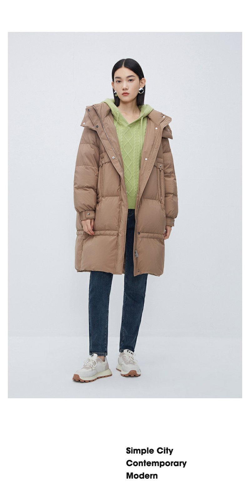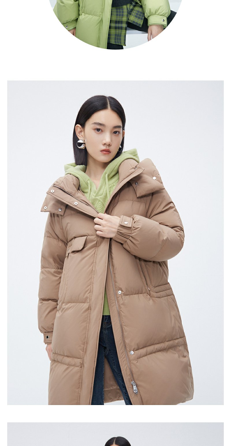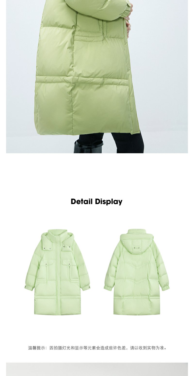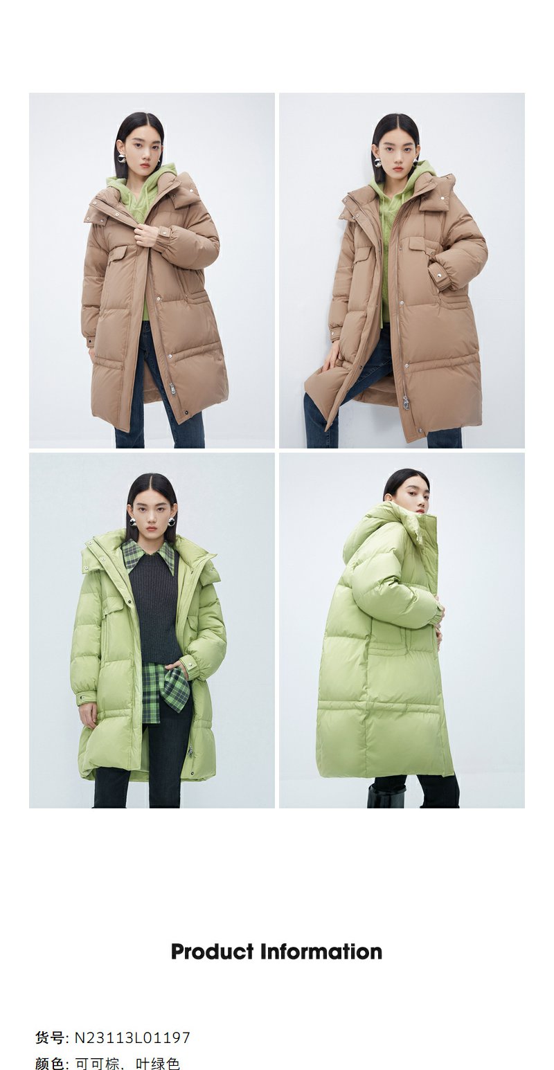 NEELLY纳俪商场同款纯色中长款白鸭绒羽绒服女冬季加厚连帽面包服N24114L04627