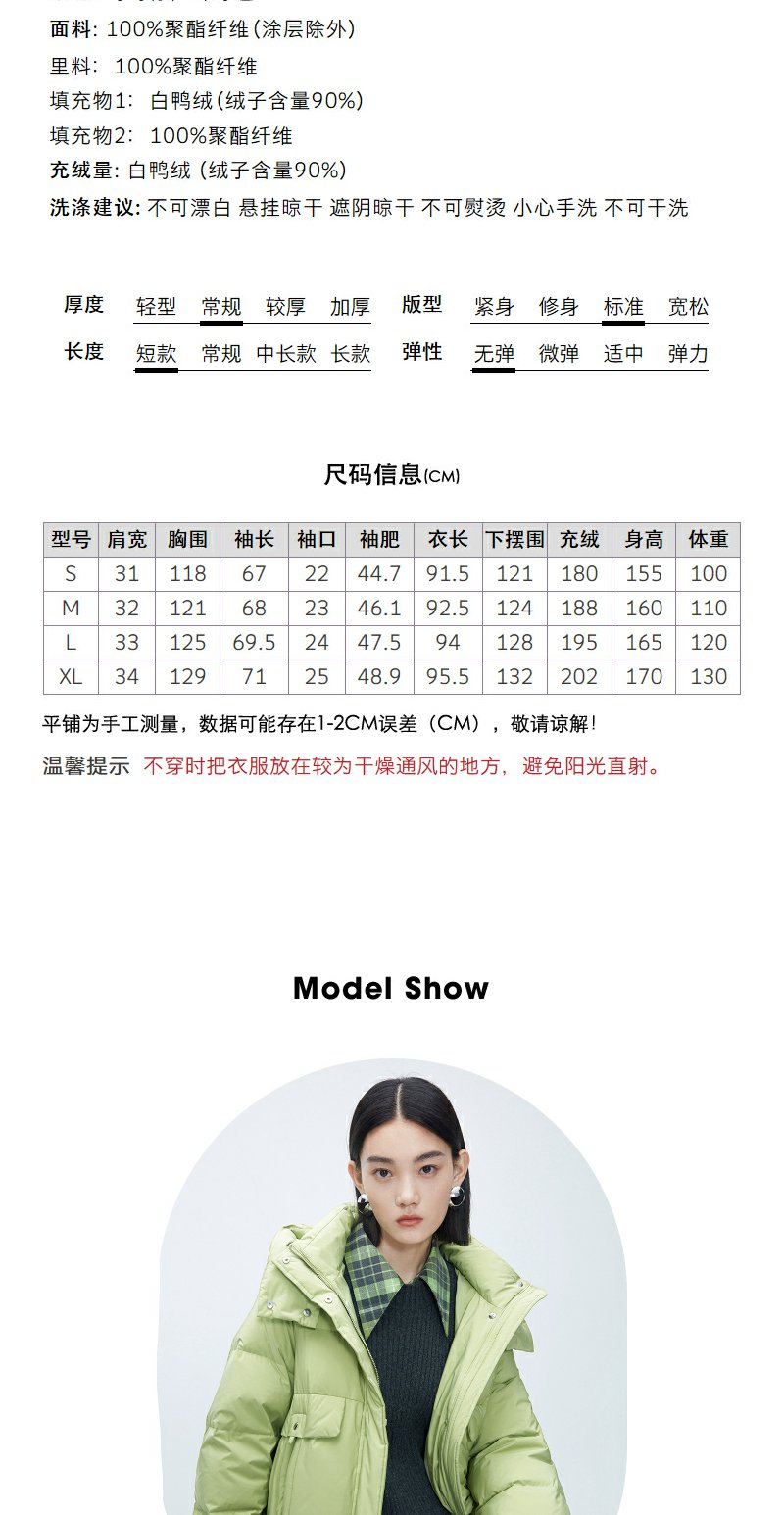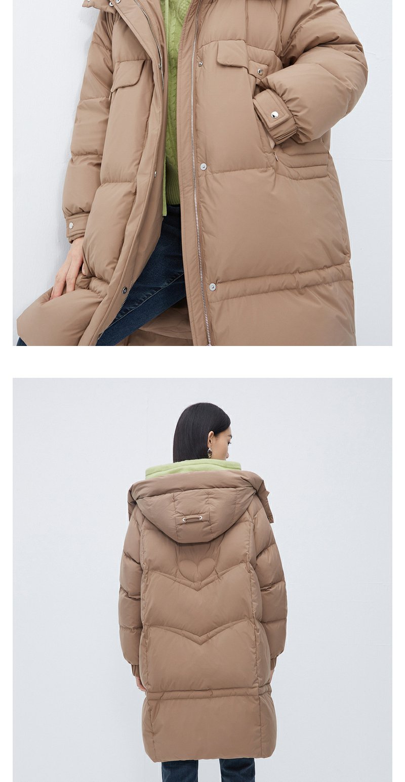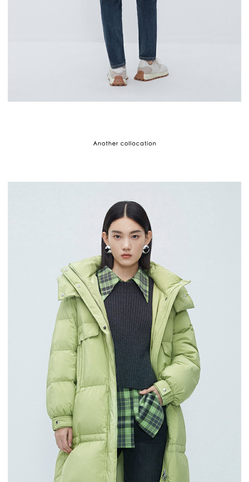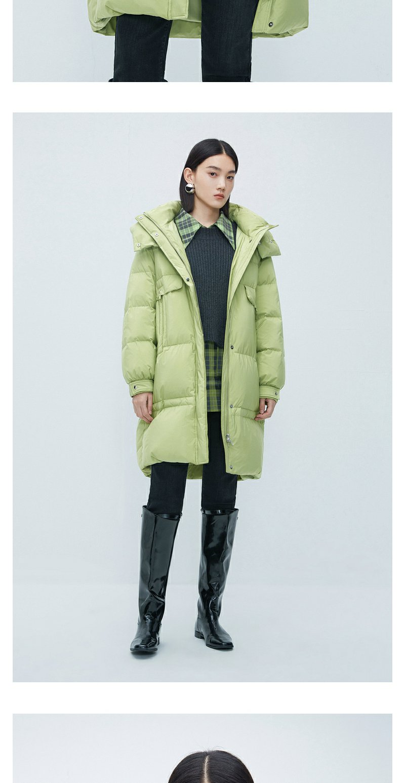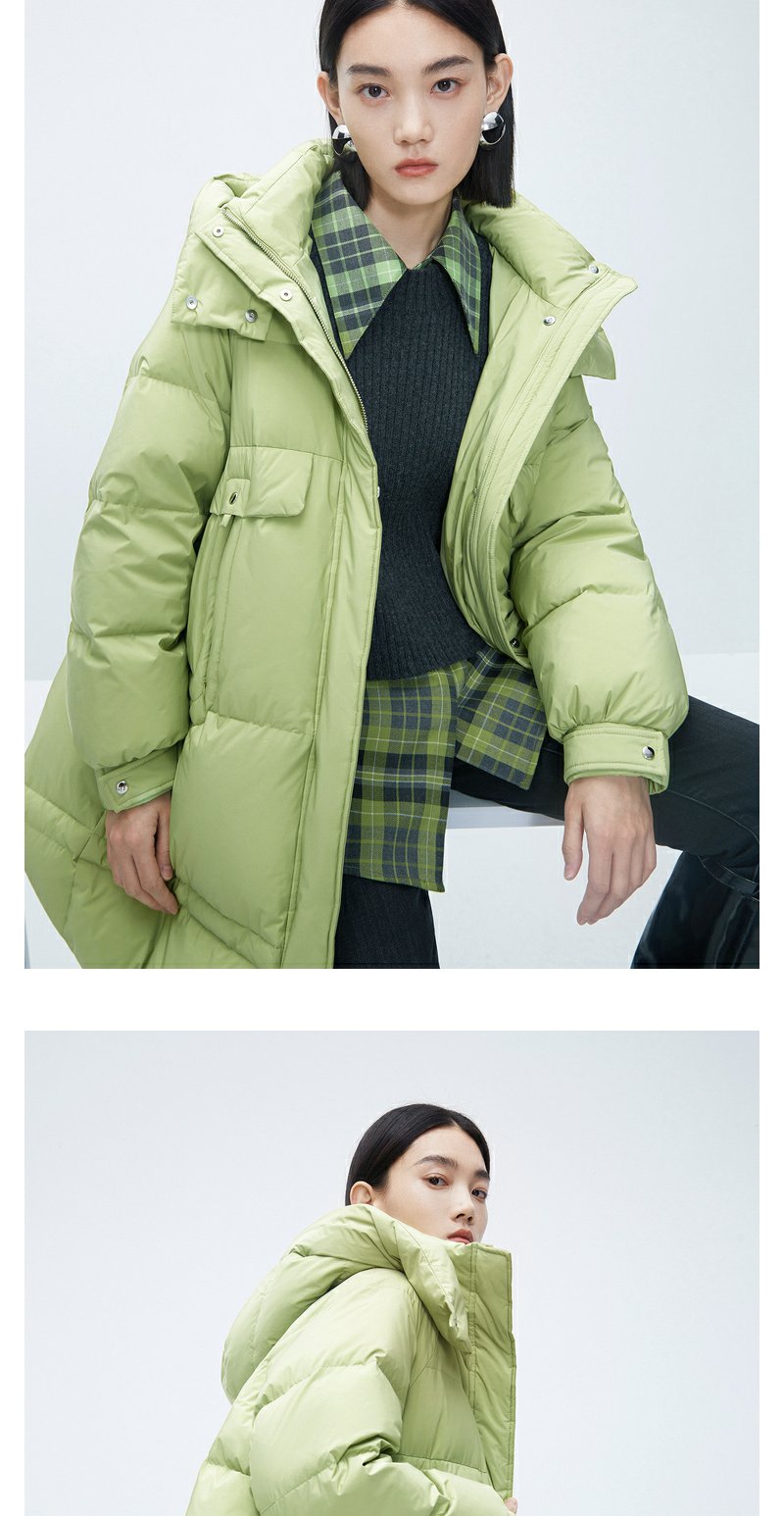 NEELLY纳俪商场同款纯色中长款白鸭绒羽绒服女冬季加厚连帽面包服N24114L04627