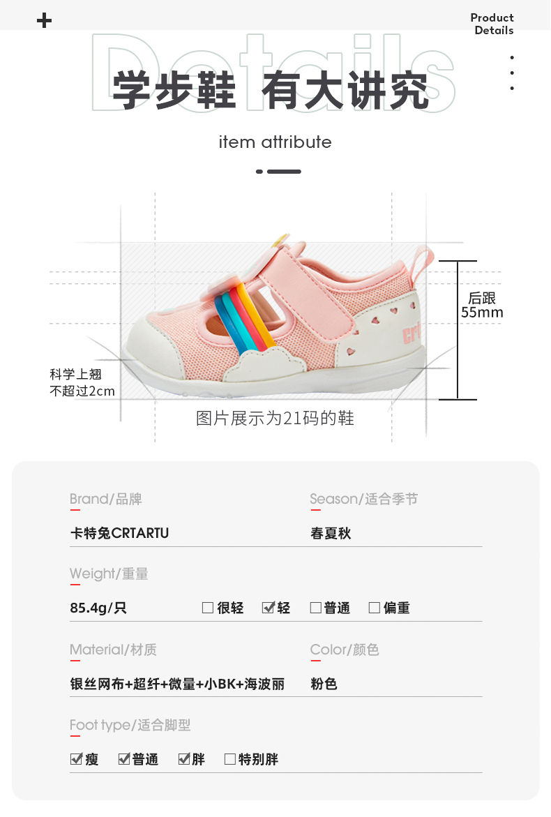 卡特兔喵喵鞋幼儿园室内鞋宝宝学步鞋婴儿鞋小白鞋女童板鞋机能鞋