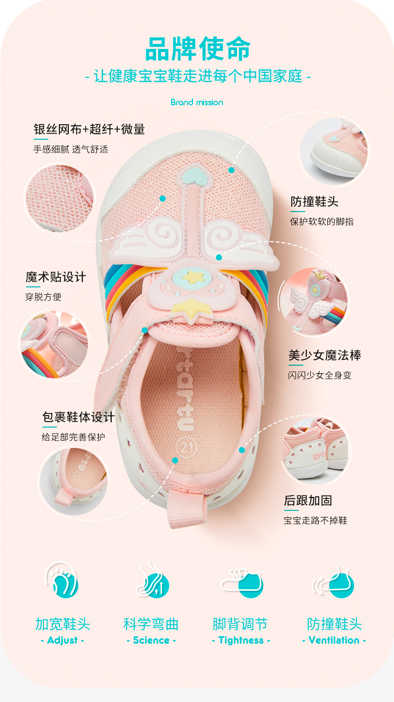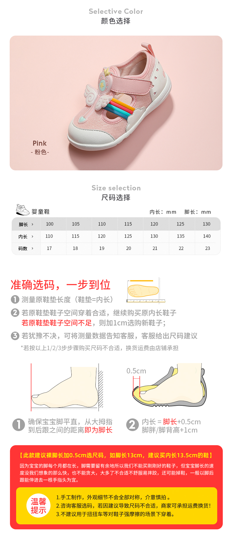 卡特兔春夏秋款宝宝小魔仙凉鞋 粉 一段
