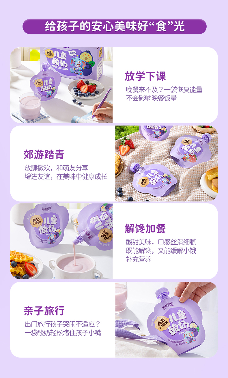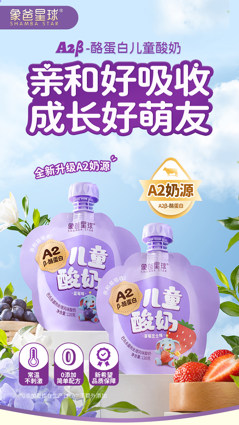 新希望象爸星球A2β-酪蛋白儿童常温果味酸奶10袋 草莓芝士味/蓝莓味 礼袋礼盒随机发 2月生产