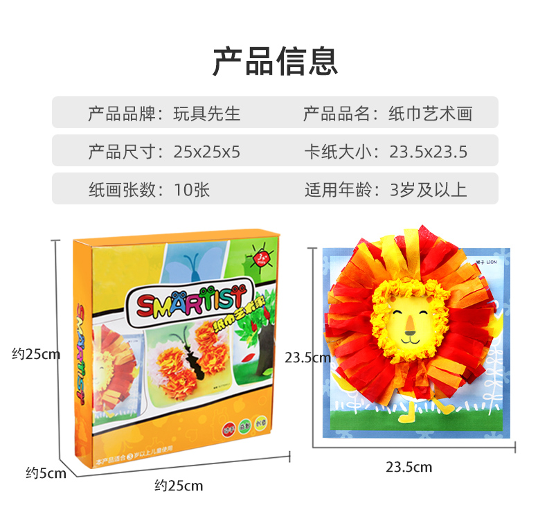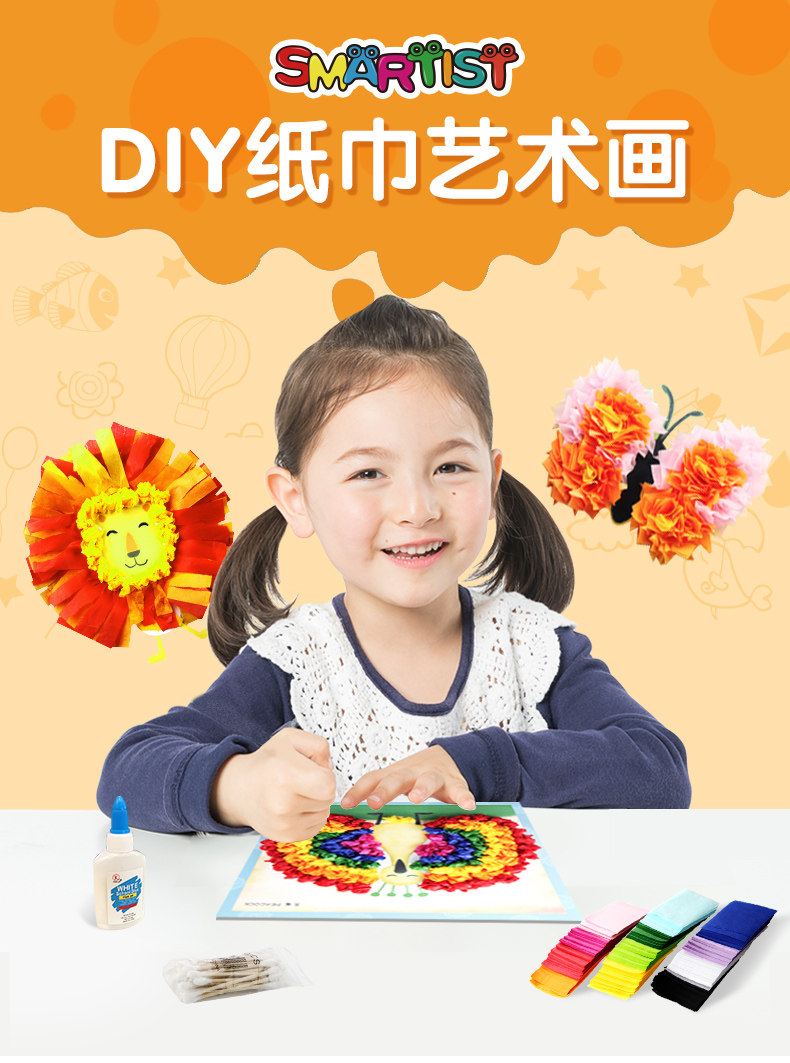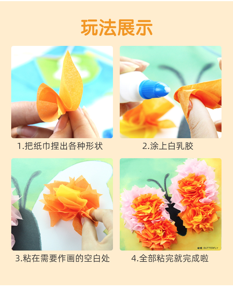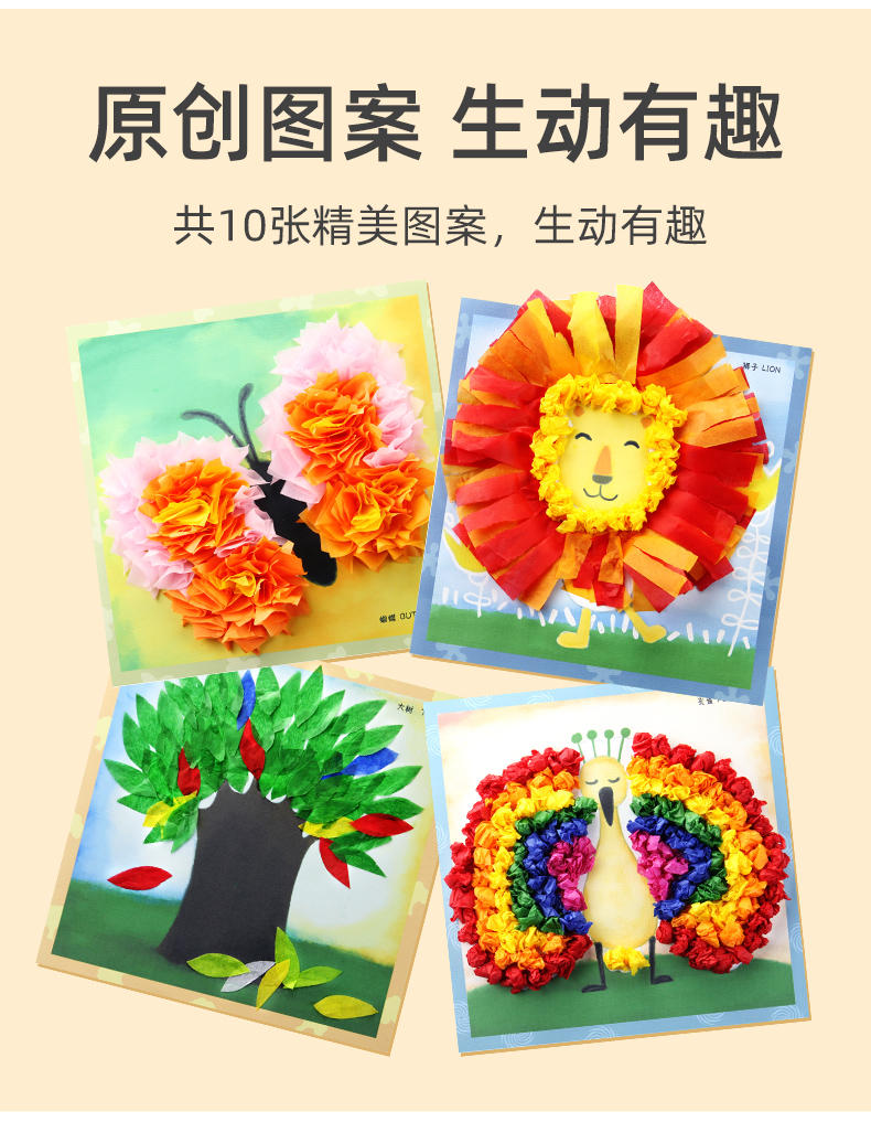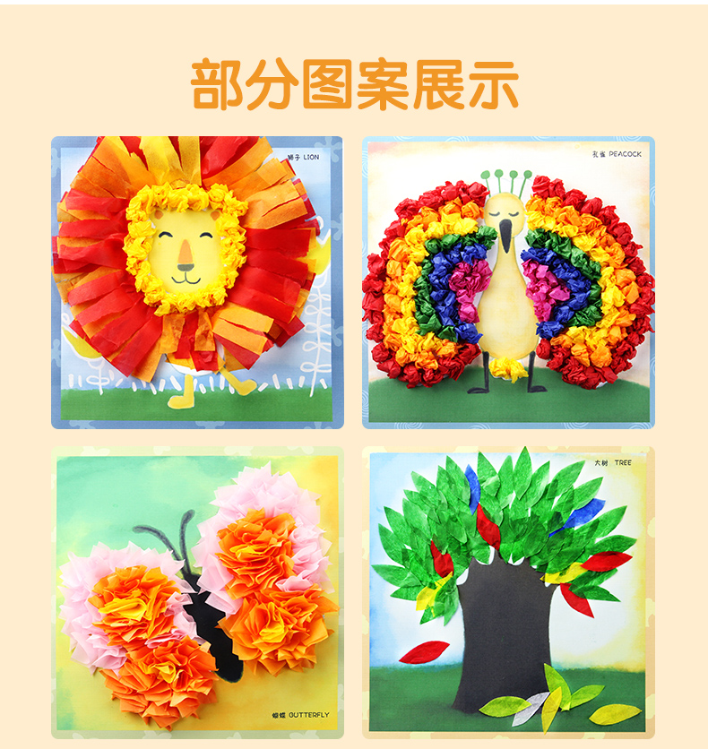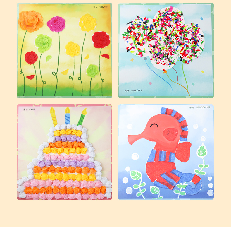 玩具先生创意纸巾画套装儿童手工制作材料包DIY幼儿园搓纸糅纸粘贴画男女孩