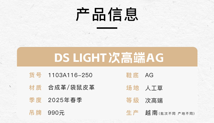 小李子亚瑟士DS LIGHT PRO次顶AG短钉袋鼠皮足球鞋1103A116-250