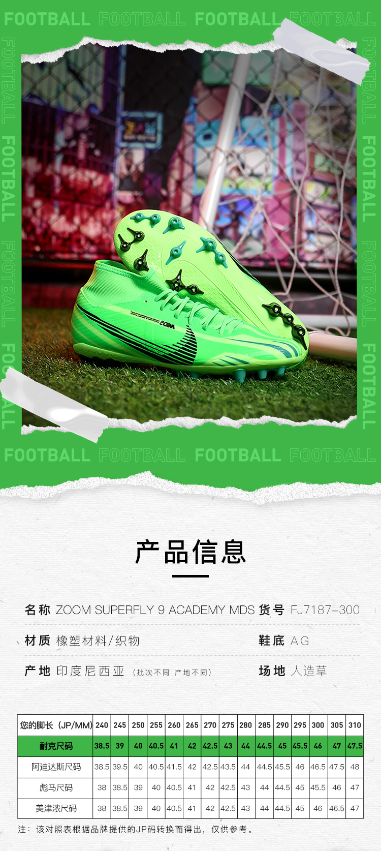 NIKE耐克刺客15中端高帮AG短钉成人足球鞋男FJ7187-300