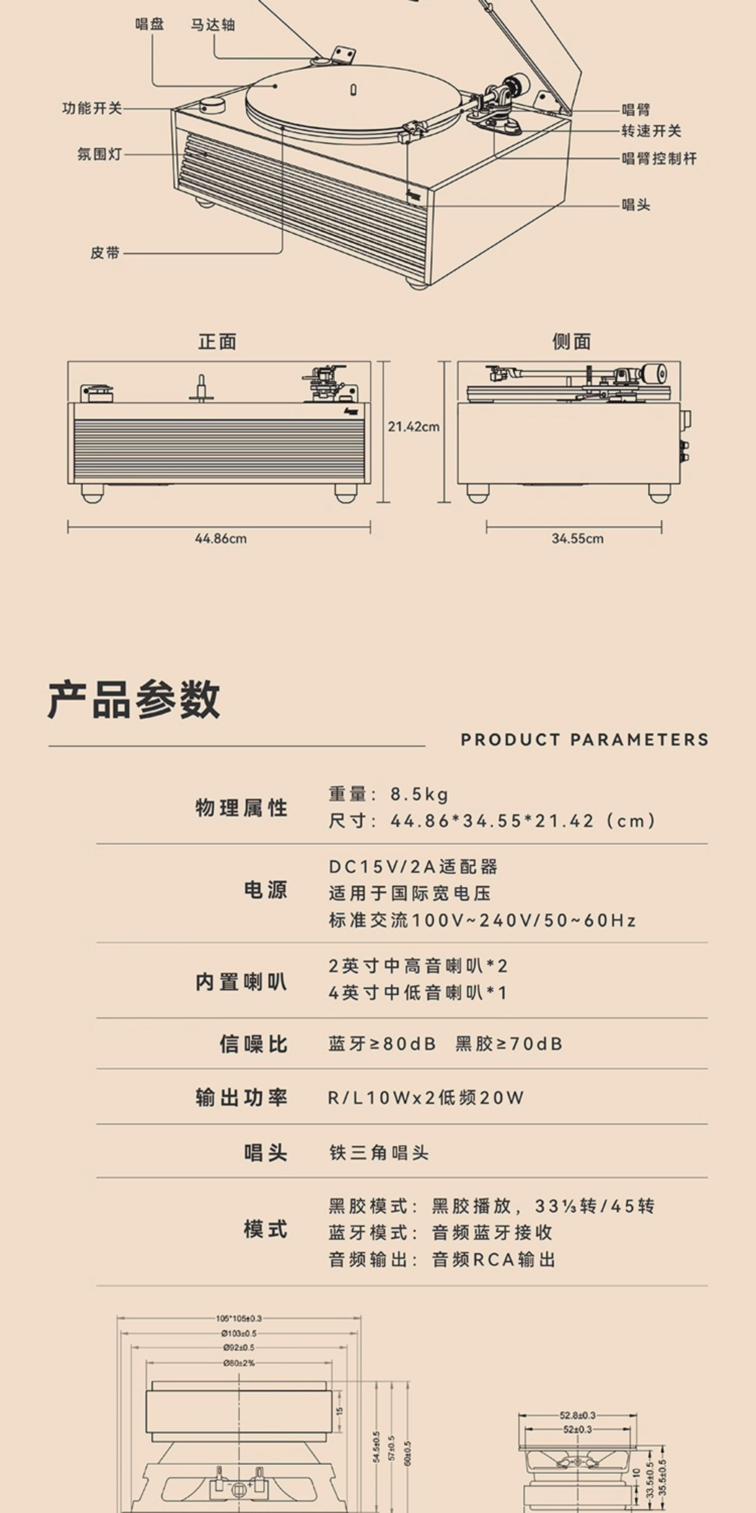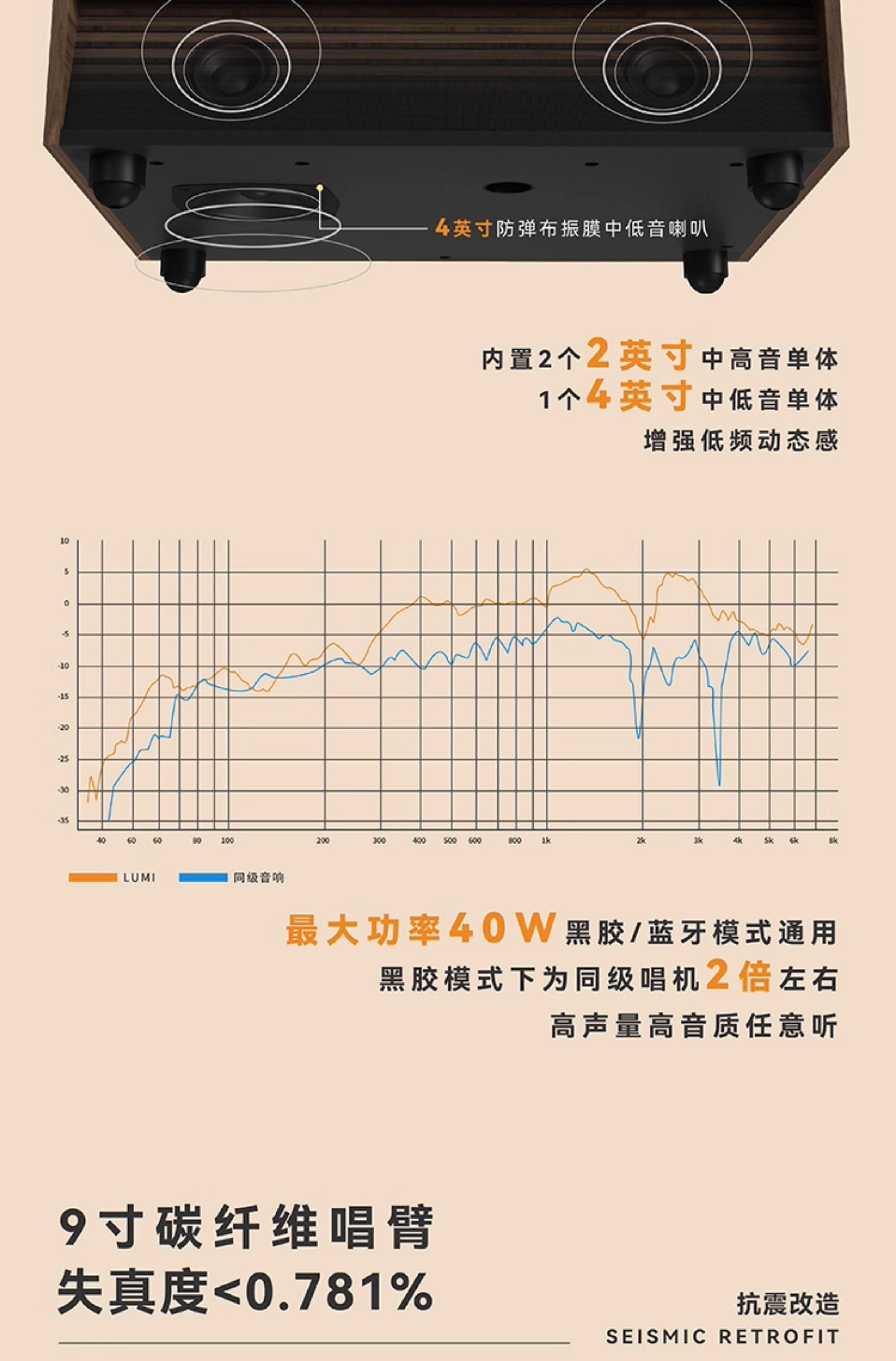 HYM/嘿哟 LUMI黑胶唱机(随机赠送唱片)
