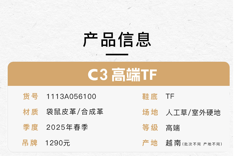 小李子亚瑟士C3 FF 高端TF碎钉袋鼠皮足球鞋成人男1113A056-100