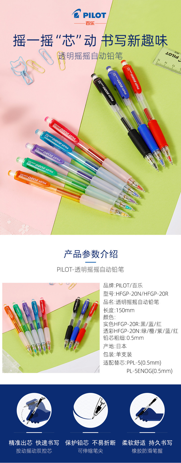百乐透明摇摇自动铅笔办公学生考试学习用品绘画