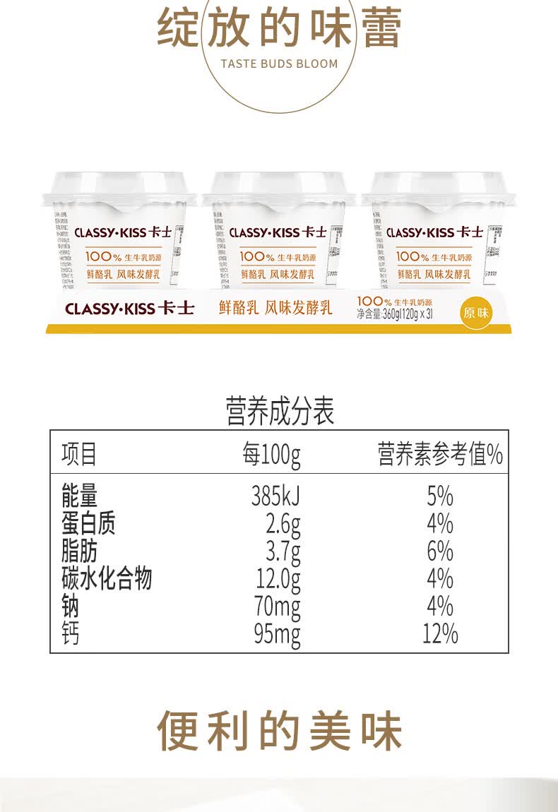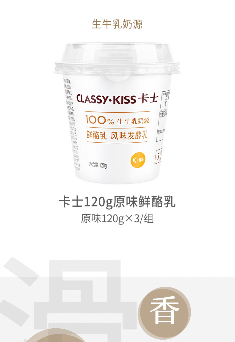 卡士/CLASSY-KISS 鲜酪乳 原味 风味发酵乳 120g*3杯/组