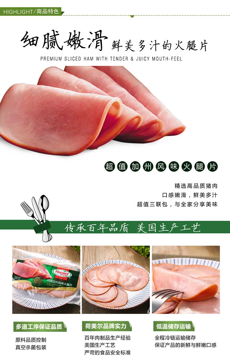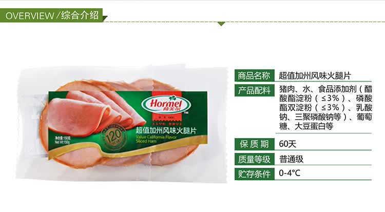 荷美尔 加州风味火腿片 150g/袋 儿童早餐三明治火腿切片烧烤食材