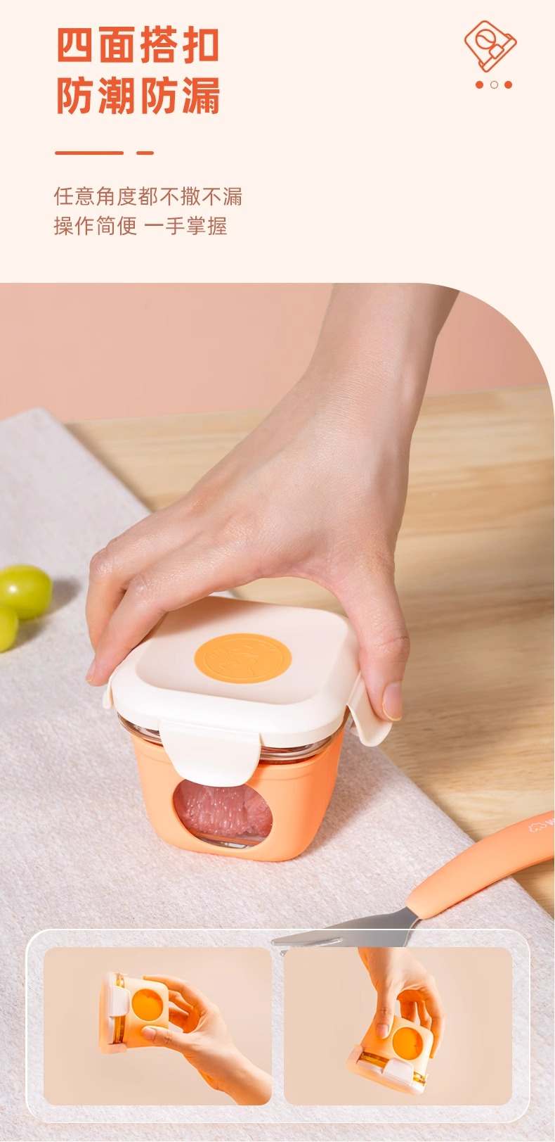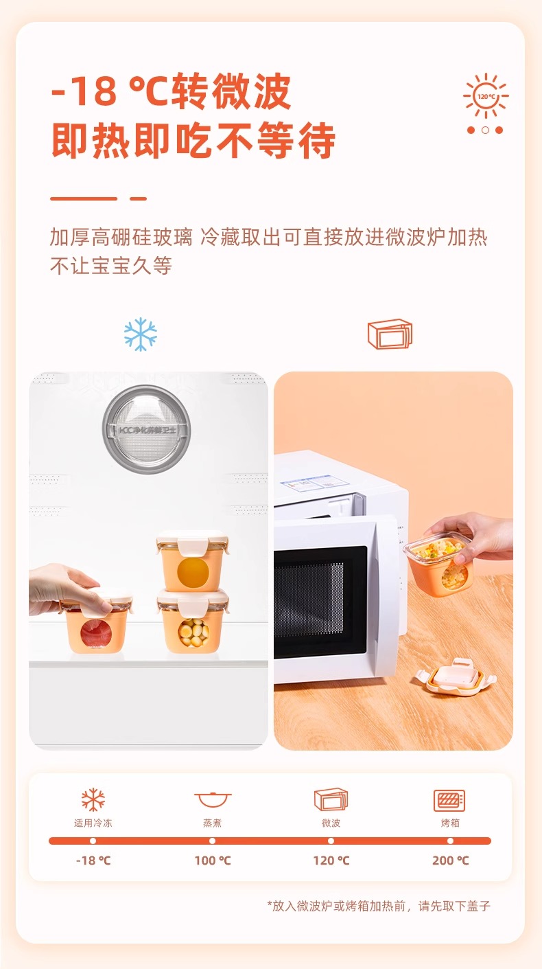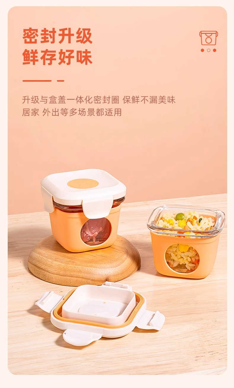 松下婴儿玻璃密封辅食盒桔色
