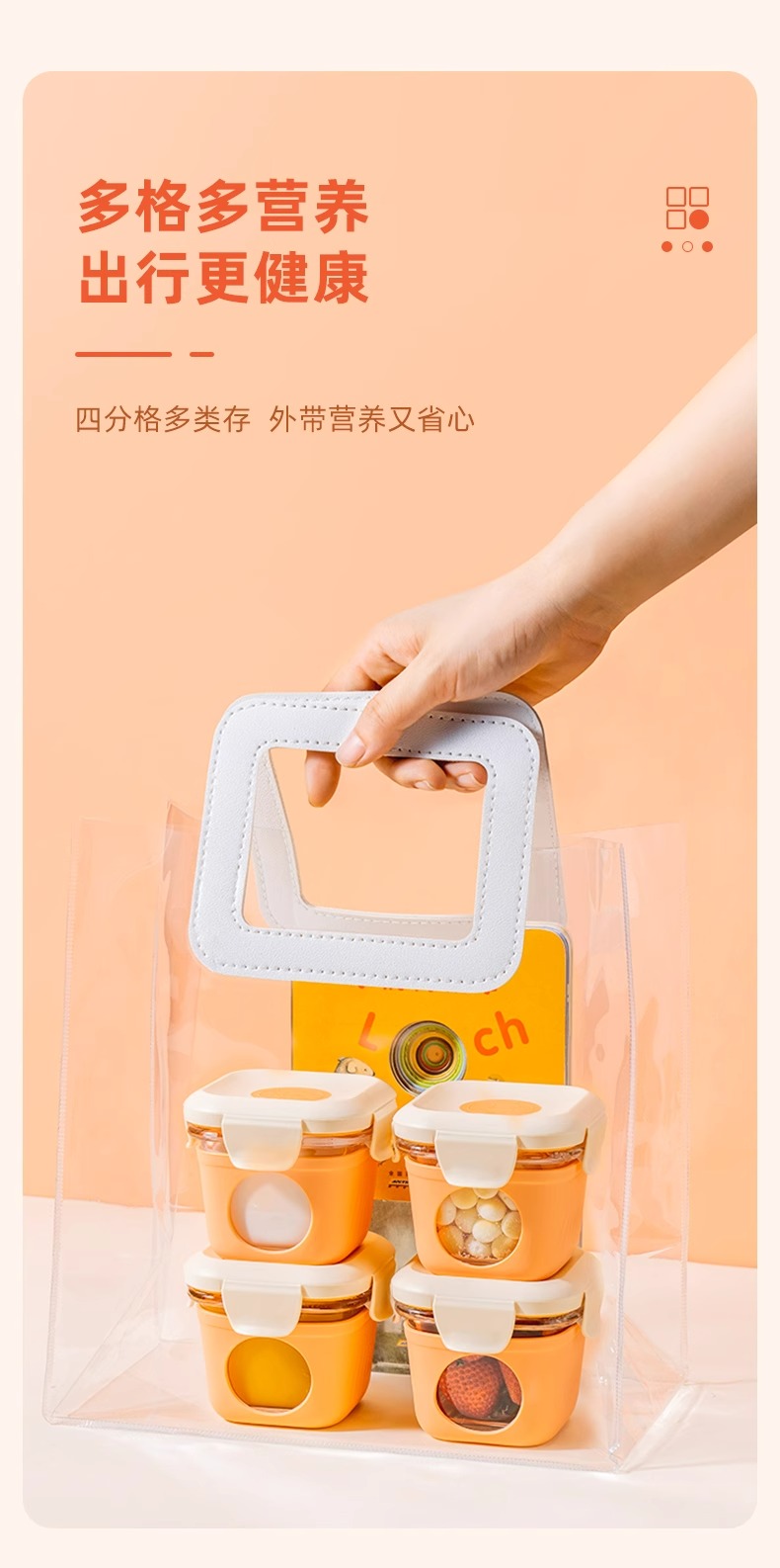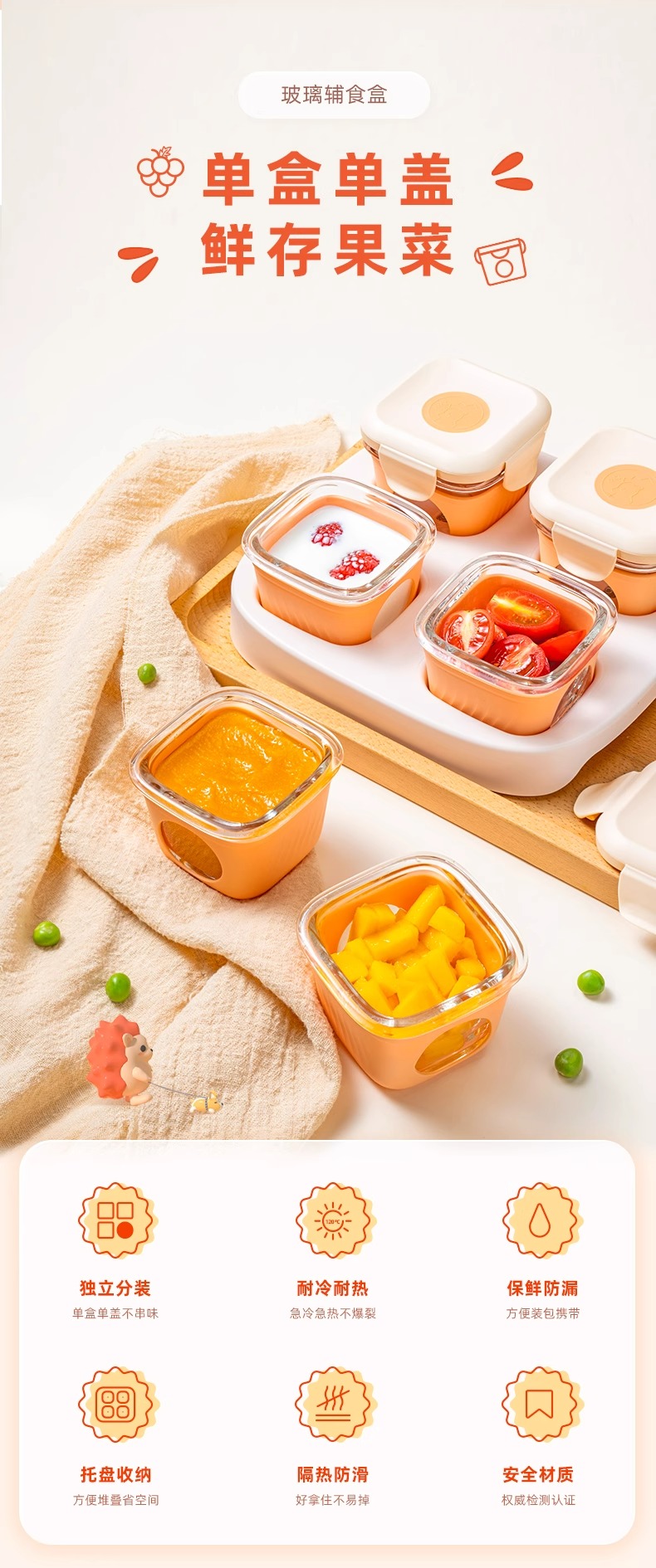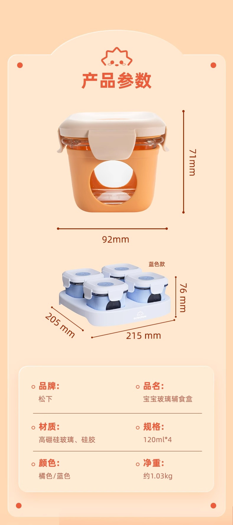 松下婴儿玻璃密封辅食盒桔色