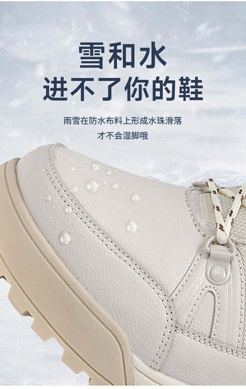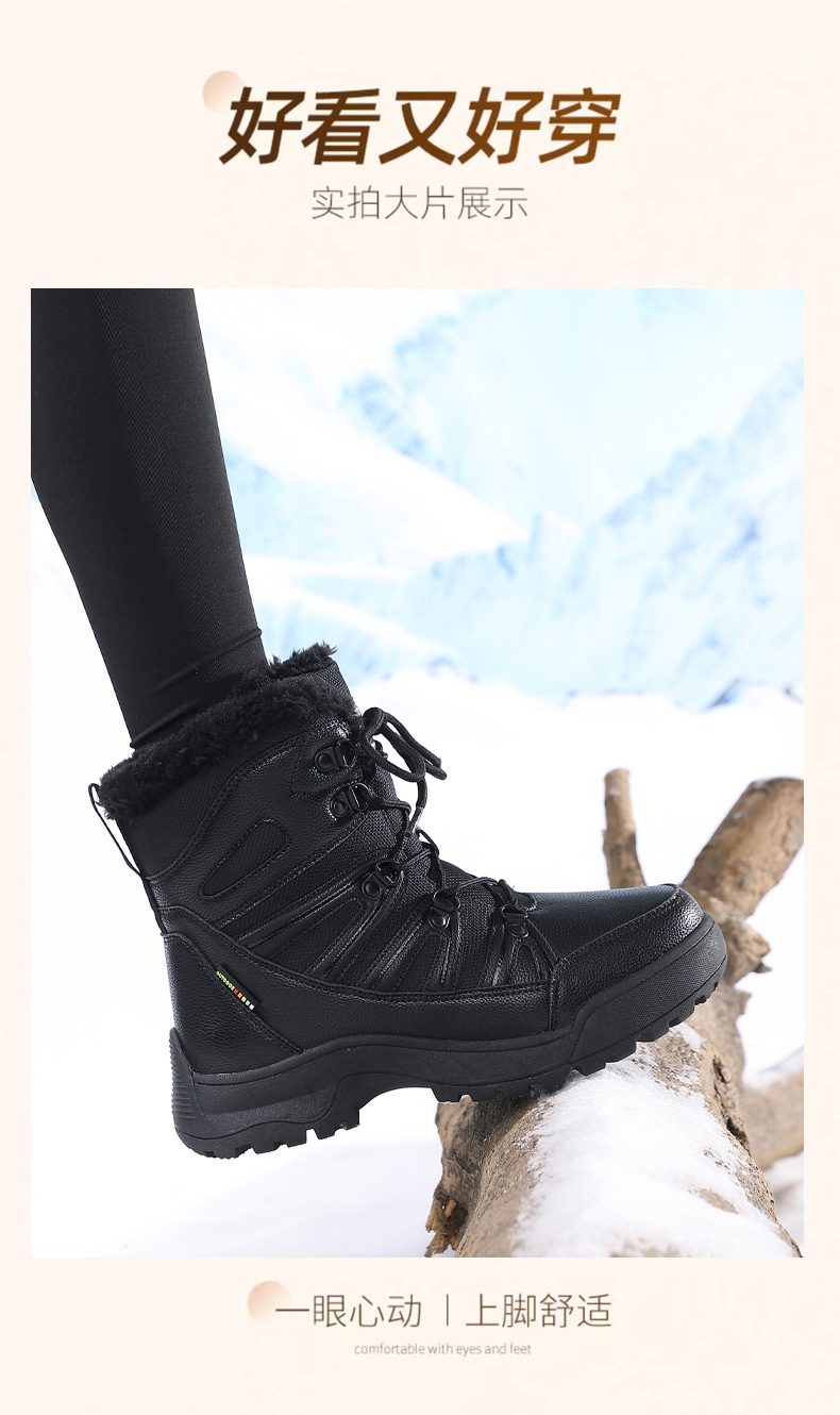 【冬季雪地靴毛绒保暖棉鞋】耐磨防风 运动户外高帮系带女靴大码