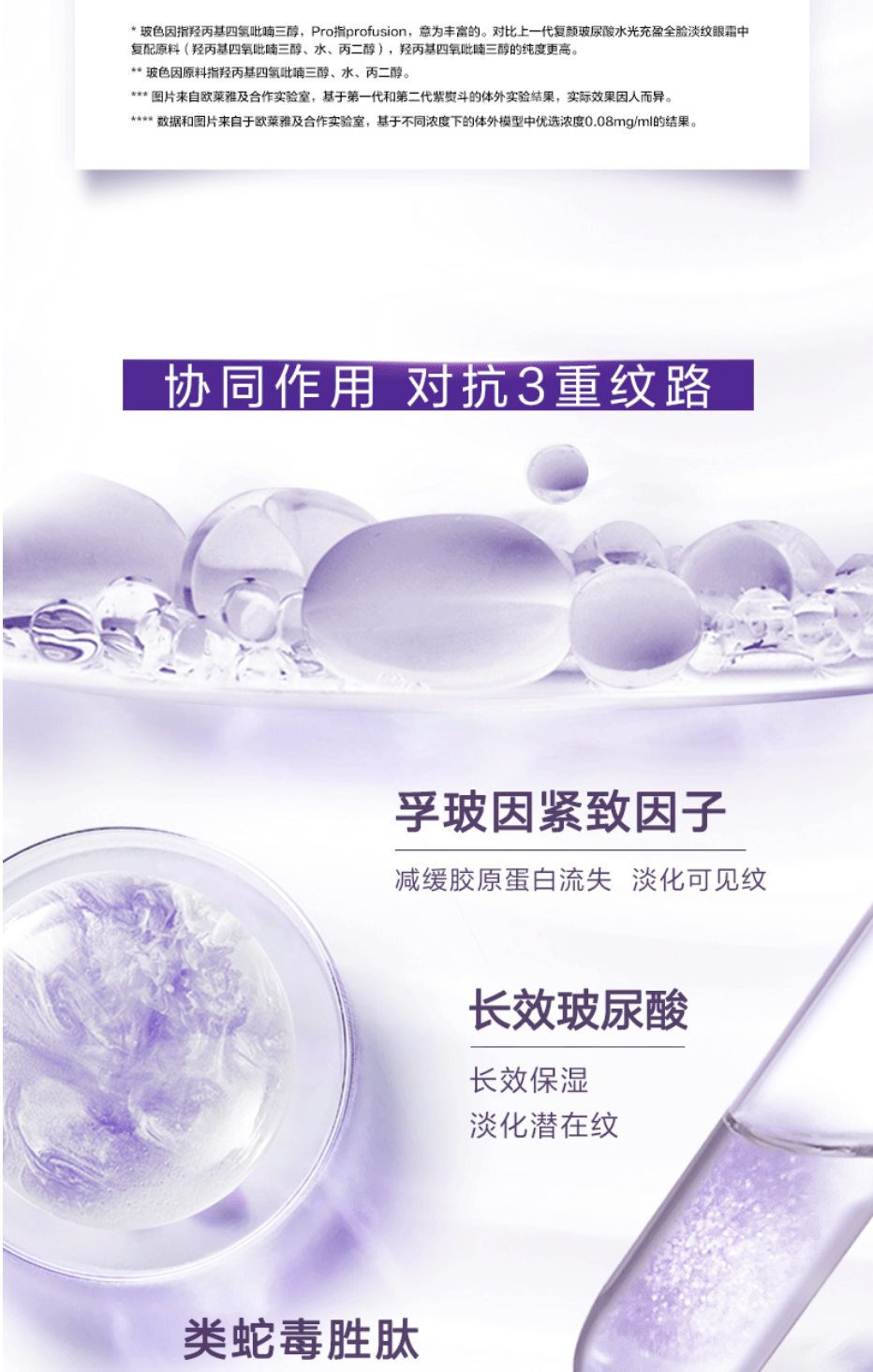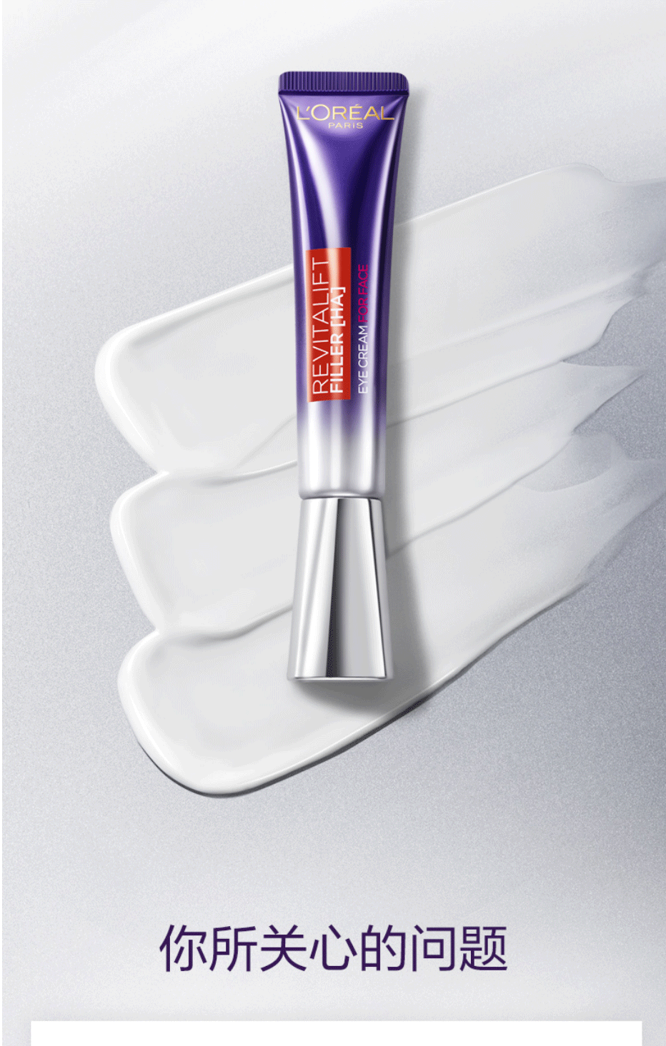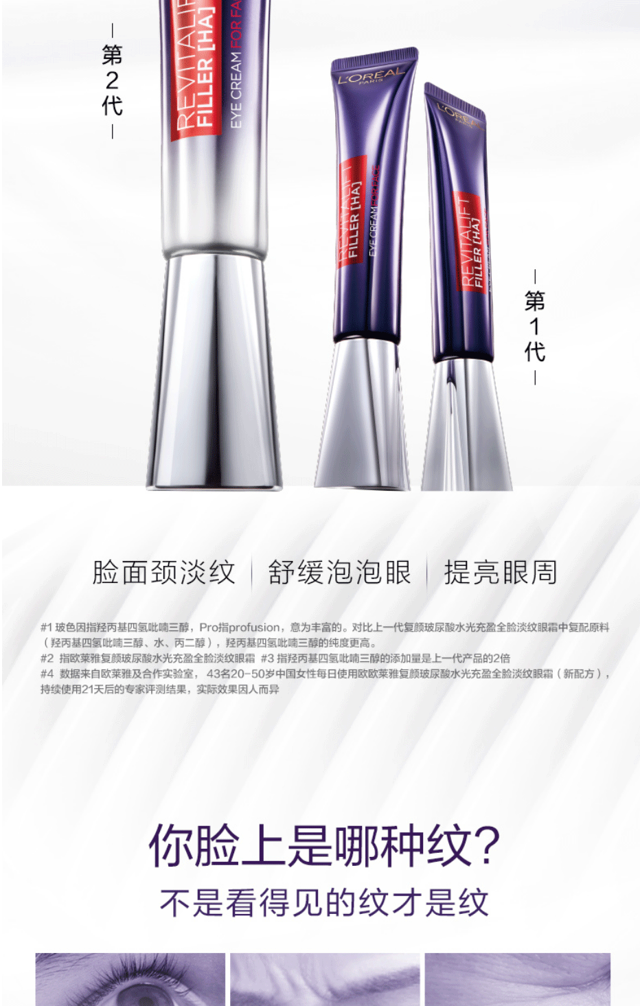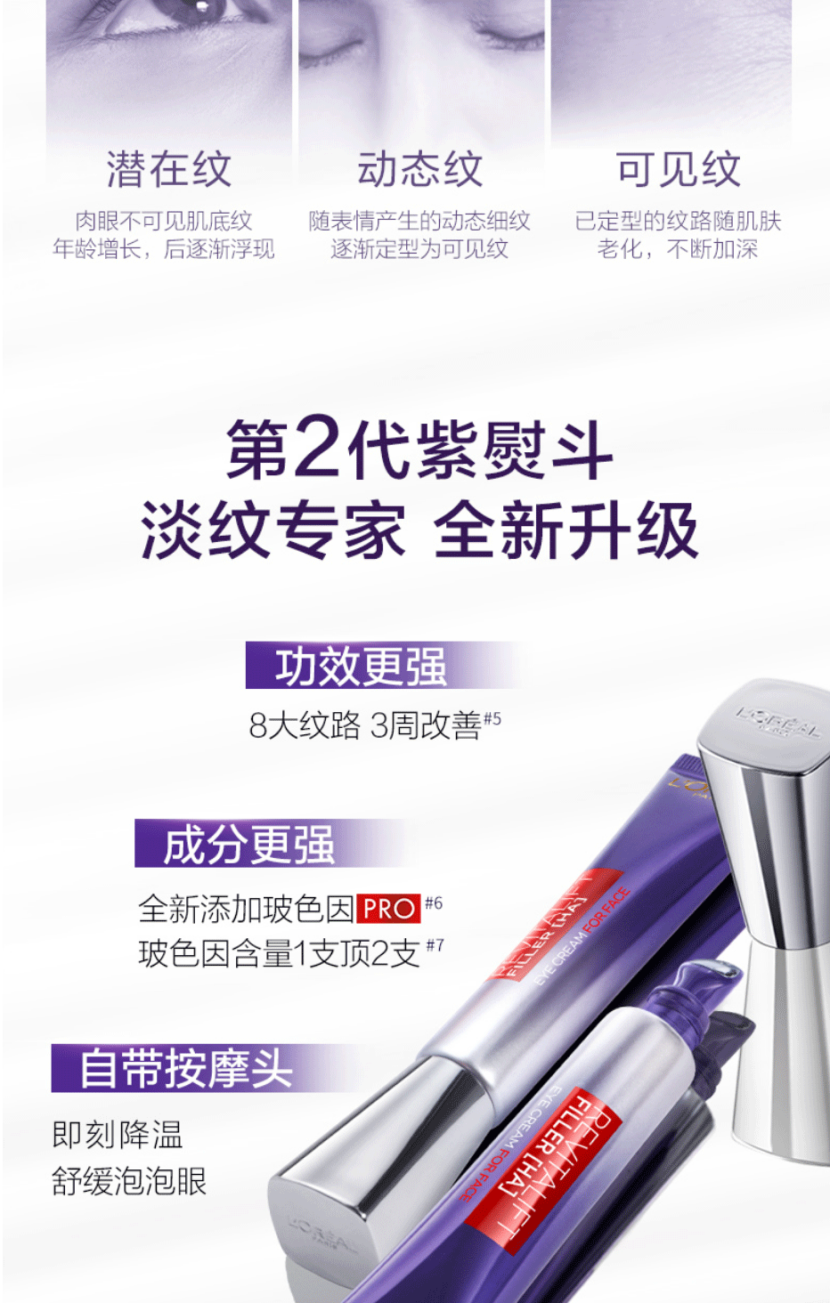 欧莱雅第二代紫熨斗复颜玻尿酸水光充盈全脸淡纹眼霜