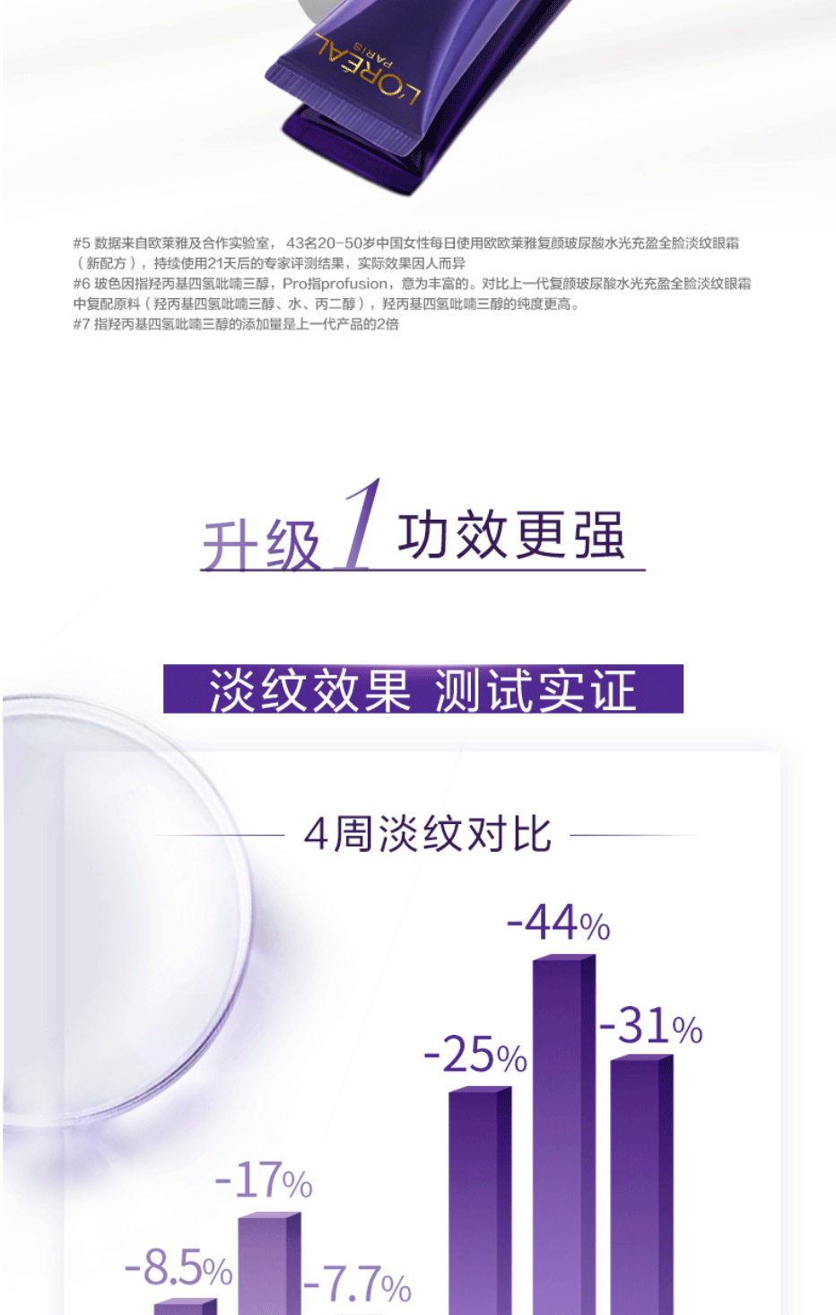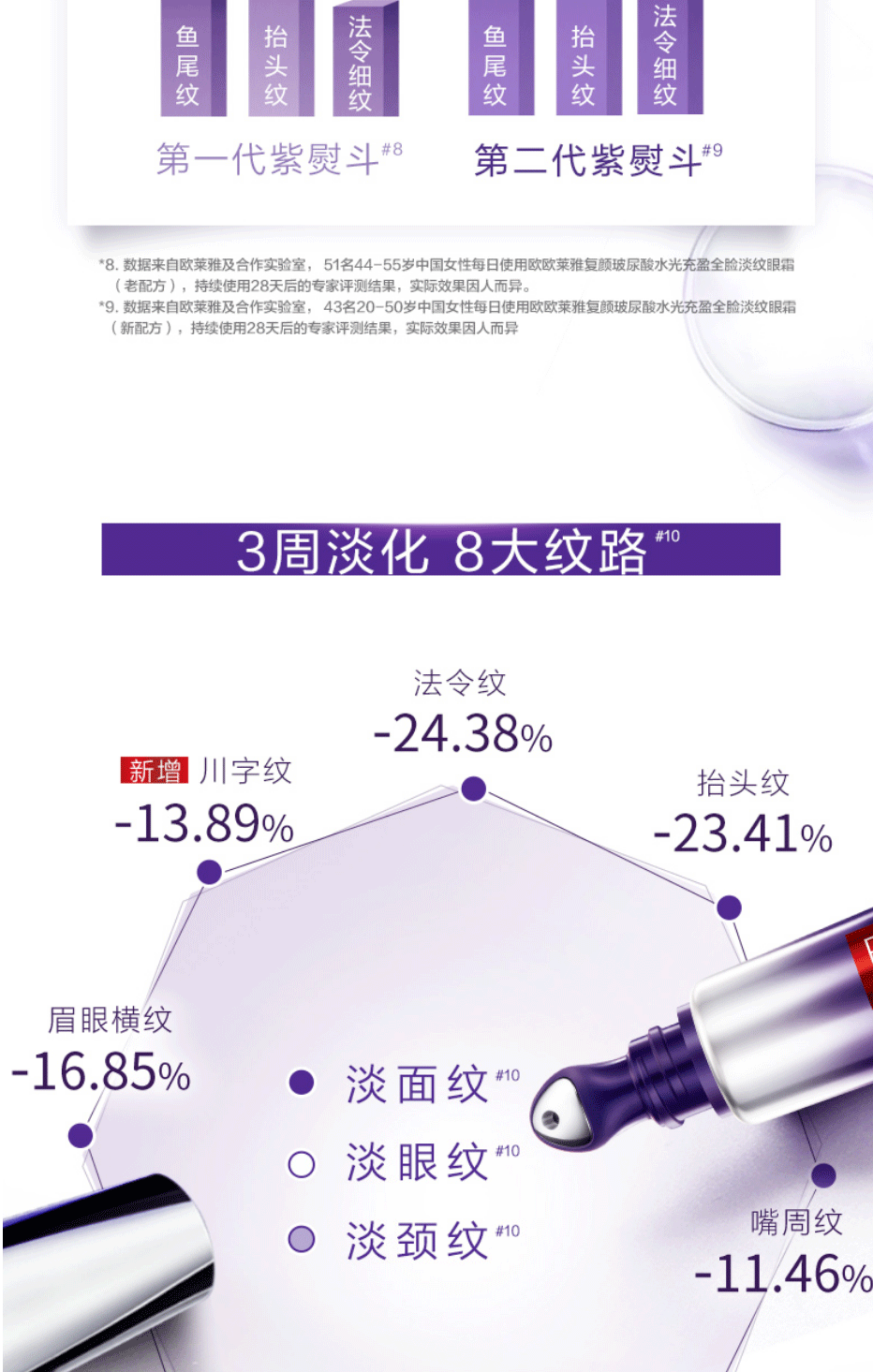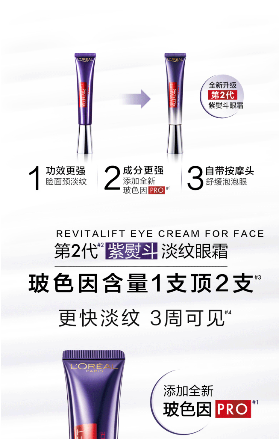 欧莱雅第二代紫熨斗复颜玻尿酸水光充盈全脸淡纹眼霜