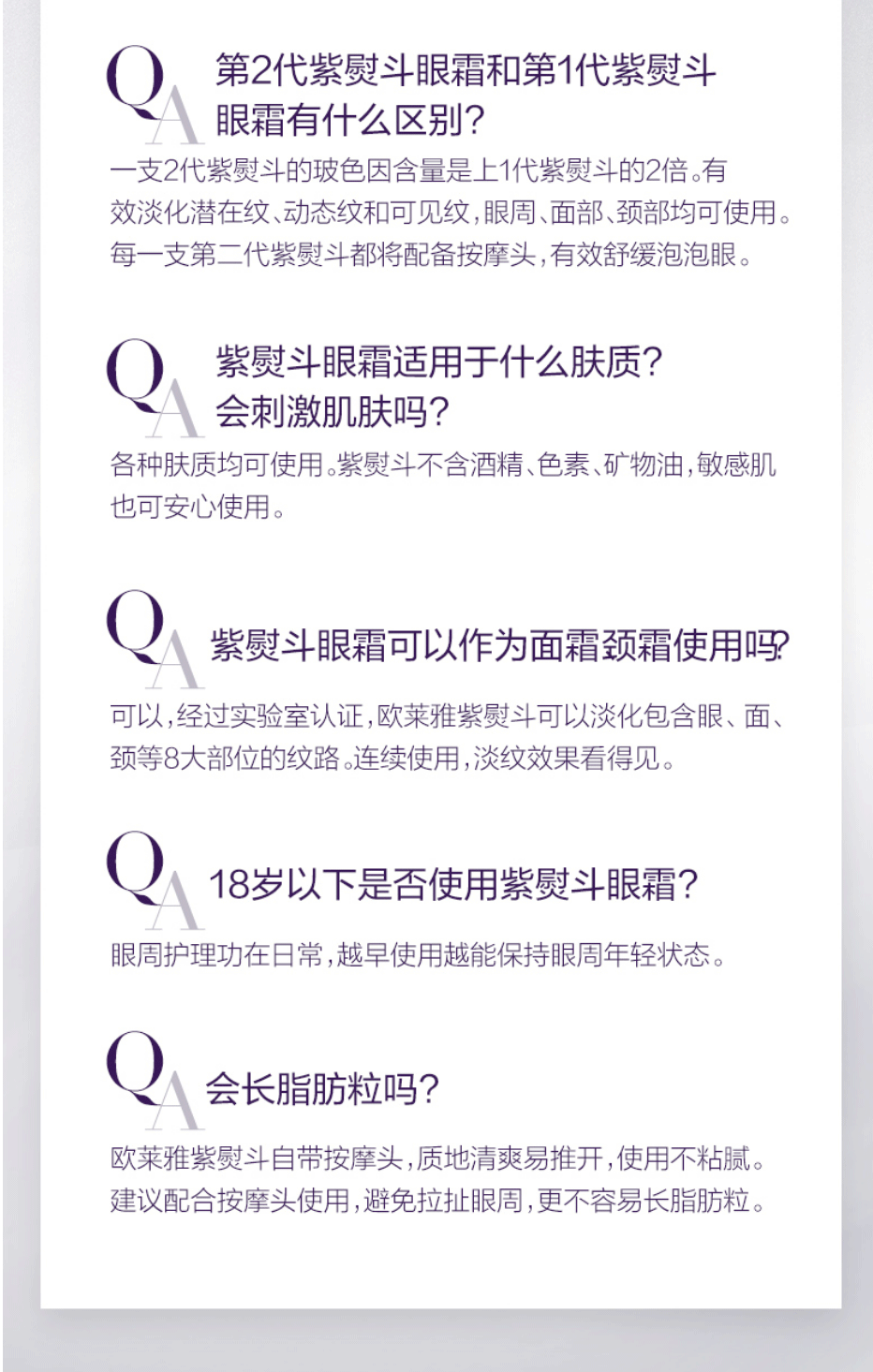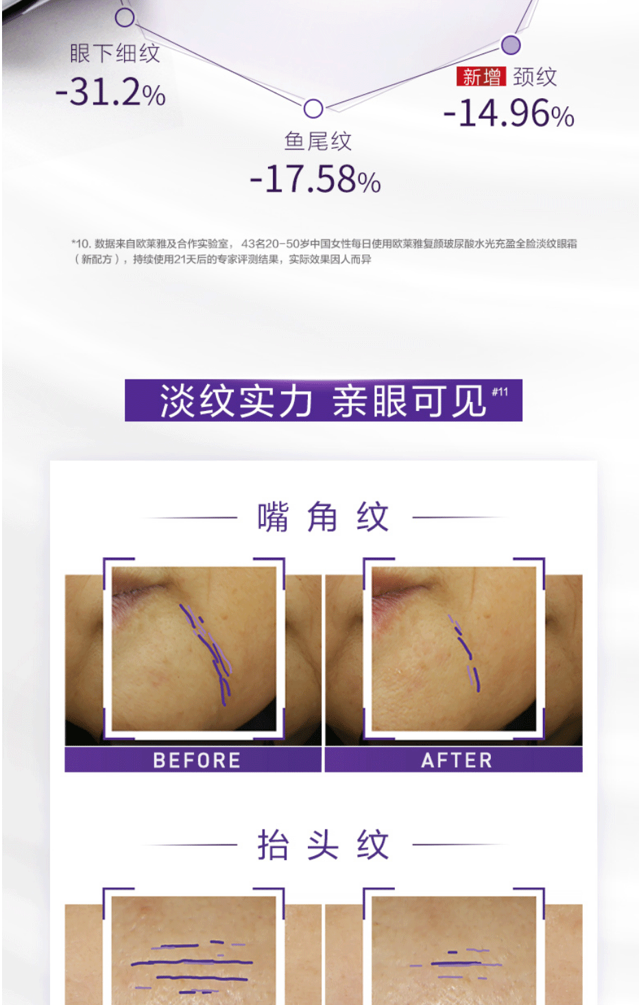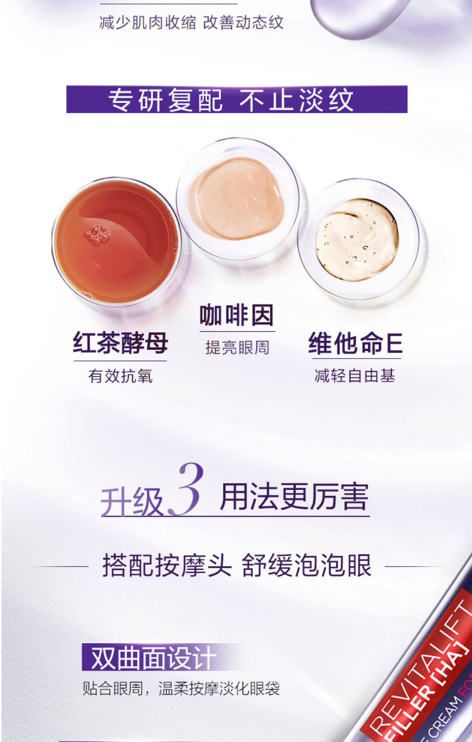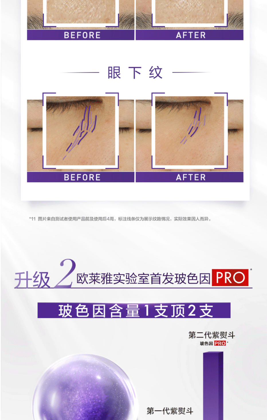 欧莱雅第二代紫熨斗复颜玻尿酸水光充盈全脸淡纹眼霜