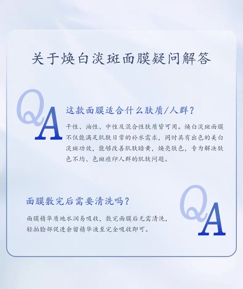 【美白淡斑面膜】焕白淡斑面膜 持美白特征 击退暗沉 减少黑色素