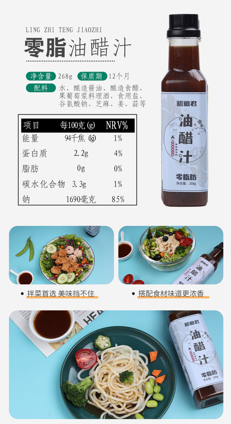 【已下架】积分换购 | 粗粮君 零脂油醋汁3瓶 轻食低卡和风调味汁[福利品]