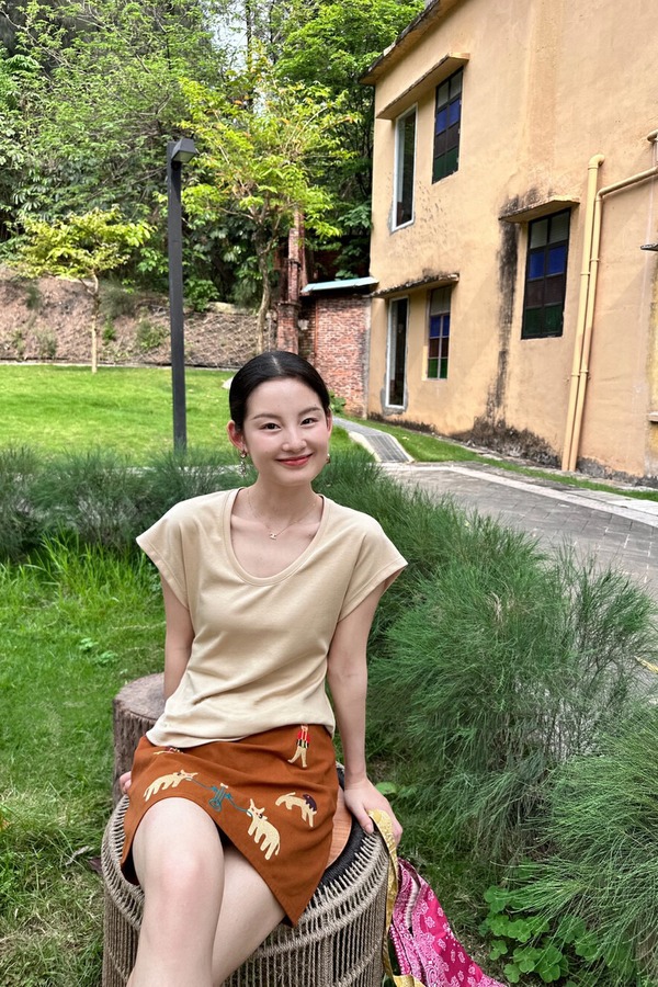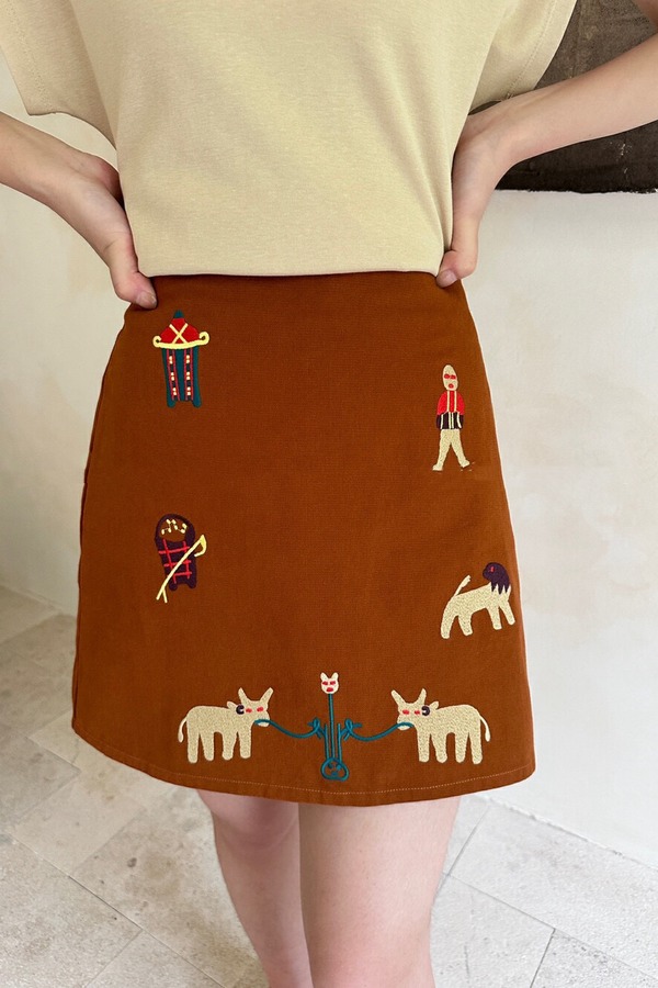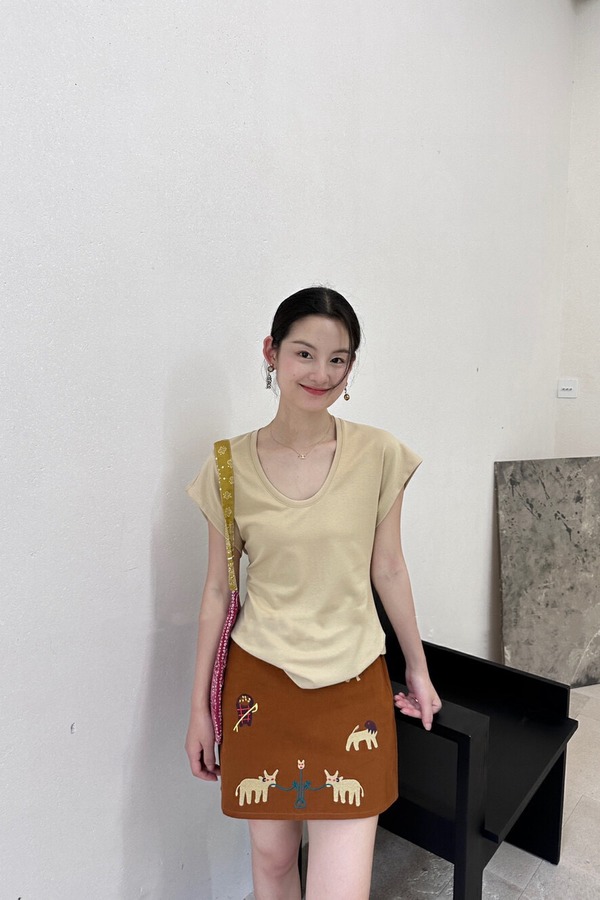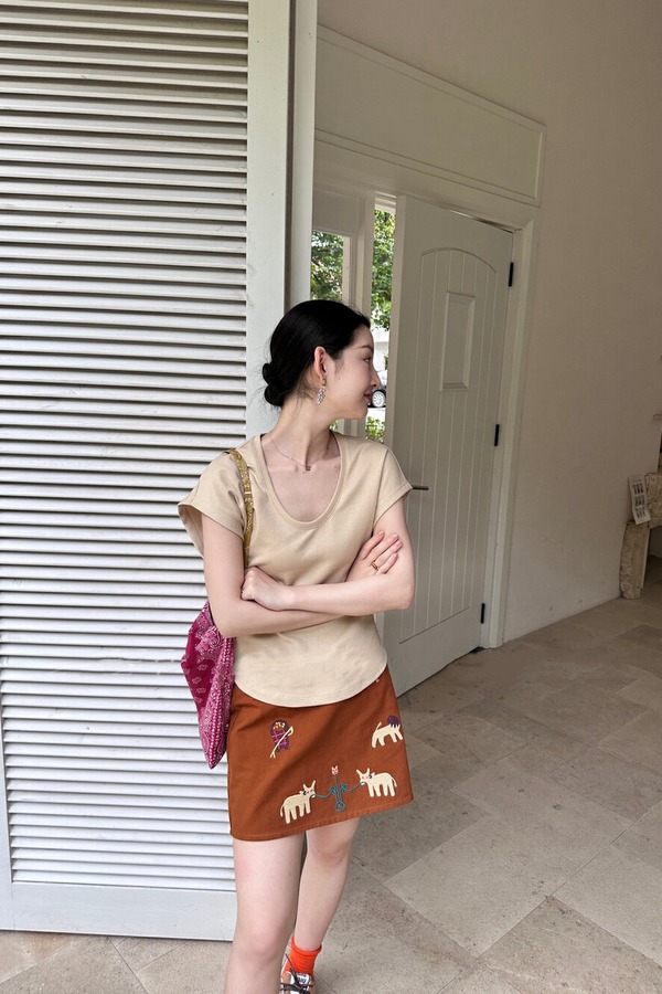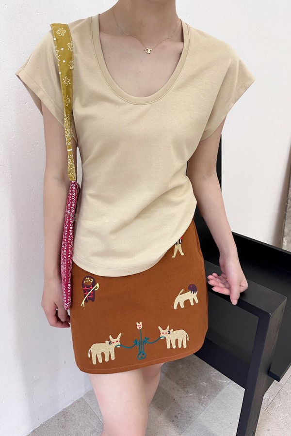 SUMMER & SAGE 纯色u领上衣+风格童趣绣花半身裙 20435