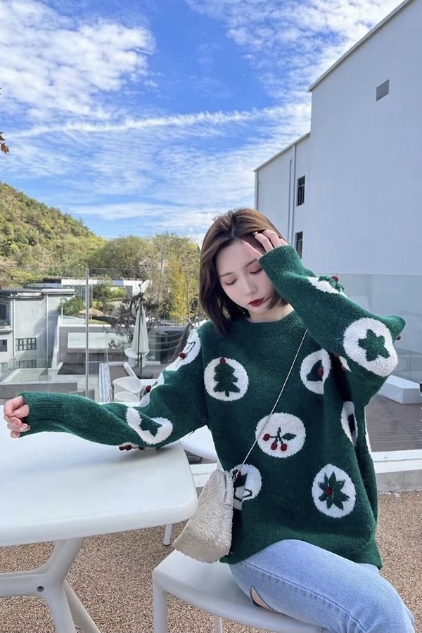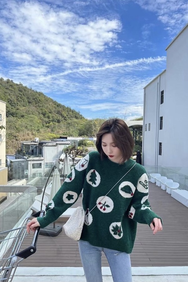 Stay2Weeks 绿色圣诞主题针织上衣 15273
