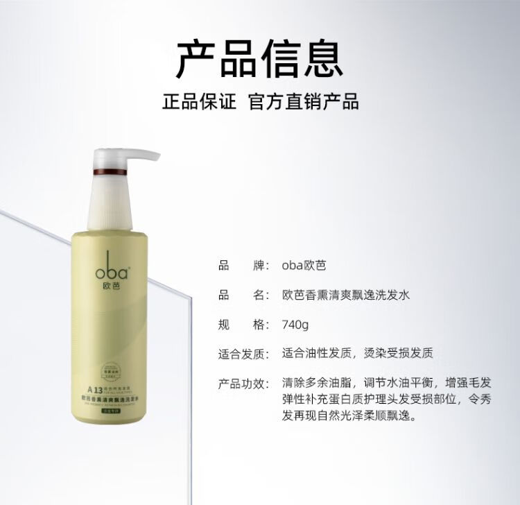 【乐】oba欧芭A13香薰清爽飘逸控油洗发水深层清洁柔顺去油洗发露740ml