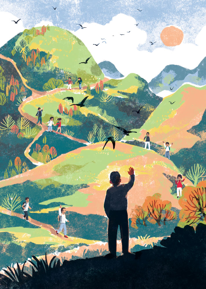 《逐光的孩子》以一名大学生支教志愿者苏老师的视角,讲述了他在鄂西山区蓝溪小学支教的经历,是一部聚焦乡村教育和乡村生存图景的现实主义儿童文学力作。在这里,苏老师被乡村教师齐老师几十年如一日无私奉献的精神所感染,也找寻到了自己的人生意义。他带领孩子们走出大山参加比赛,教孩子们读诗写诗,为他们种下梦想的种子。在如梦如幻的诗性表达中,窥见了大山深处的孩子那斑驳而炽热的童心,感受他们向阳而生、逆风飞扬的蓬勃力量。