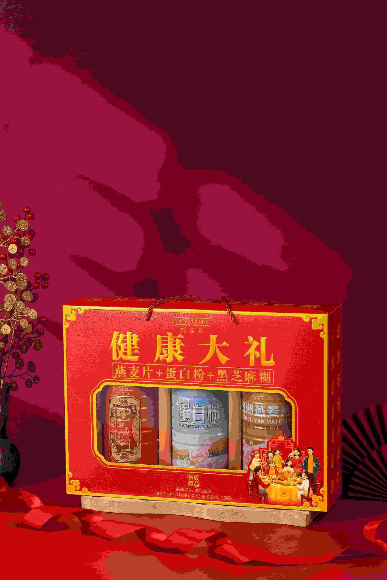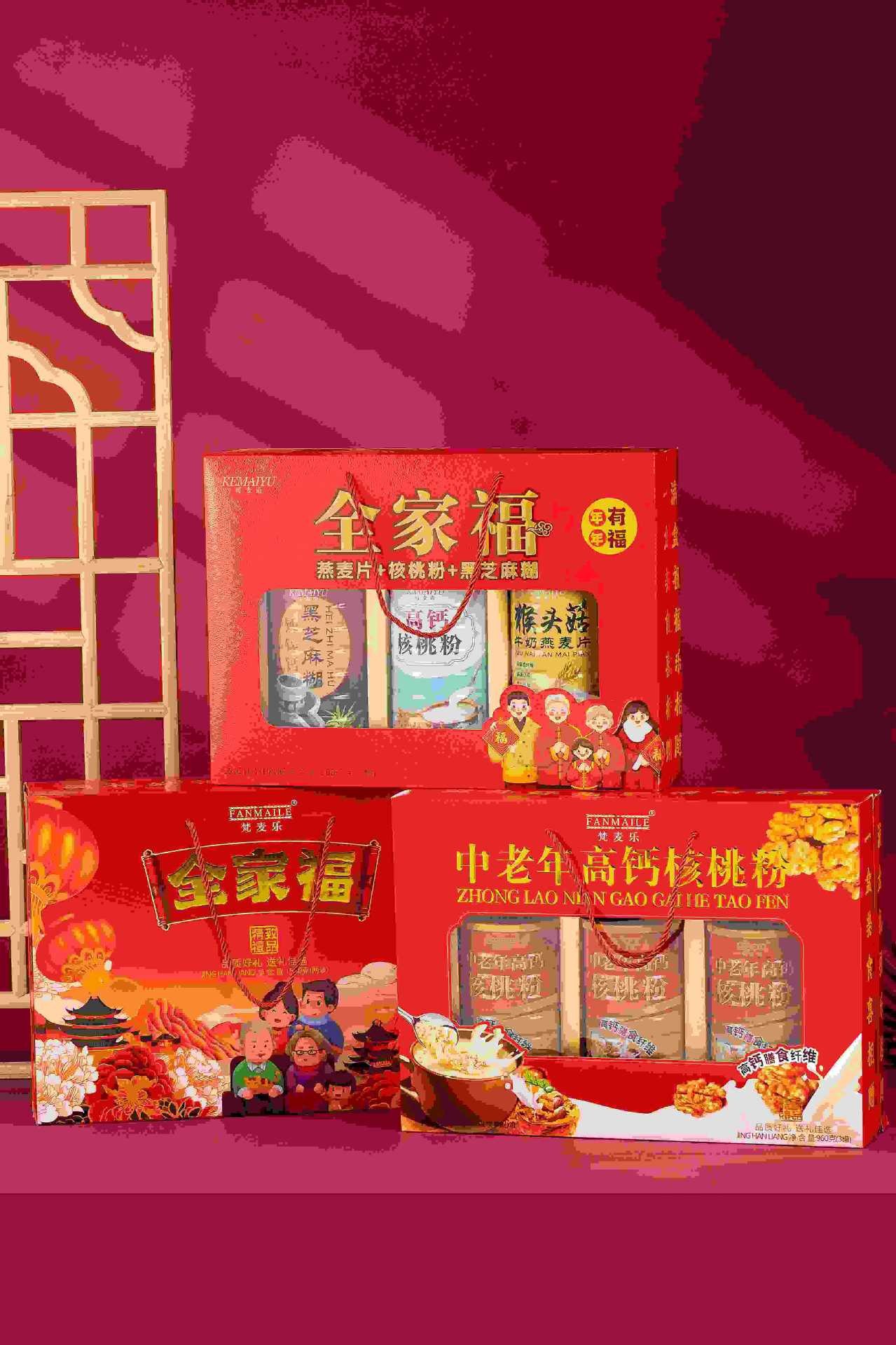 【新年送礼好物❗️精致礼盒包装】春节礼盒全家福牛奶燕麦片+核桃粉+黑芝麻糊礼盒装年货送礼三罐装。jc