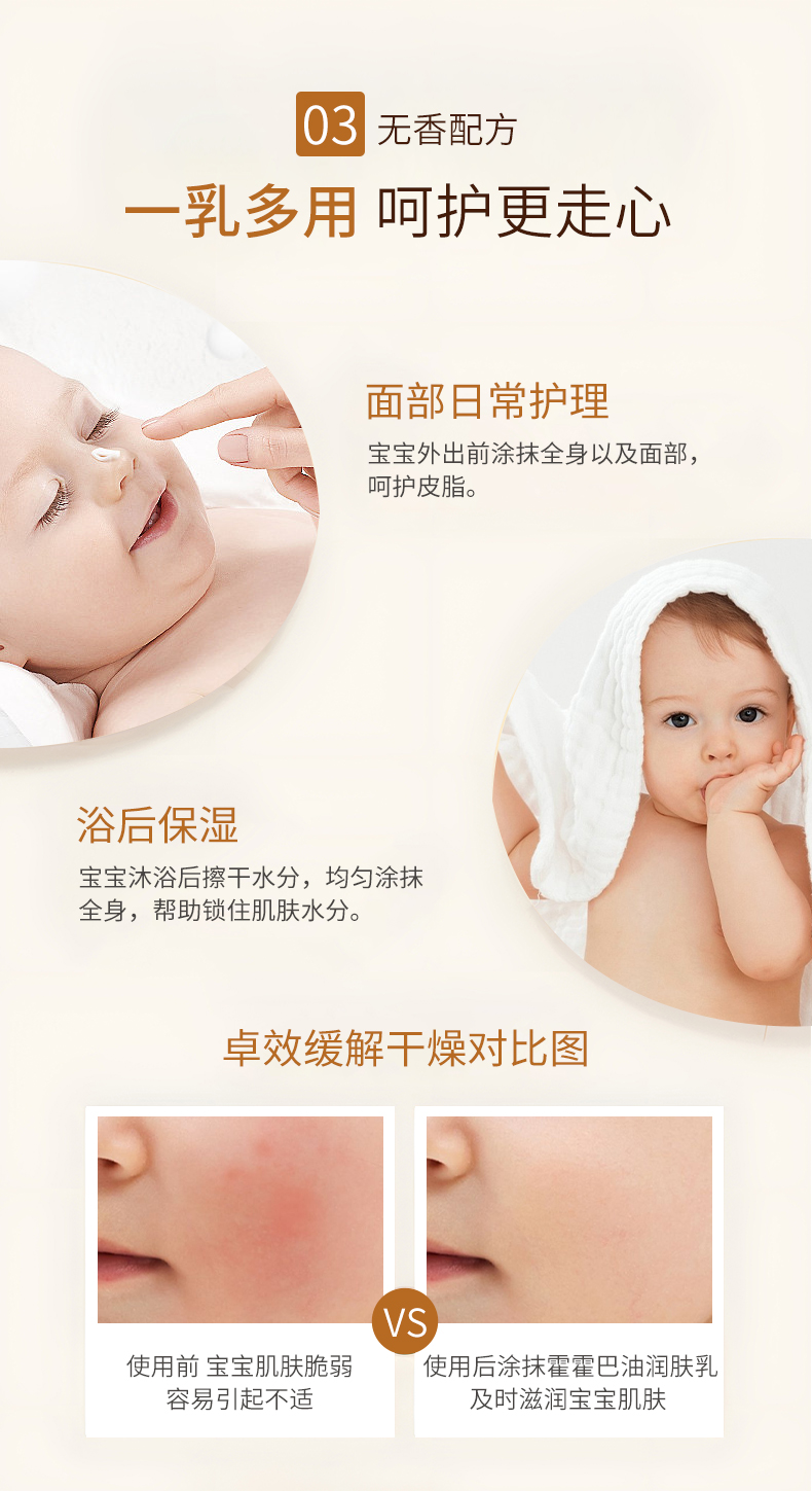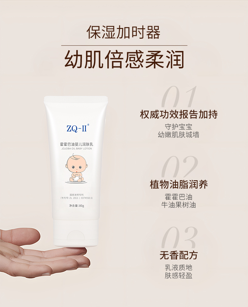 ZQ-II再启霍霍巴油婴儿润肤乳80g 滋润保湿 宝宝润肤露身体乳 大人可用