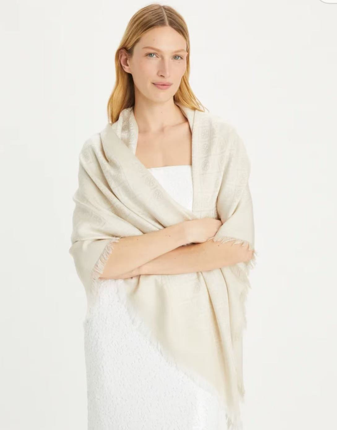 TORY BURCH 围巾女 160570-104 象牙白色.