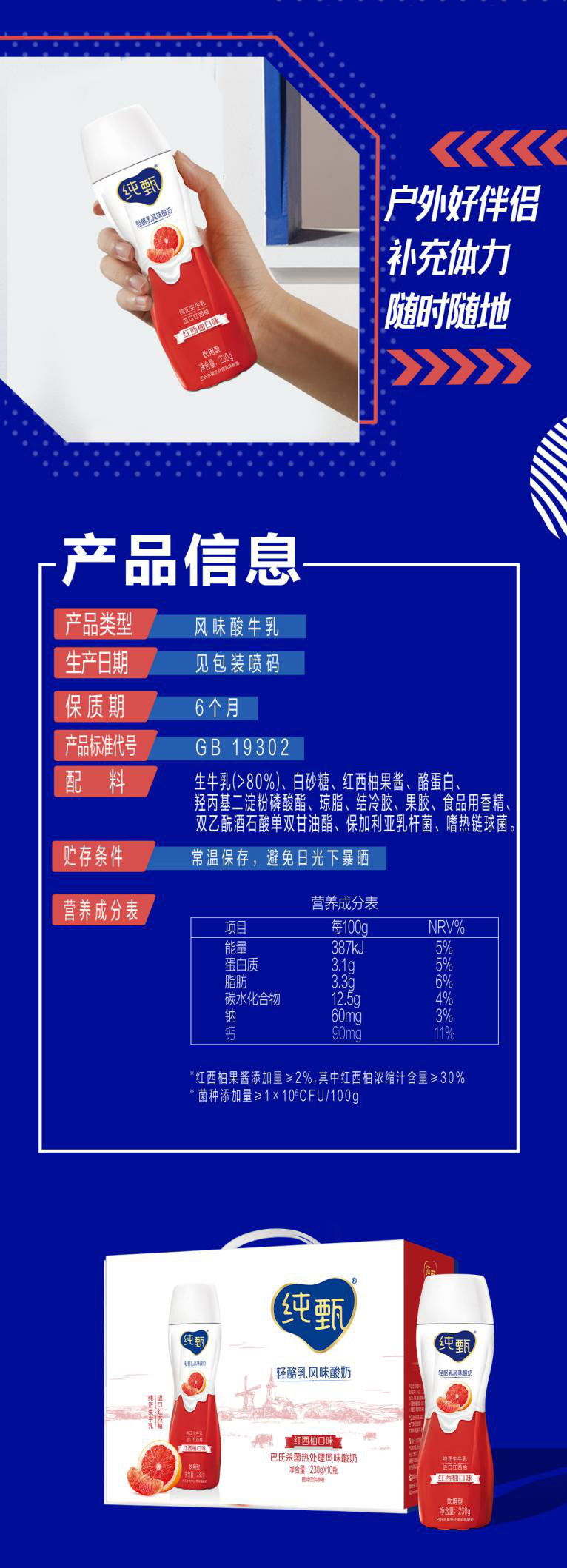 蒙牛纯甄红西柚小蛮腰酸奶230g*10瓶