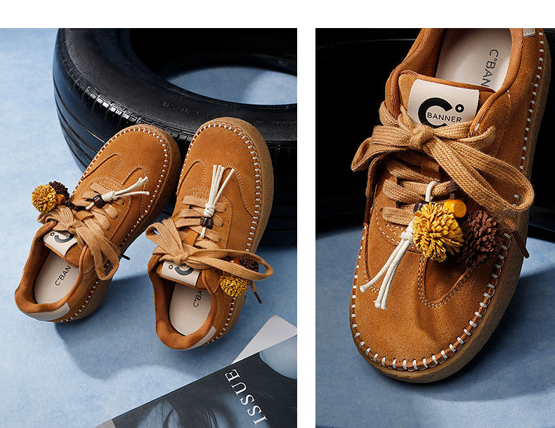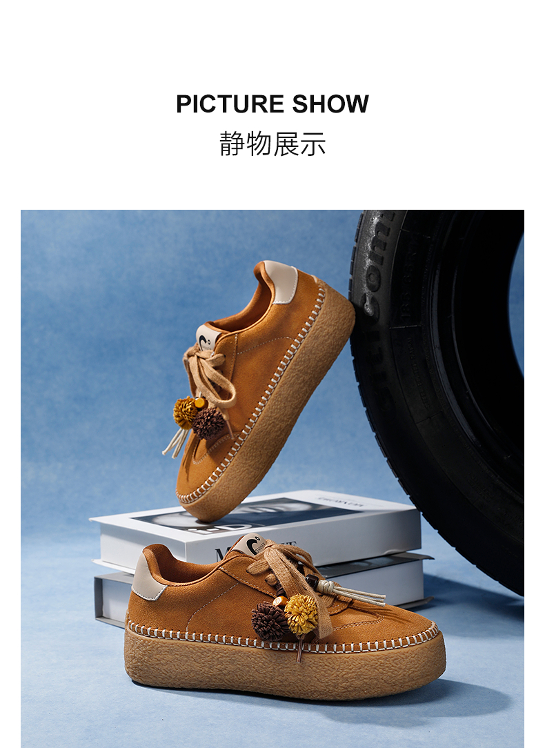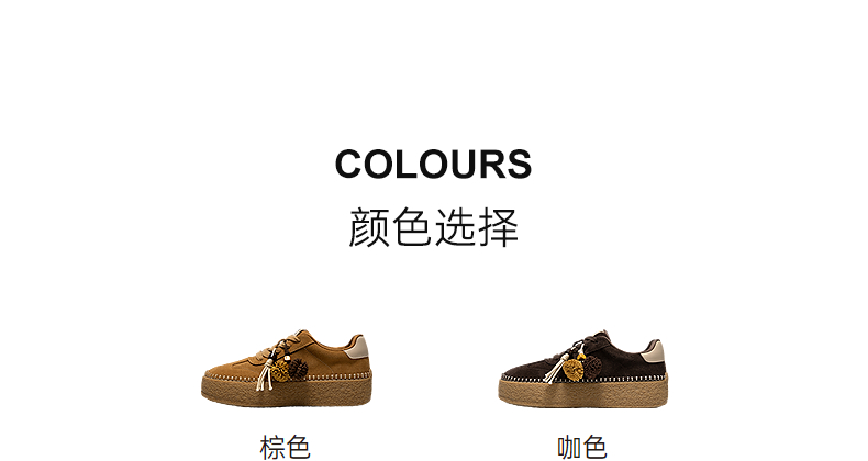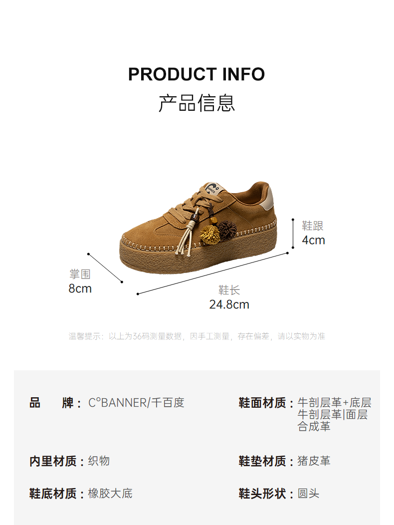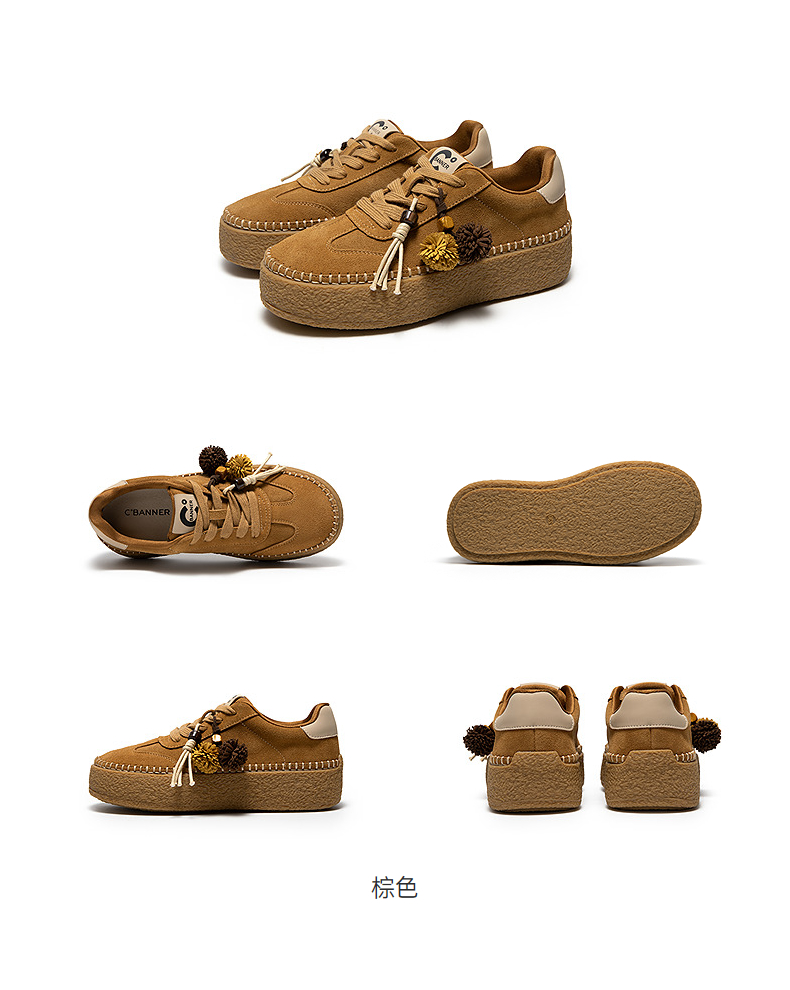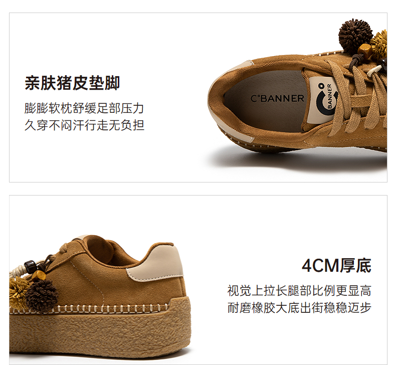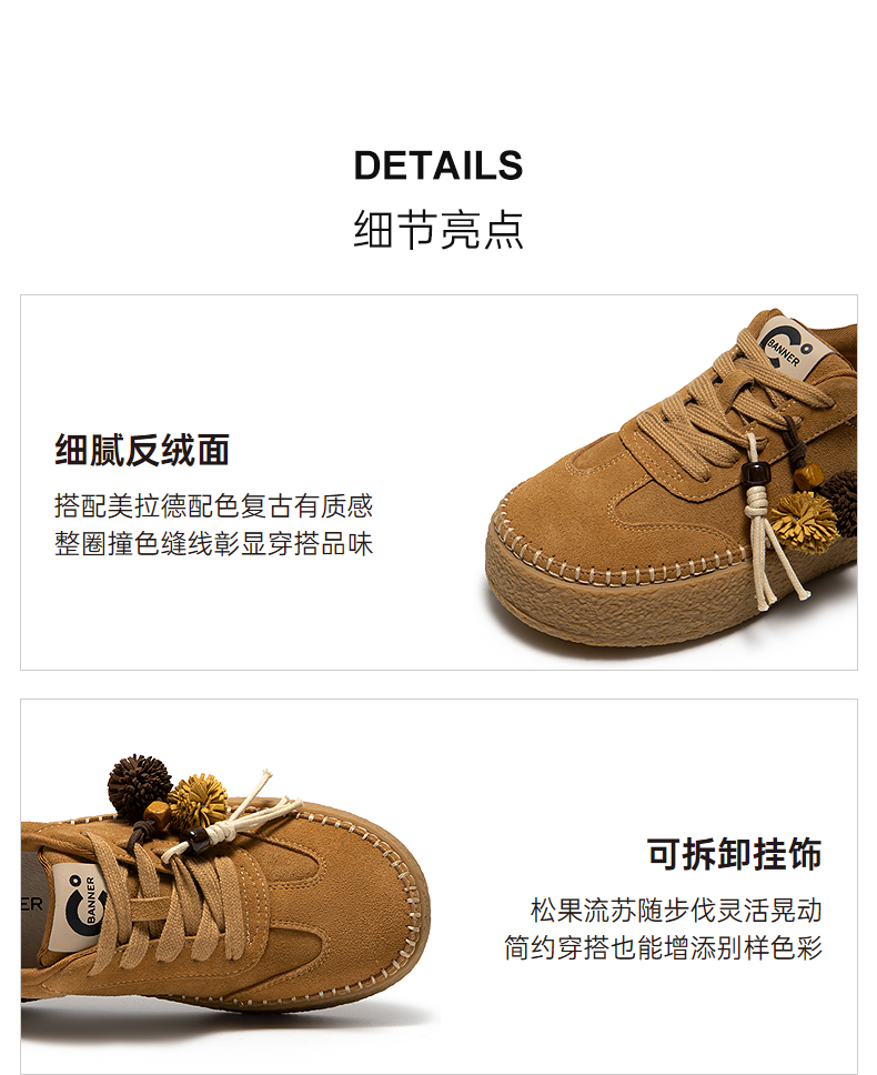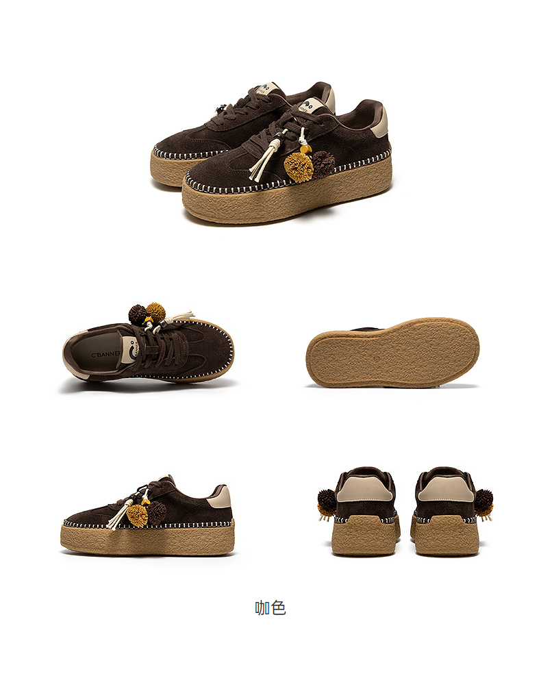 千百度厚底松果休闲板鞋女2026春季新款增高复古德训鞋舒适运动鞋A26130001