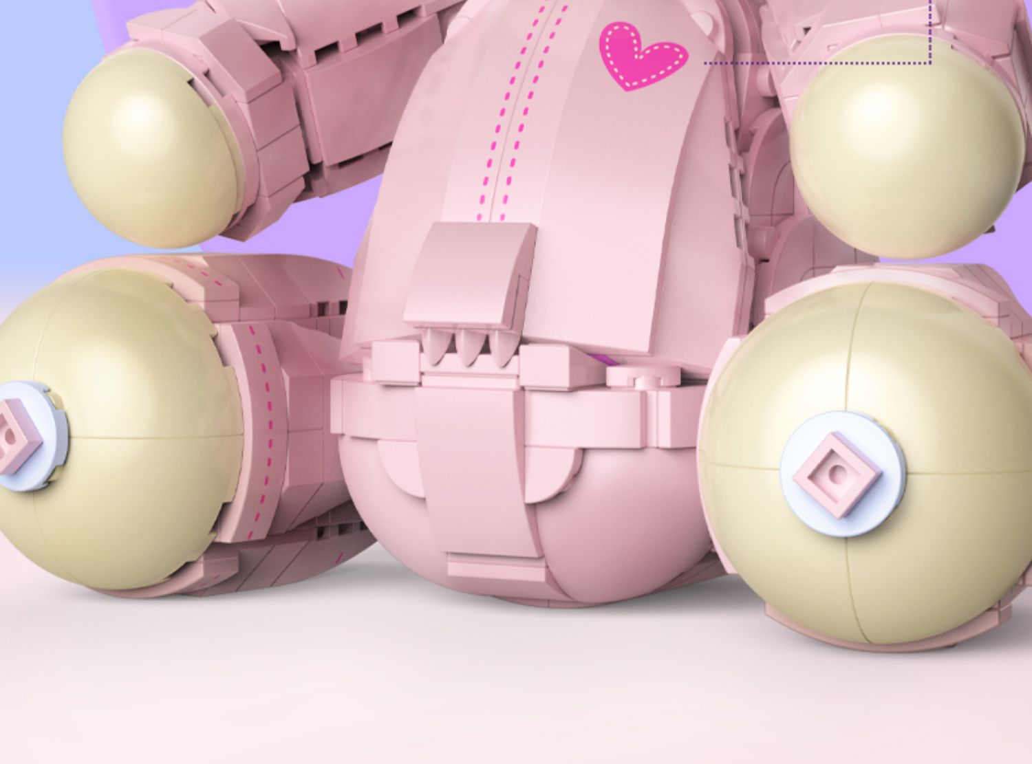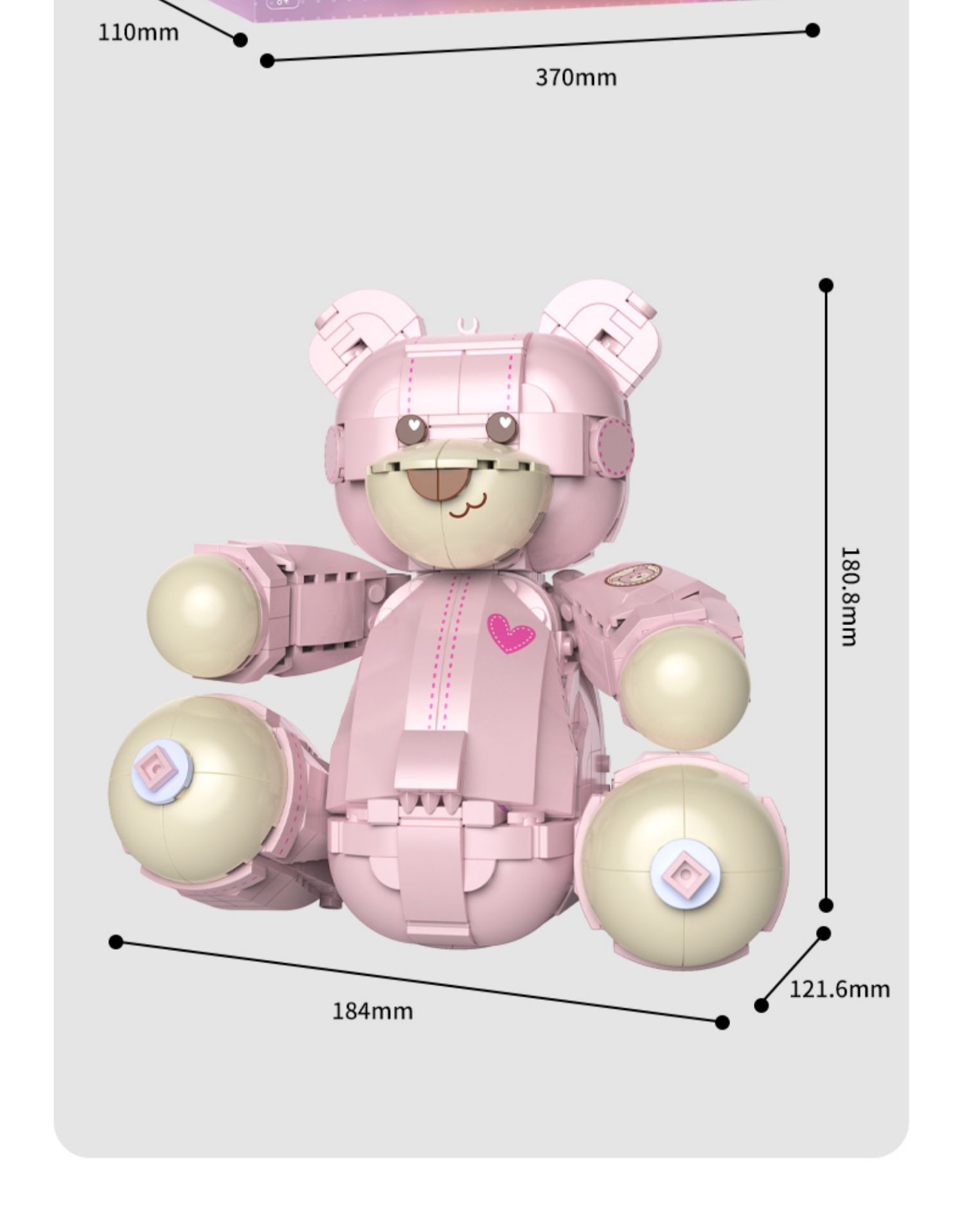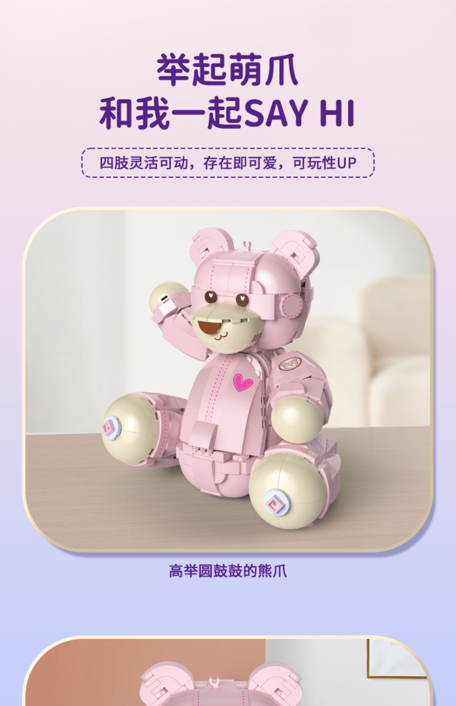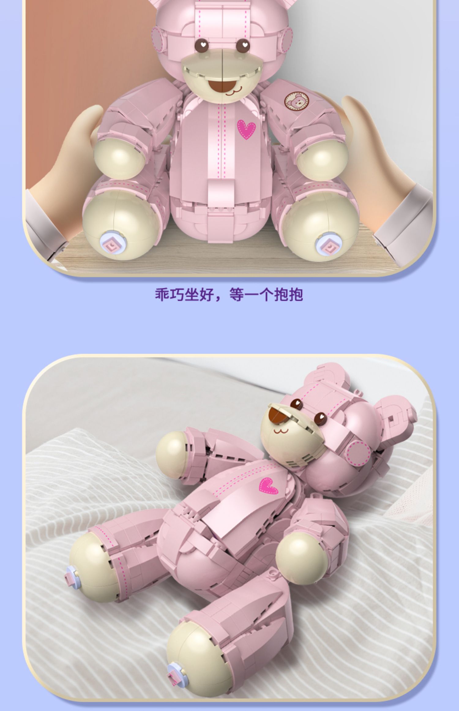 JAKI佳奇积木泰迪小粉熊益智拼装情人节送女生礼物桌面摆件玩具