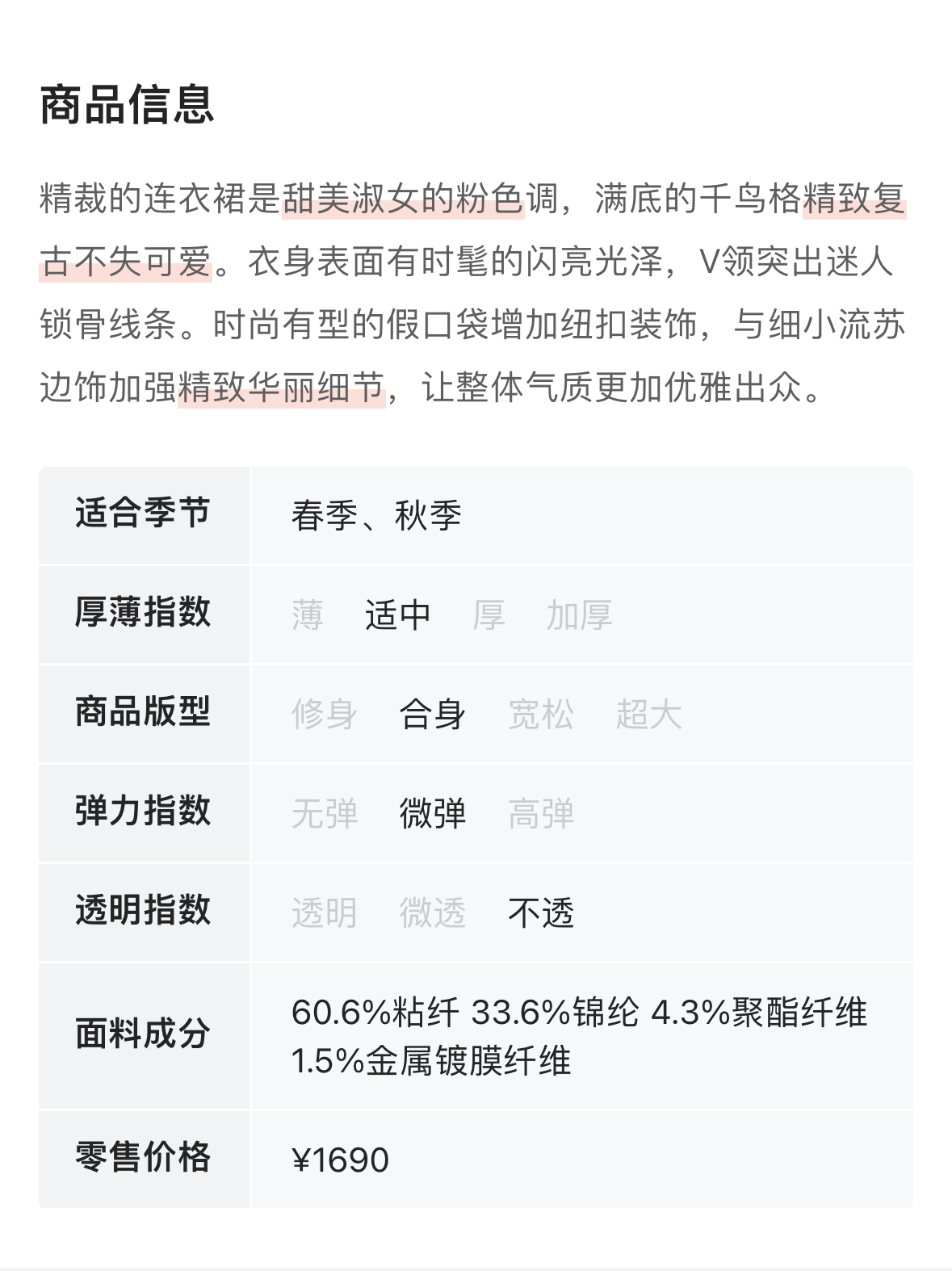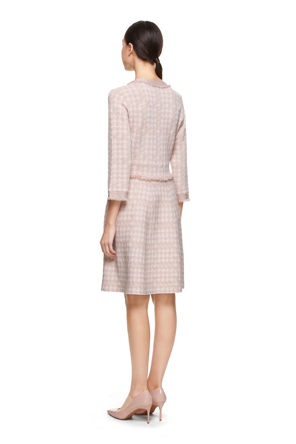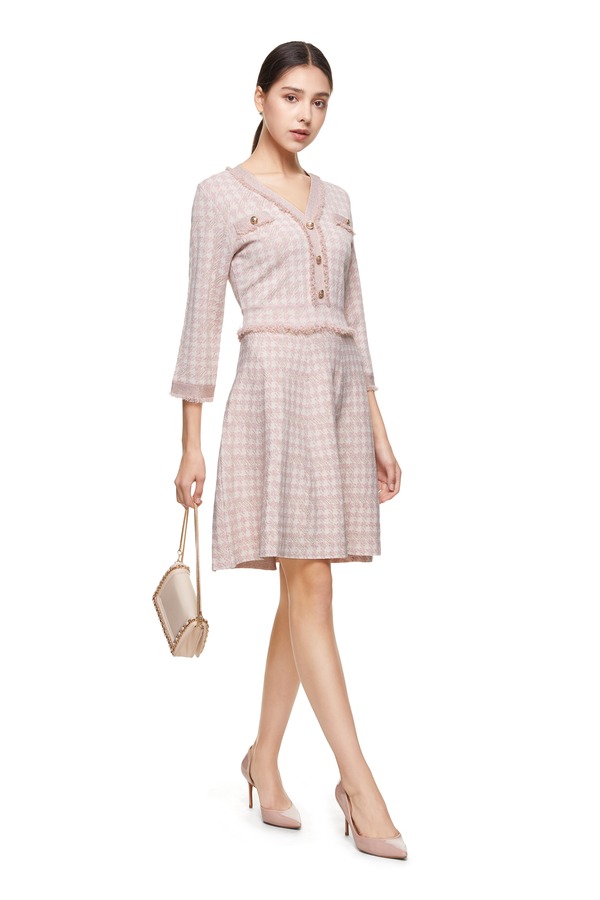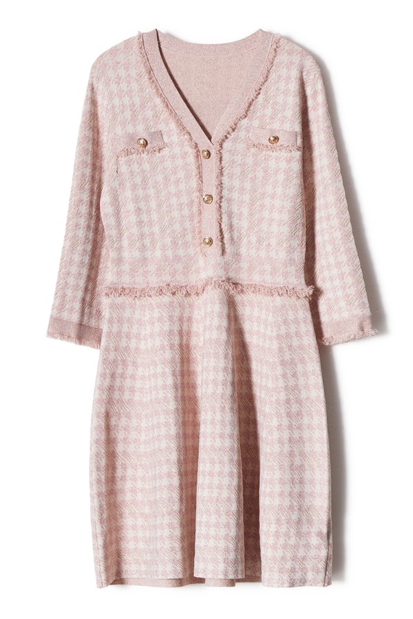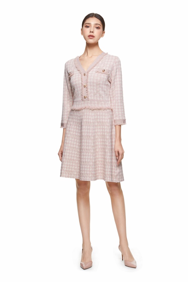 INSUN恩裳 千鸟格流苏边V领连衣裙 8818