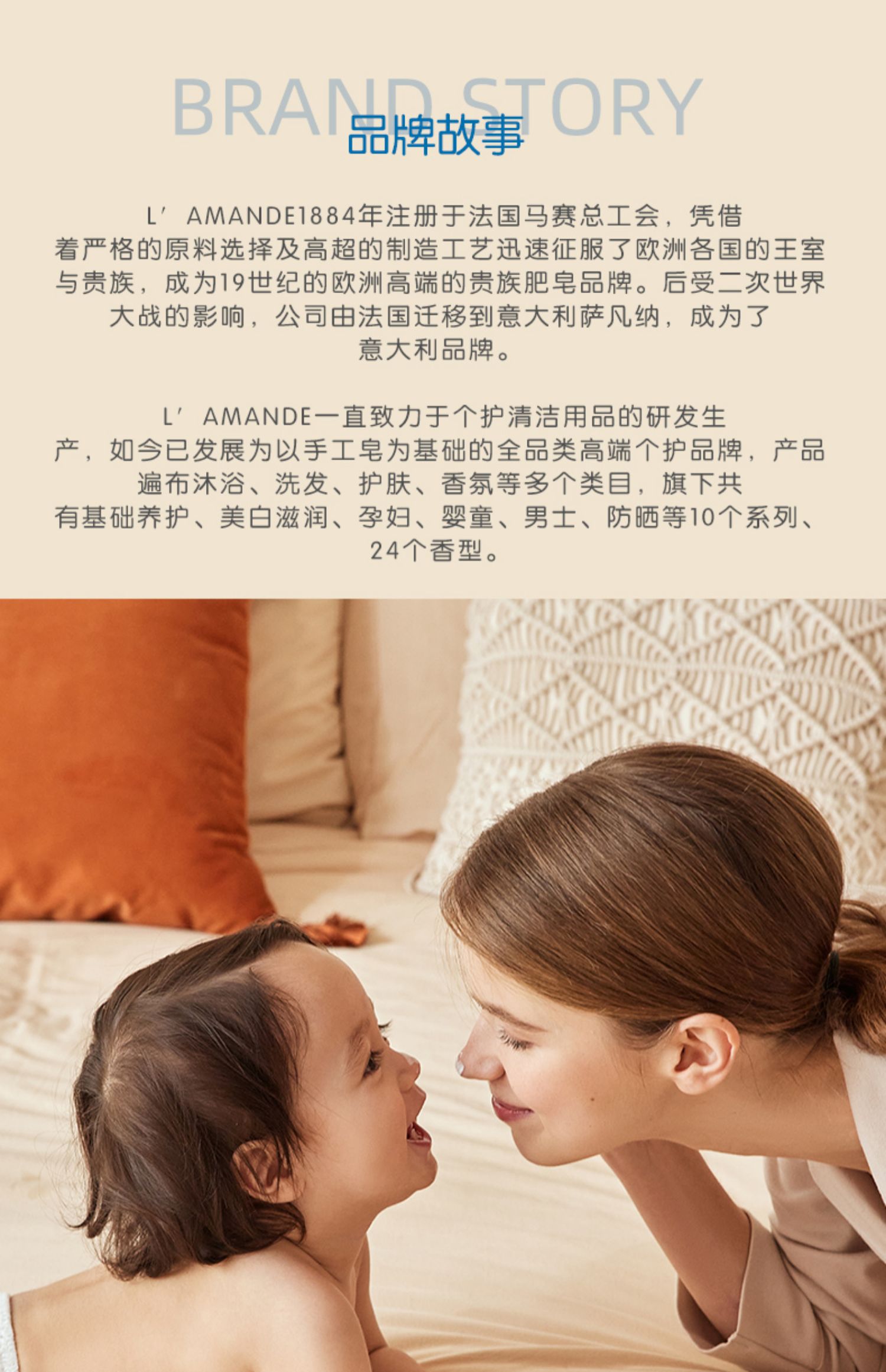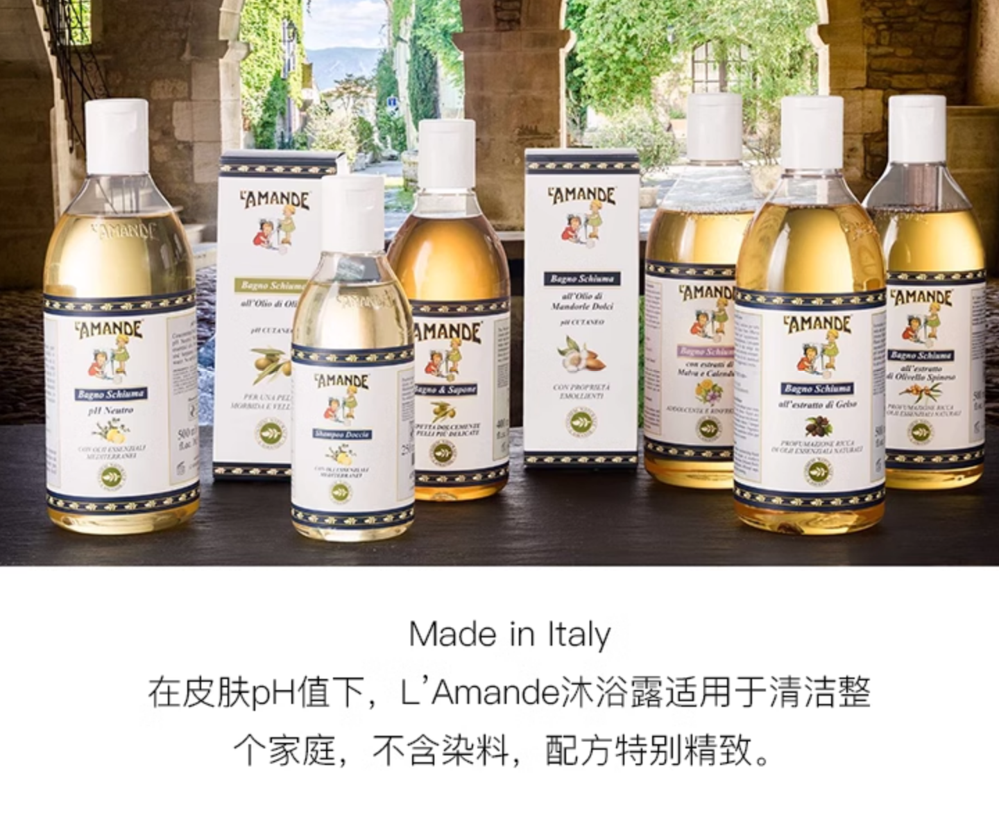L'Amande成立于1884年,源自意大利,它是世界上蕞古老的品牌之一 !拥有悠久的历史!在欧洲拥有广泛的群众基础和不俗的口碑,各大商超都能找到它!