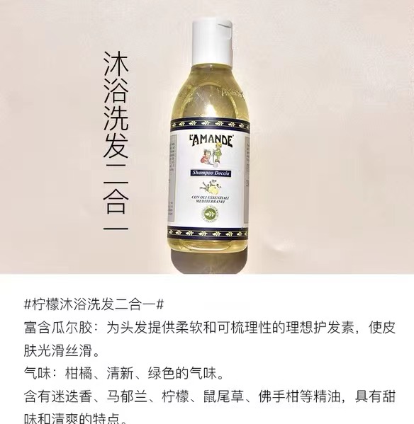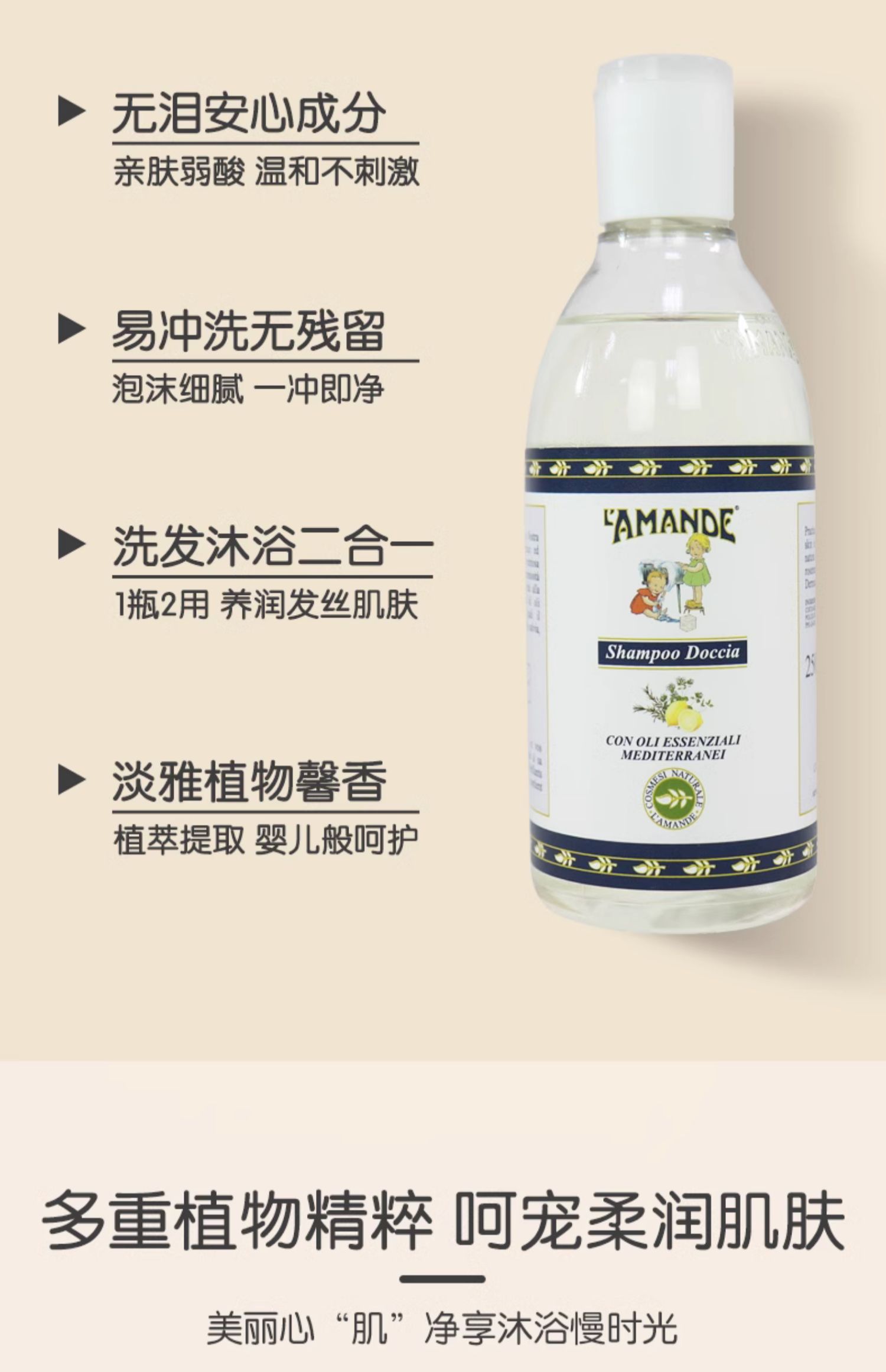 【品名】AMANDE百年意大利儿童沐浴洗发液250ml