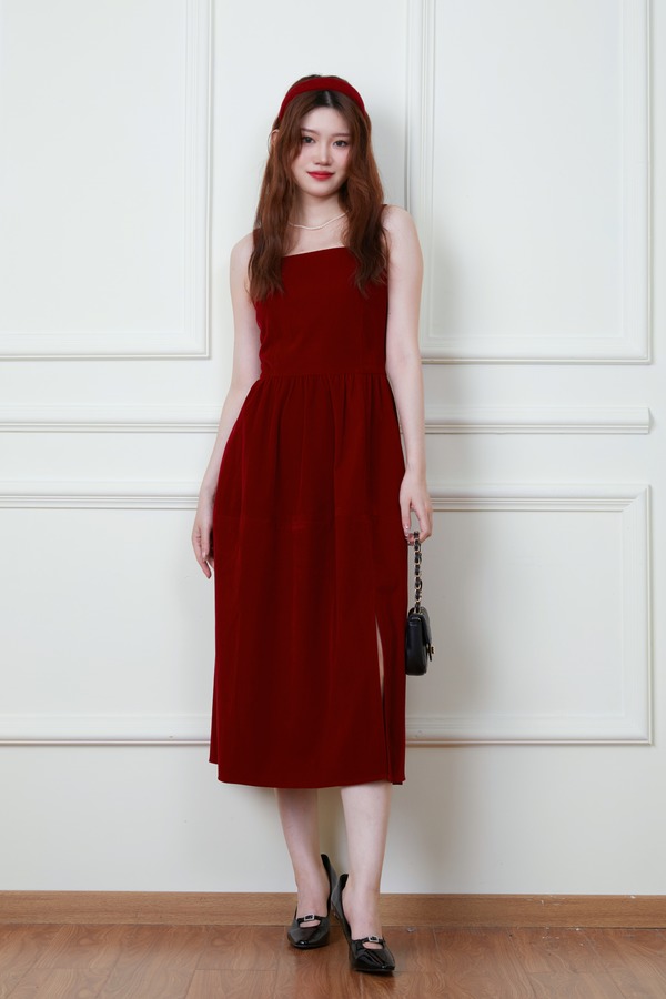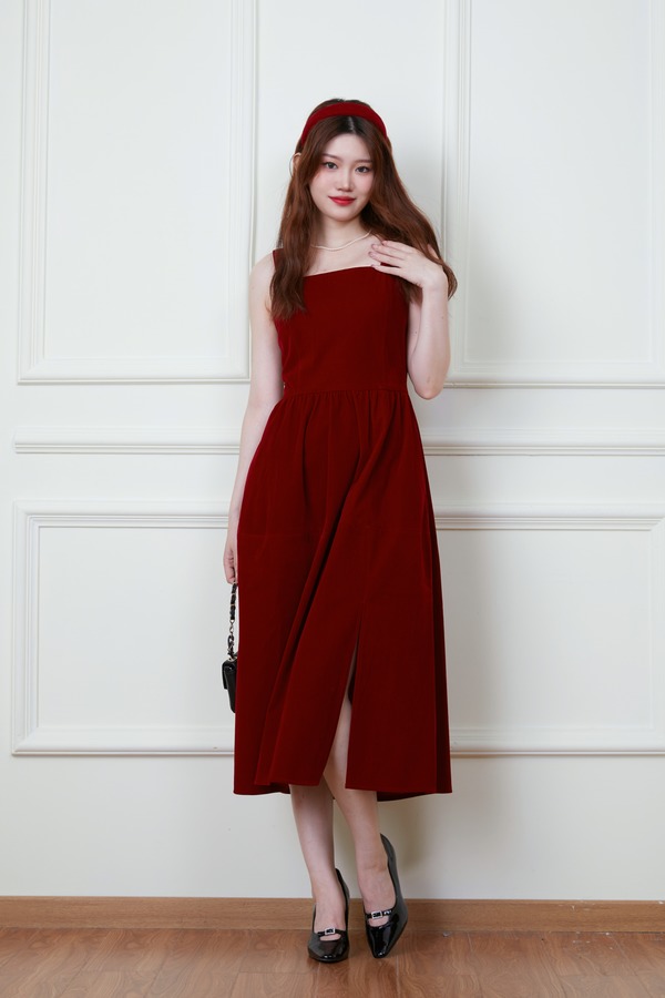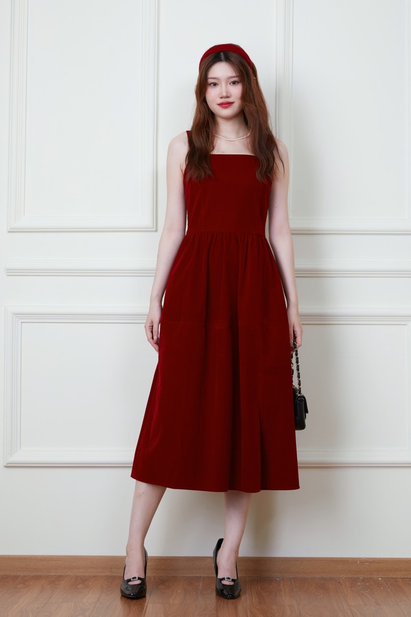 SIA SAYLOR 高级丝绒质地红色背心连衣裙 19580