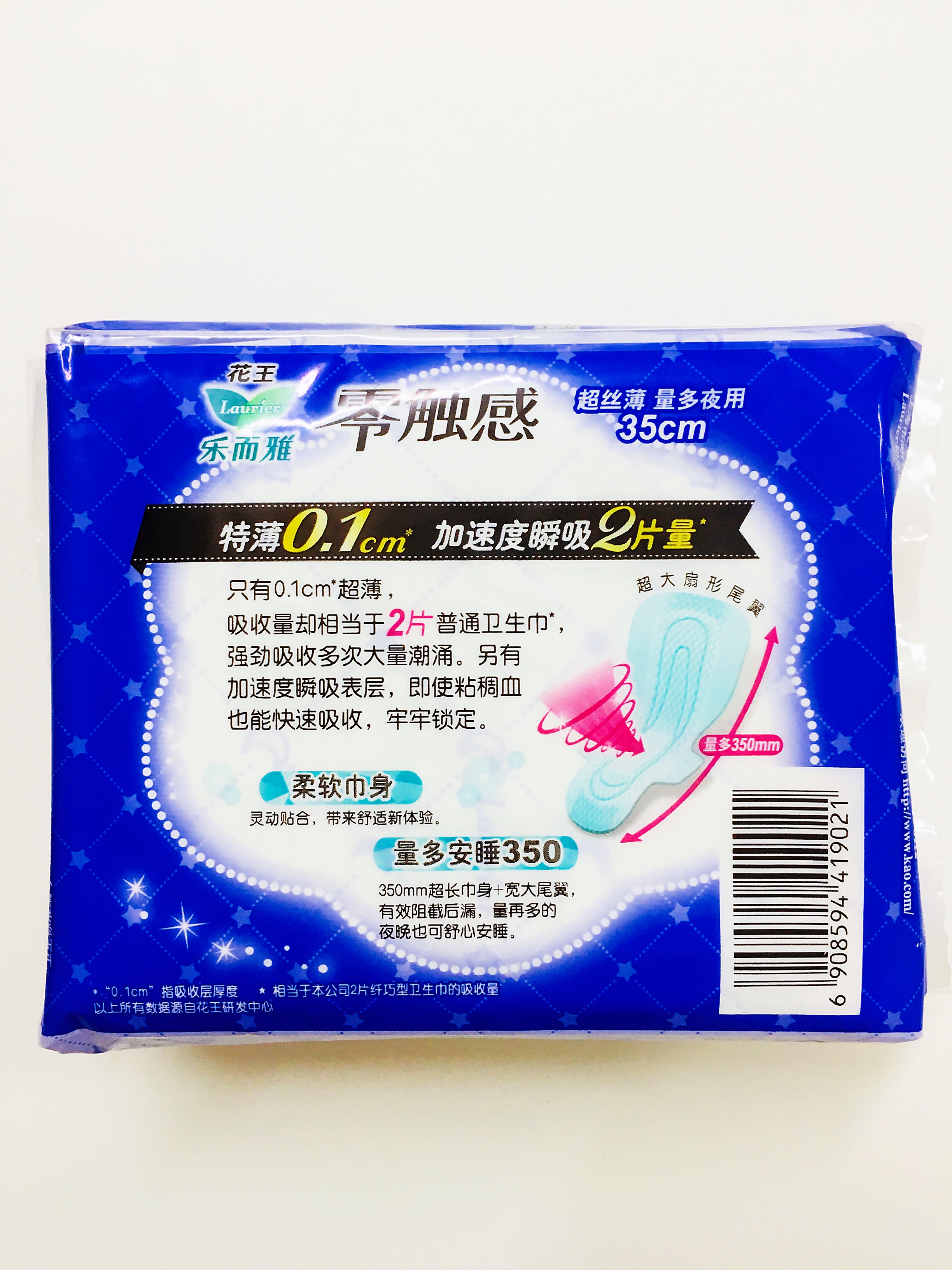 花王乐而雅零触感超丝薄柔爽棉网量多夜用护翼型卫生巾35cm8片