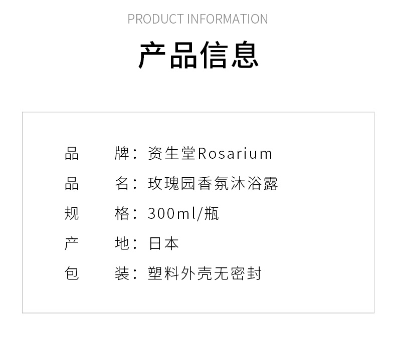 SHISEIDO资生堂 rosarium 玫瑰园沐浴露 保湿滋润补水沐浴乳香体持久留香 300ml 日本