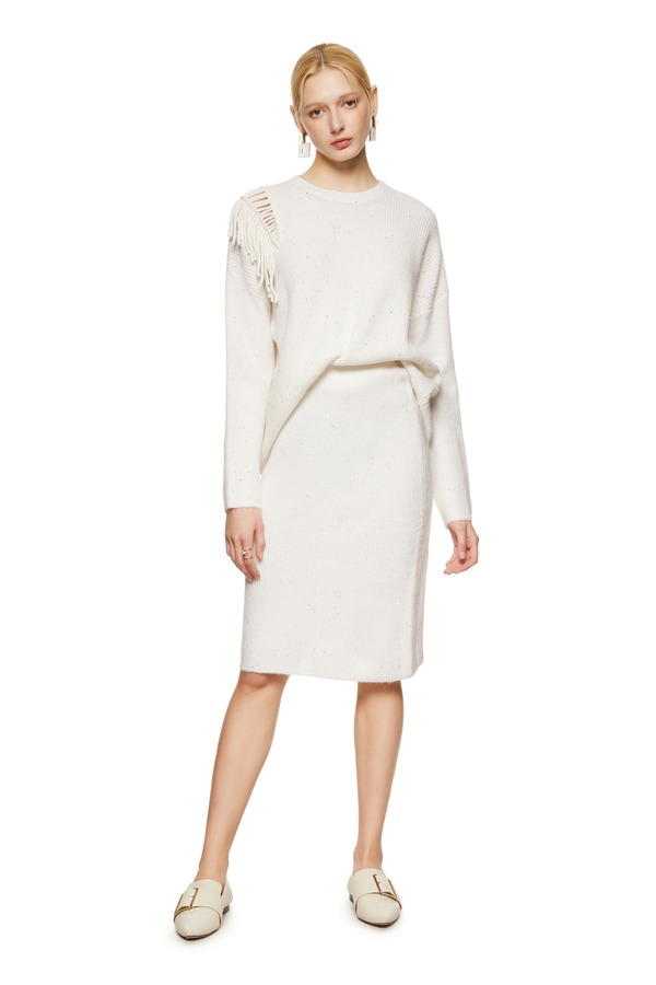 J.A 镂空流苏亮片针织套装 8209