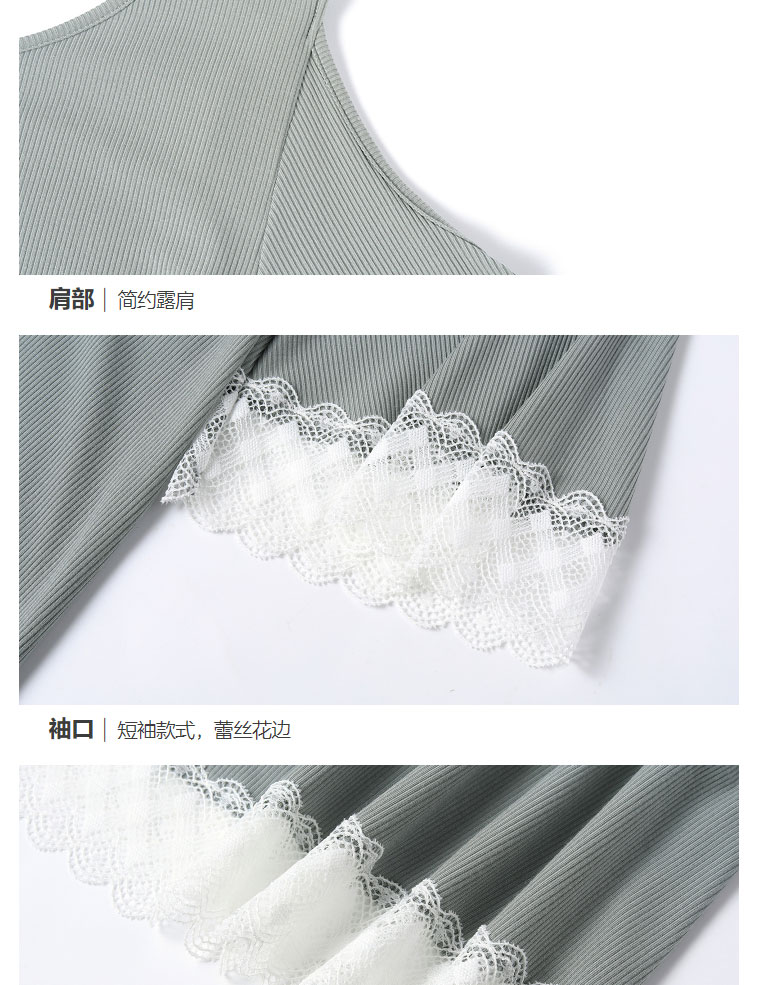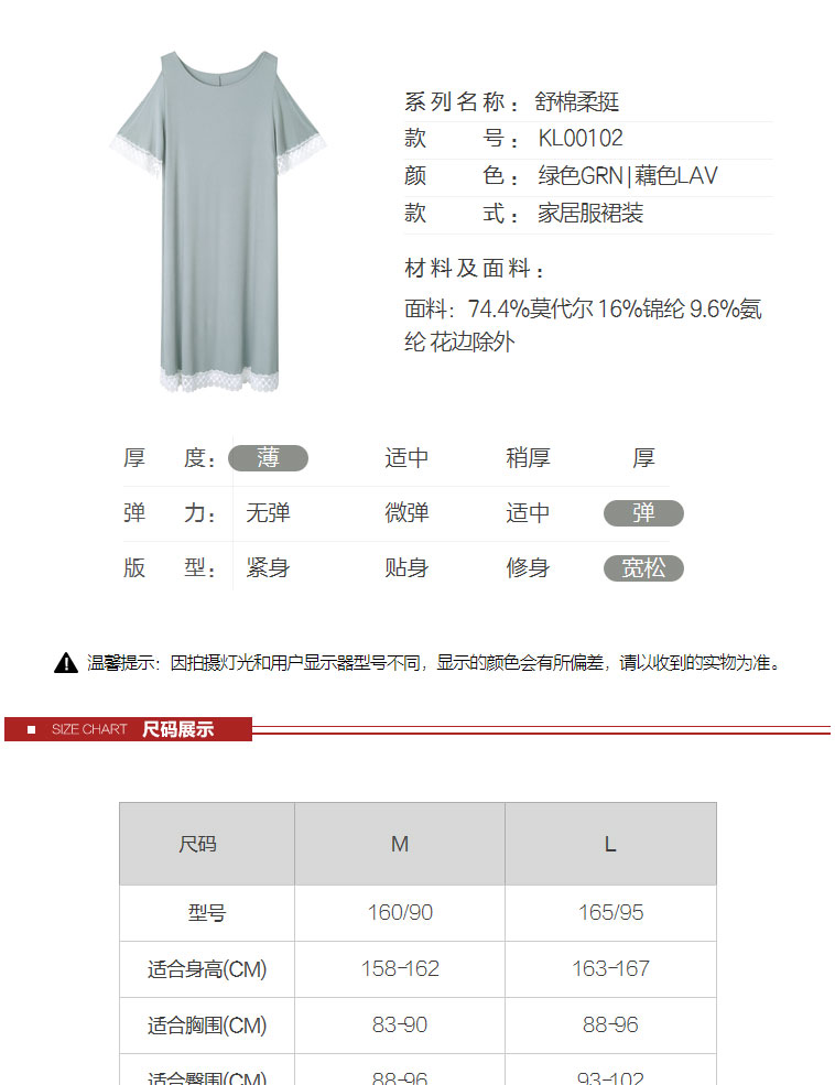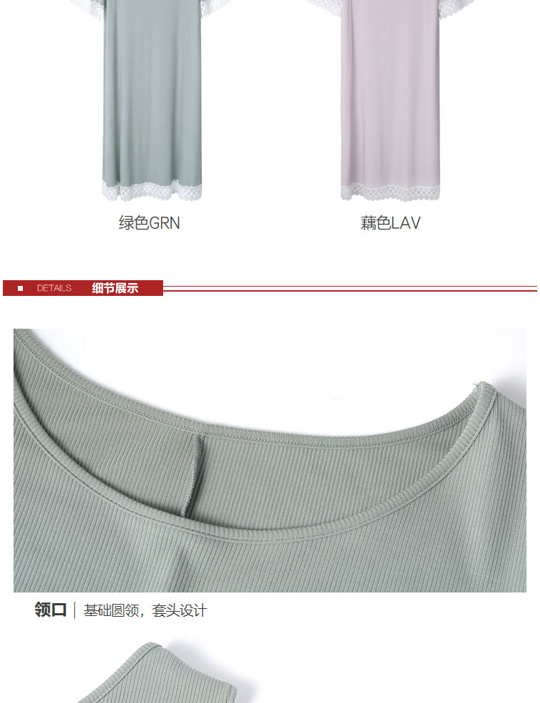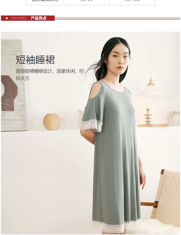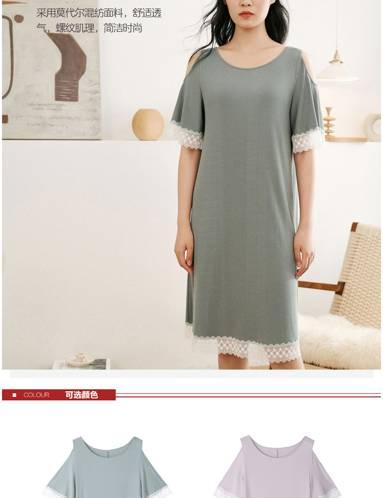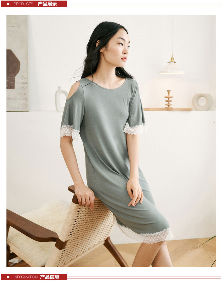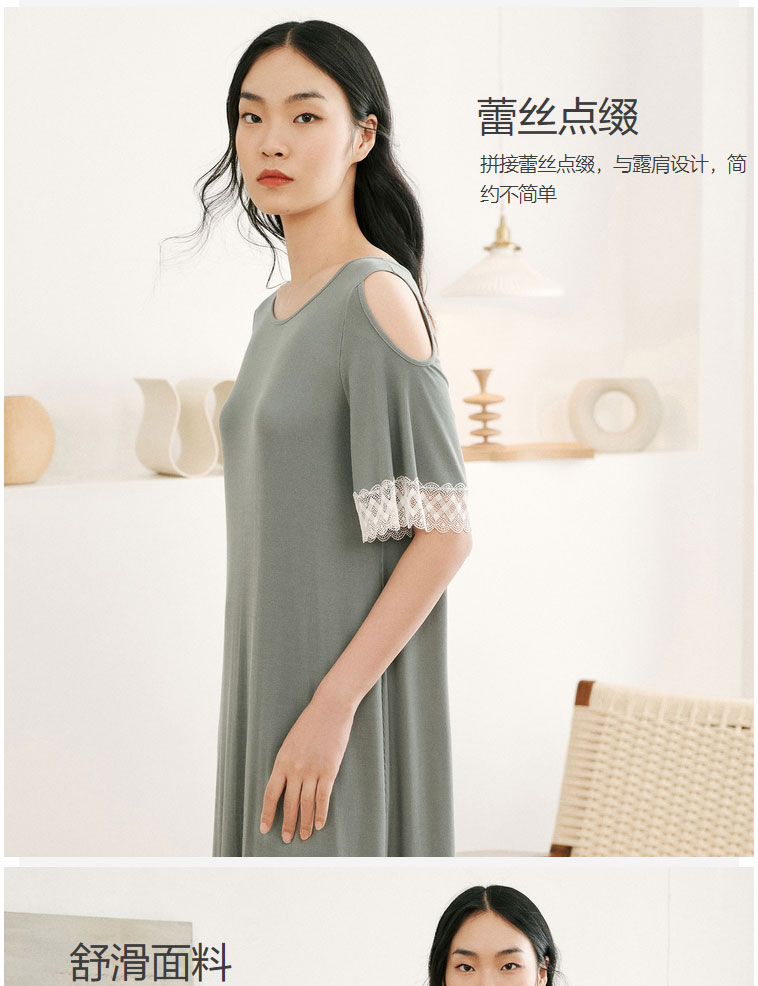 安莉芳E-BRA莫代尔圆领蕾丝边睡裙女士长款露肩家居裙KL00102