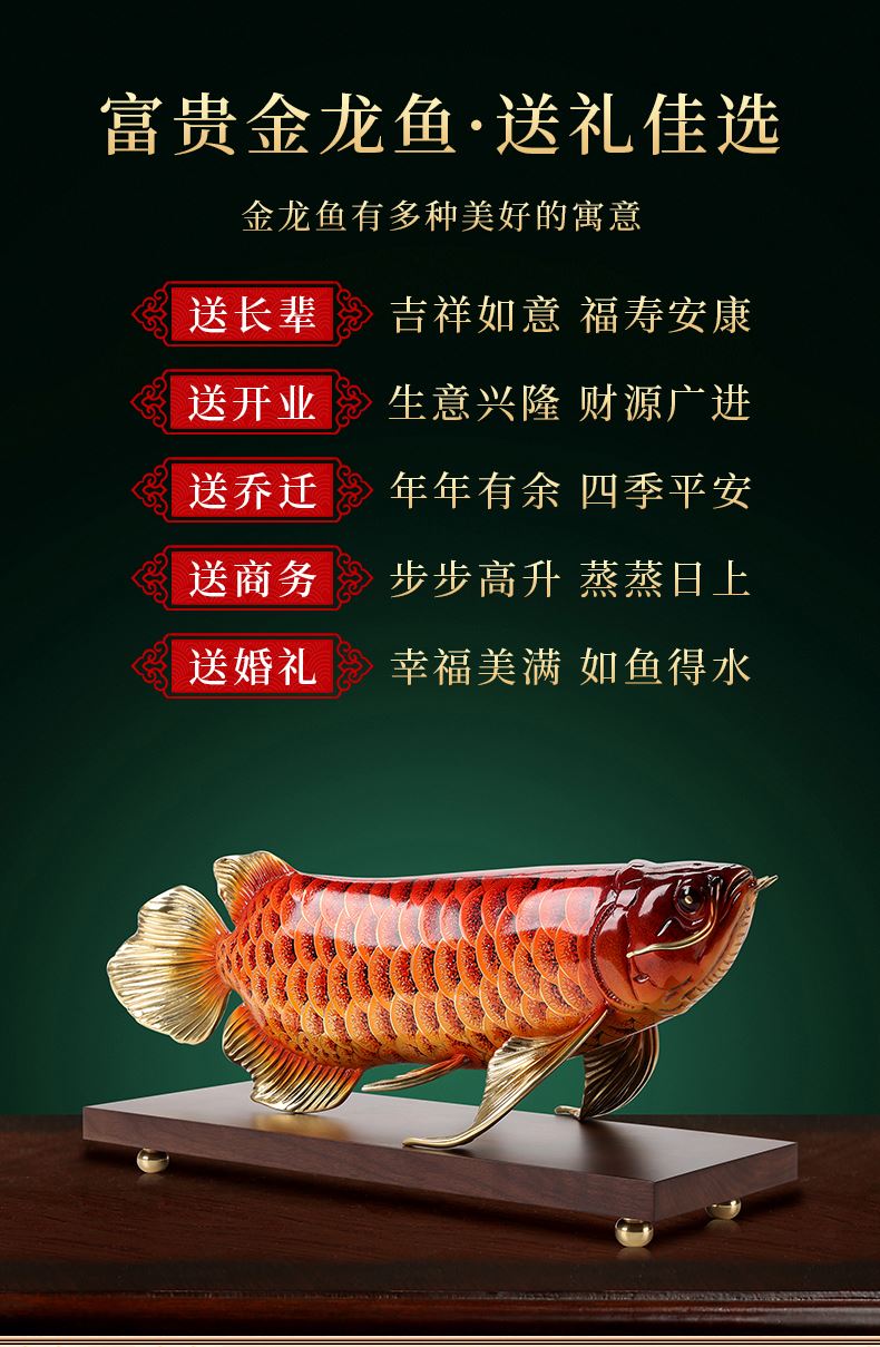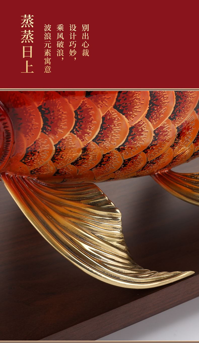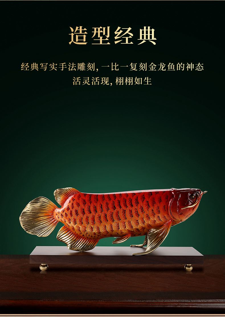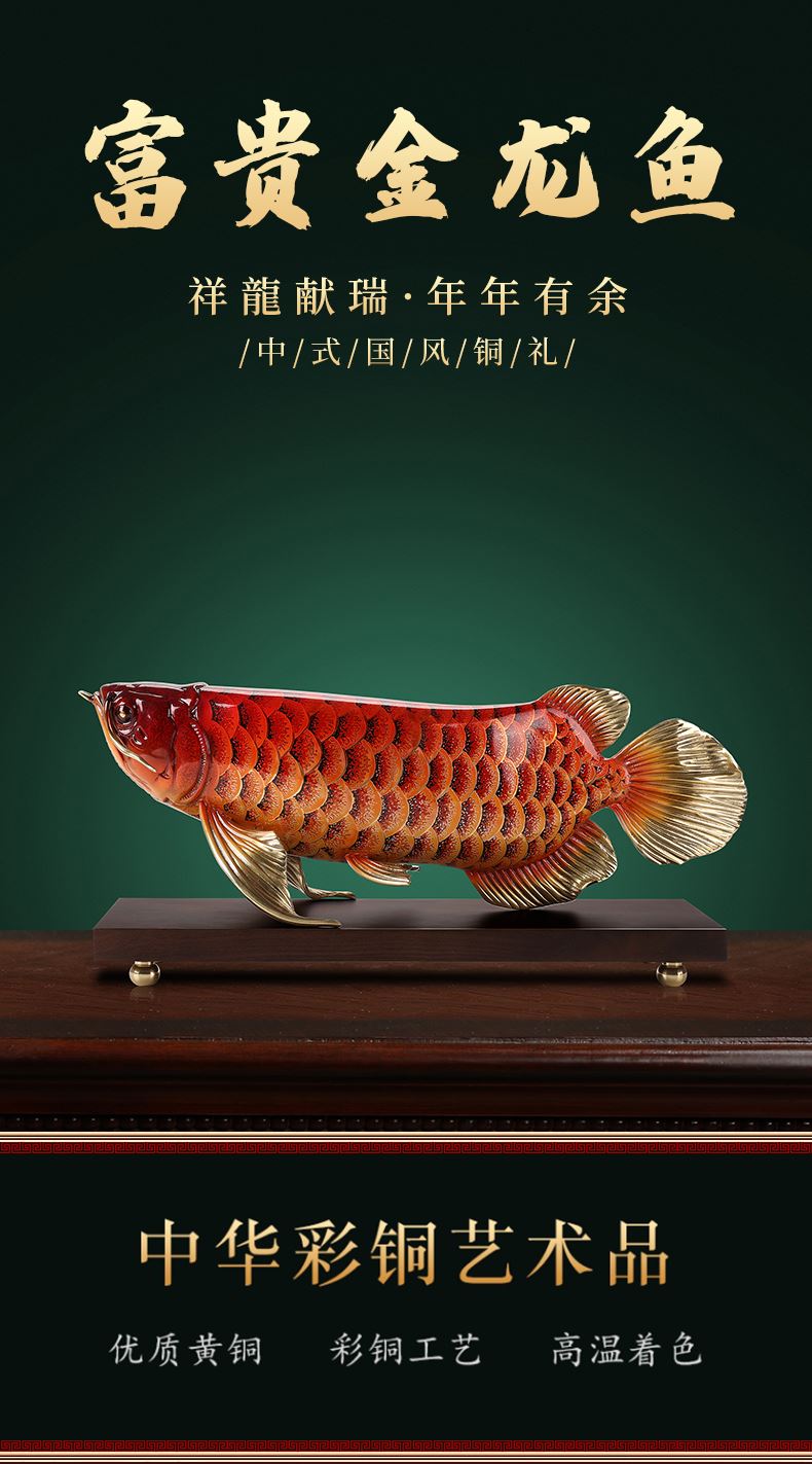 大漆工艺全铜金龙鱼摆件客厅送老板办公室桌面装饰品乔迁开业礼品大漆彩铜工艺 富贵金龙鱼摆件(450*150*180)