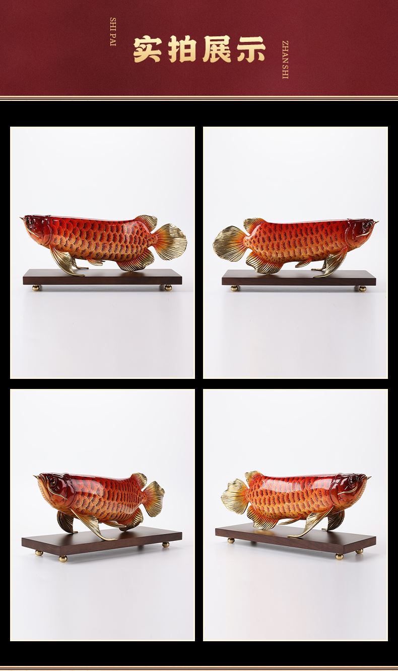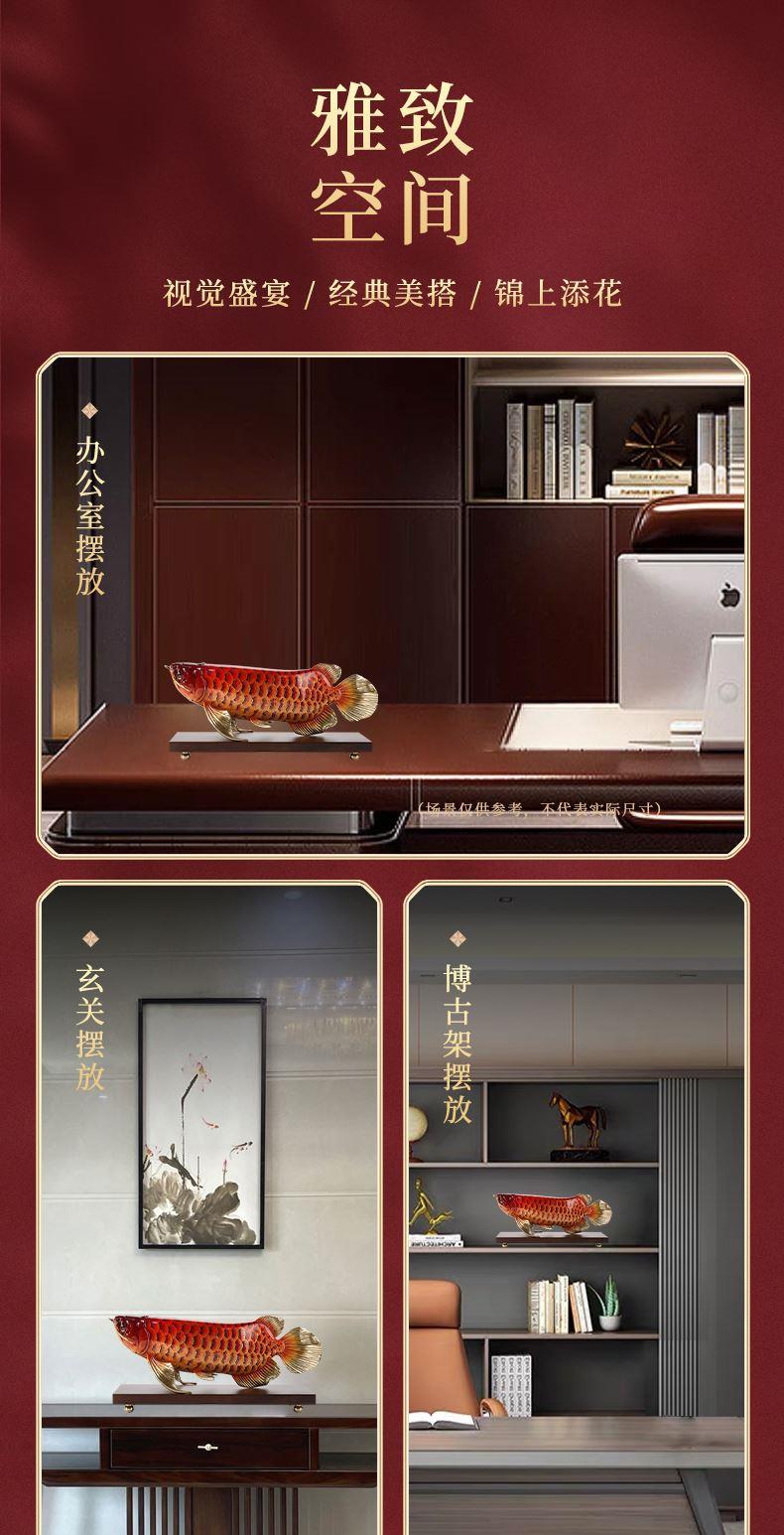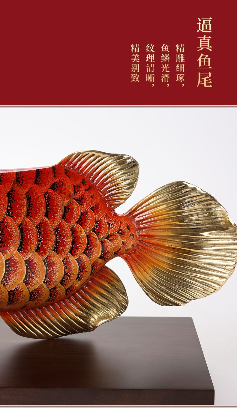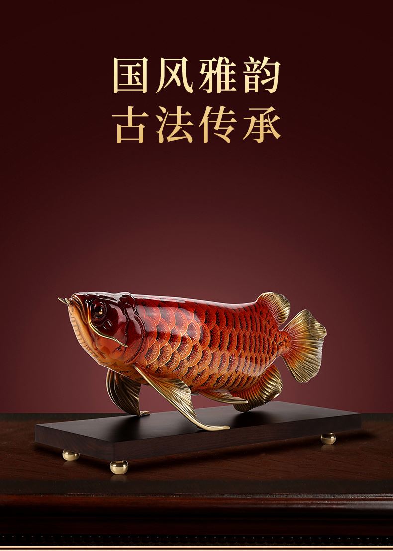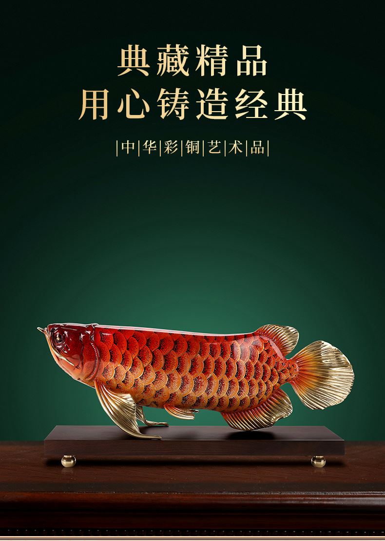大漆工艺全铜金龙鱼摆件客厅送老板办公室桌面装饰品乔迁开业礼品大漆彩铜工艺 富贵金龙鱼摆件(450*150*180)