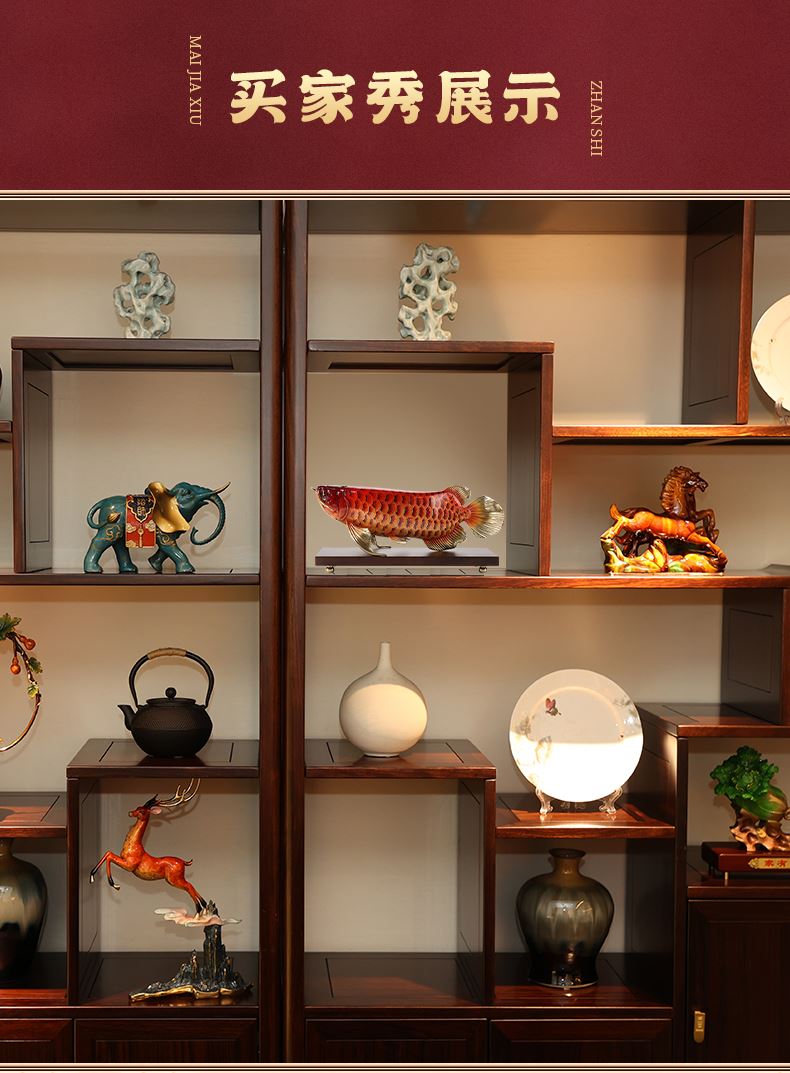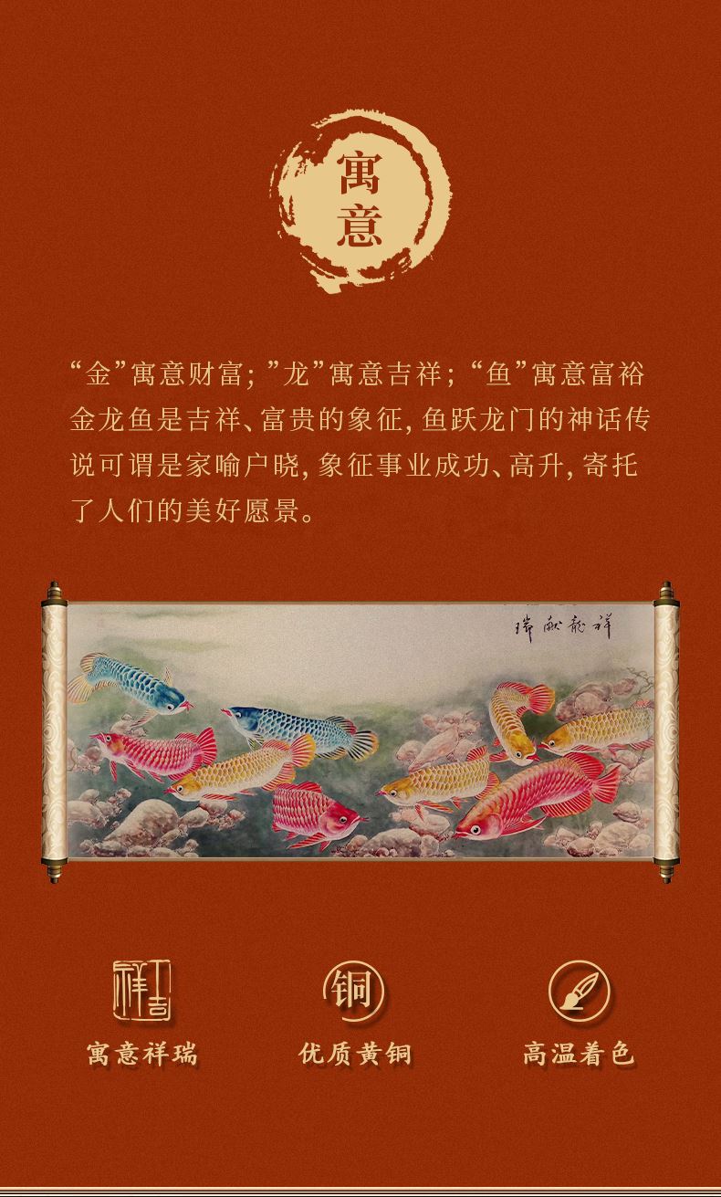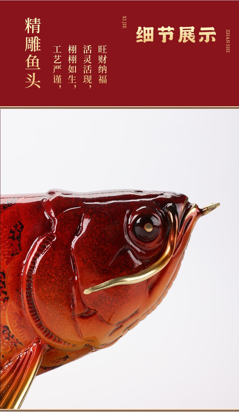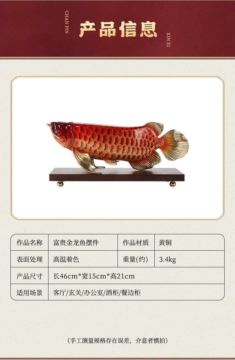 大漆工艺全铜金龙鱼摆件客厅送老板办公室桌面装饰品乔迁开业礼品大漆彩铜工艺 富贵金龙鱼摆件(450*150*180)