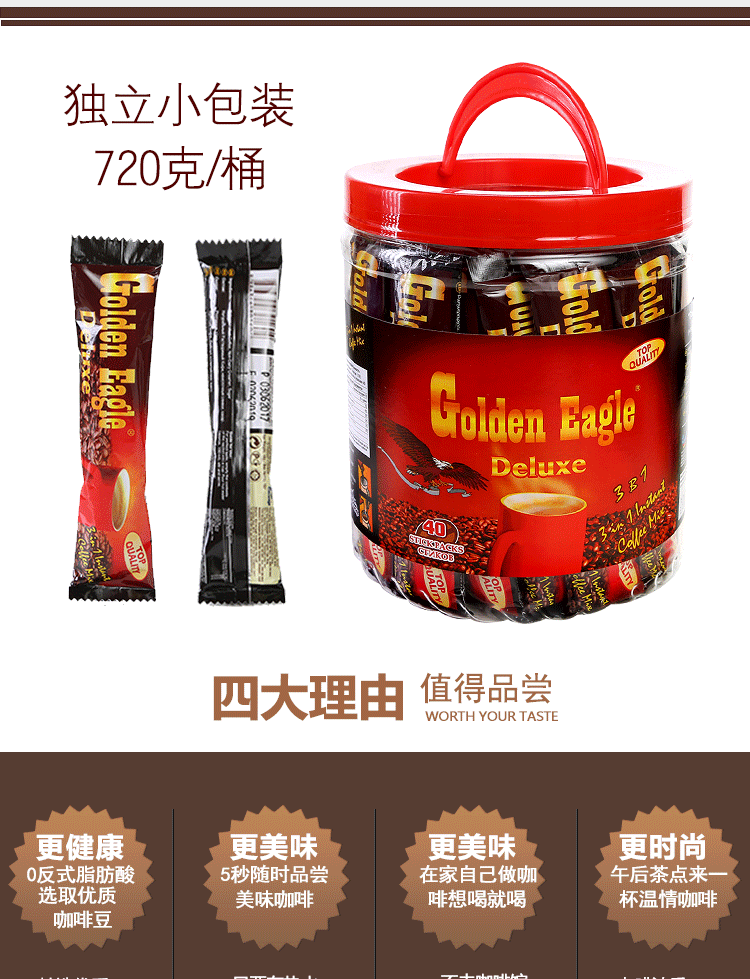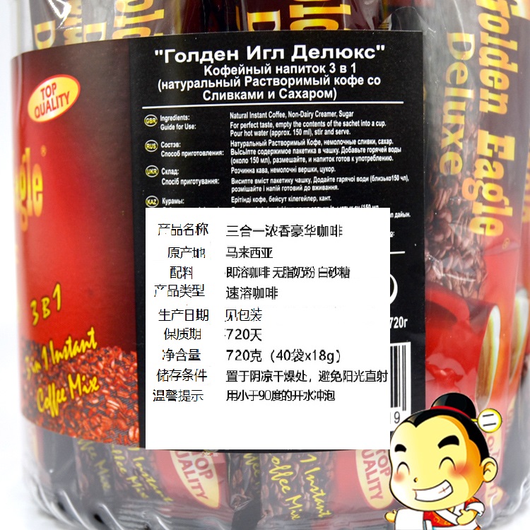 【中欧班列精选】俄罗斯进口马来西亚原产大鹰礼桶装咖啡独立包装三合一便携速溶咖啡720克/桶