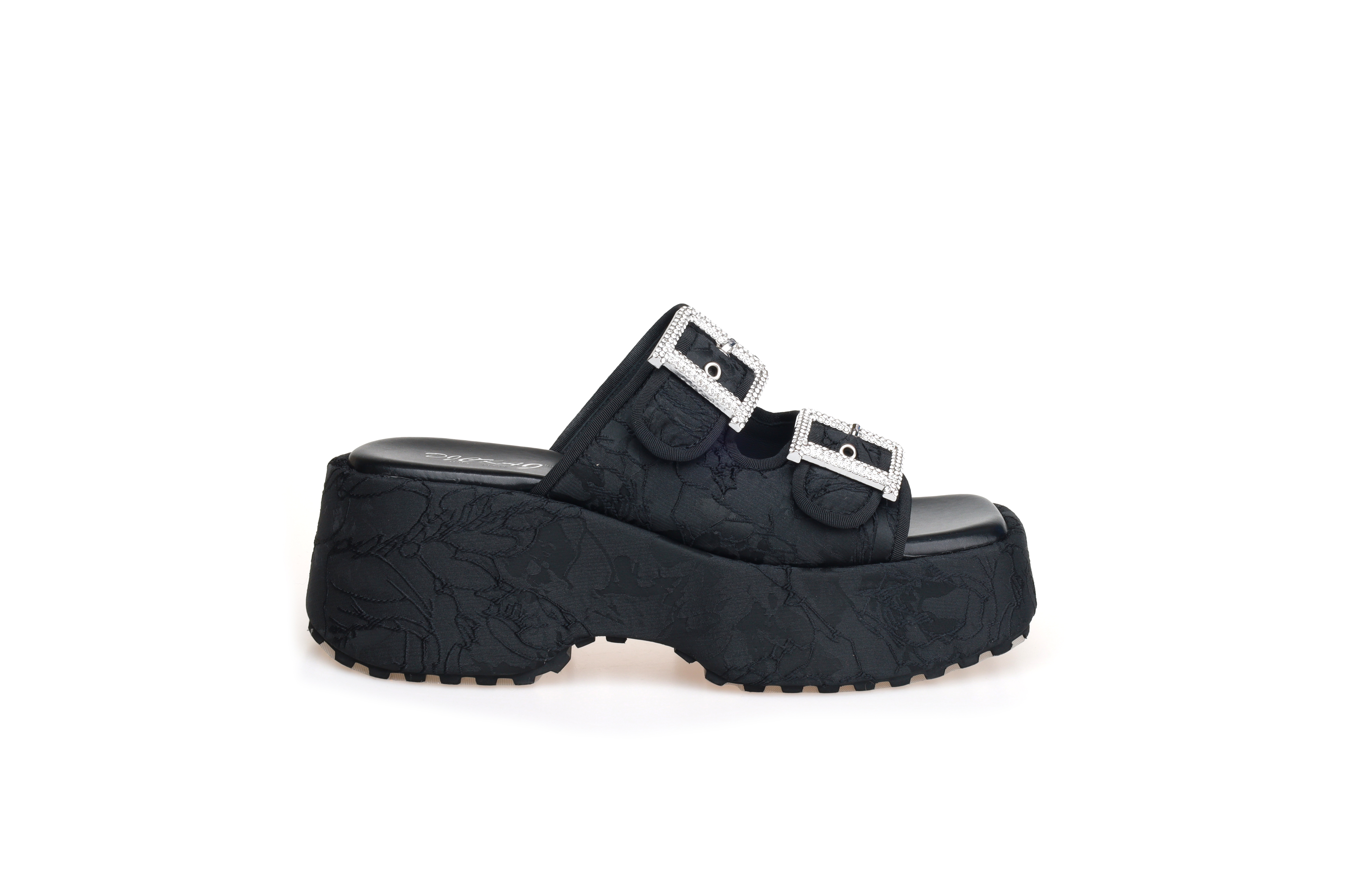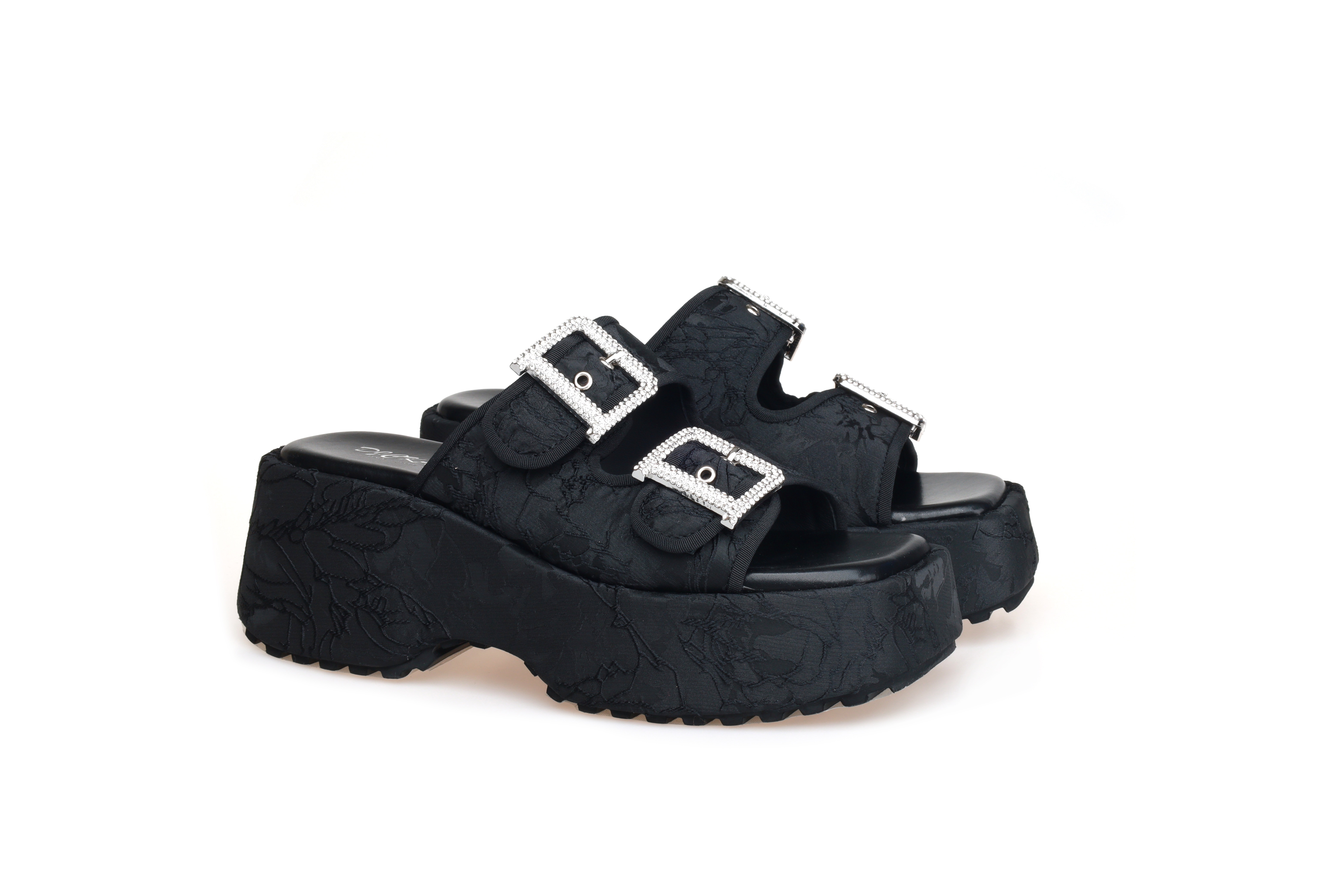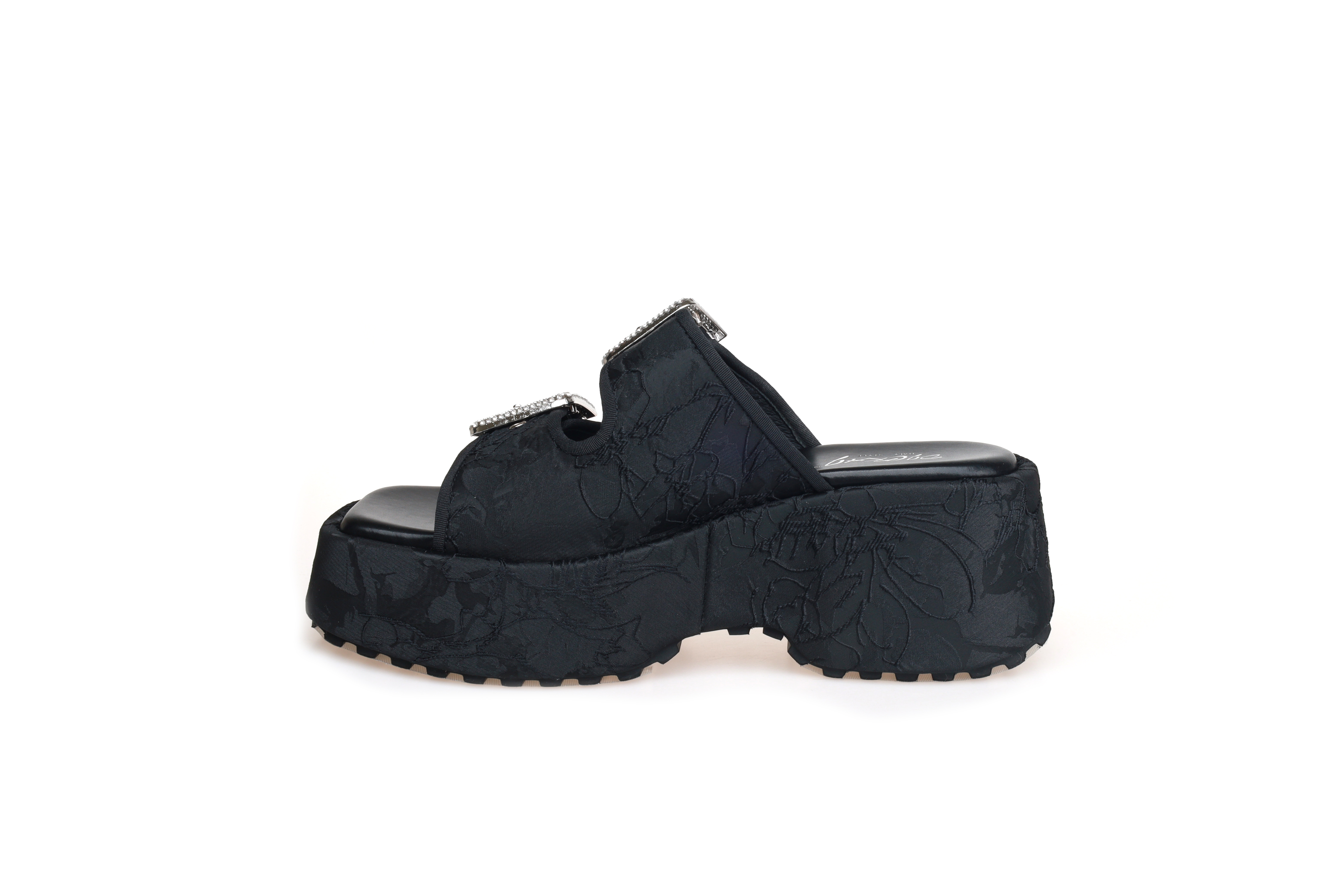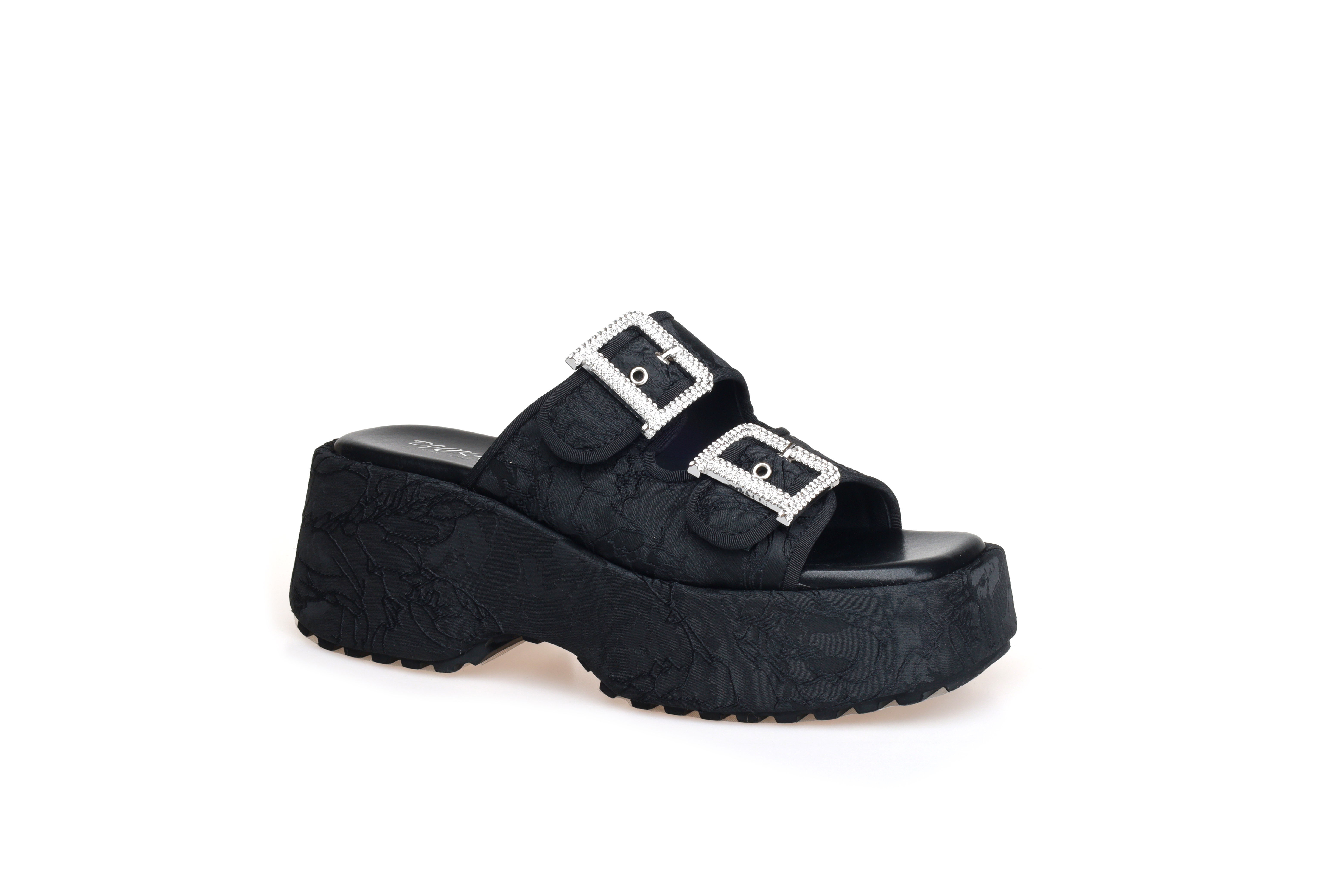 豪麟名鞋奥莱迪嘉女鞋凉拖织物/牛皮革DJYYO51WL209黑色 原价1960元
