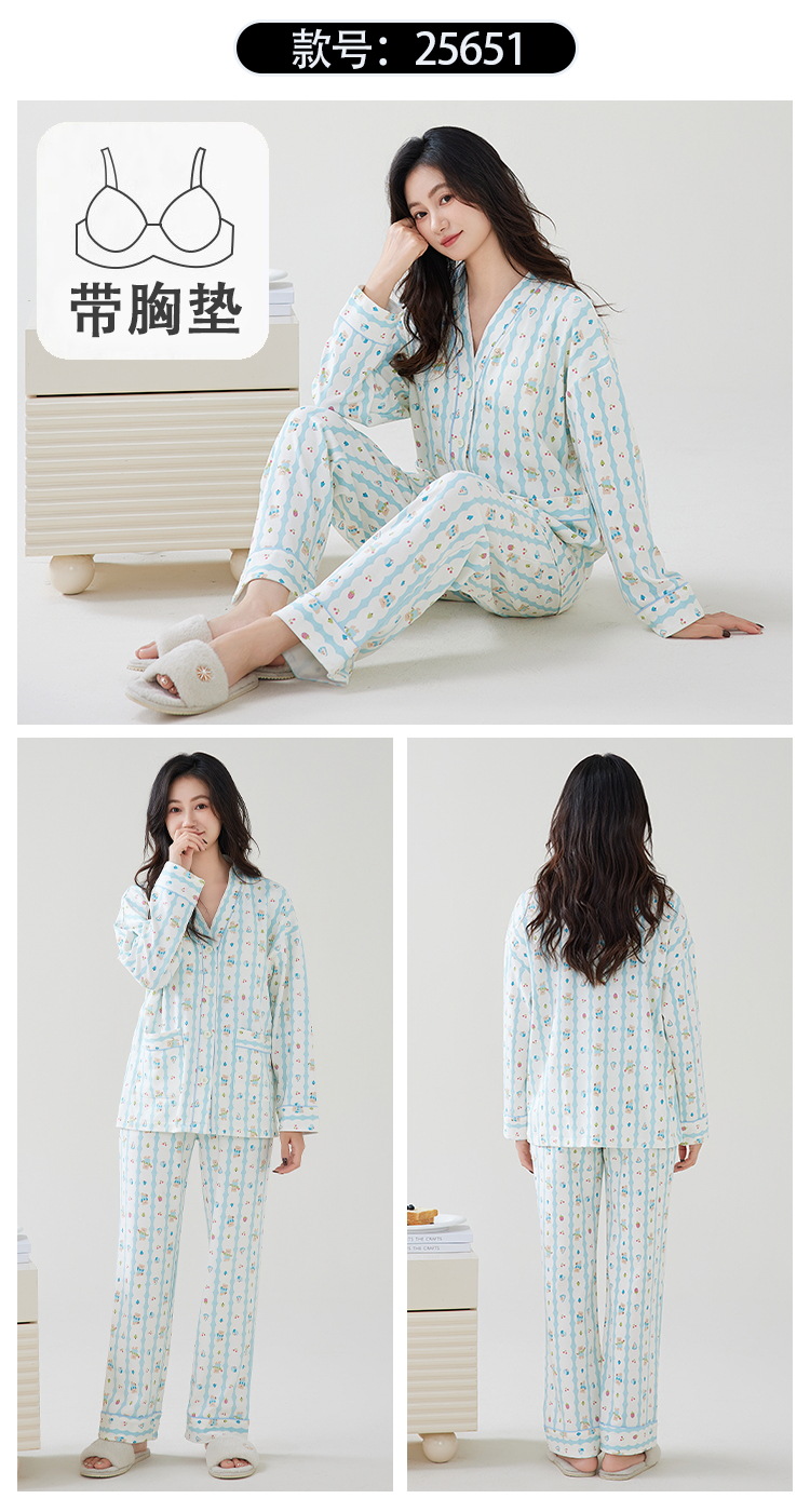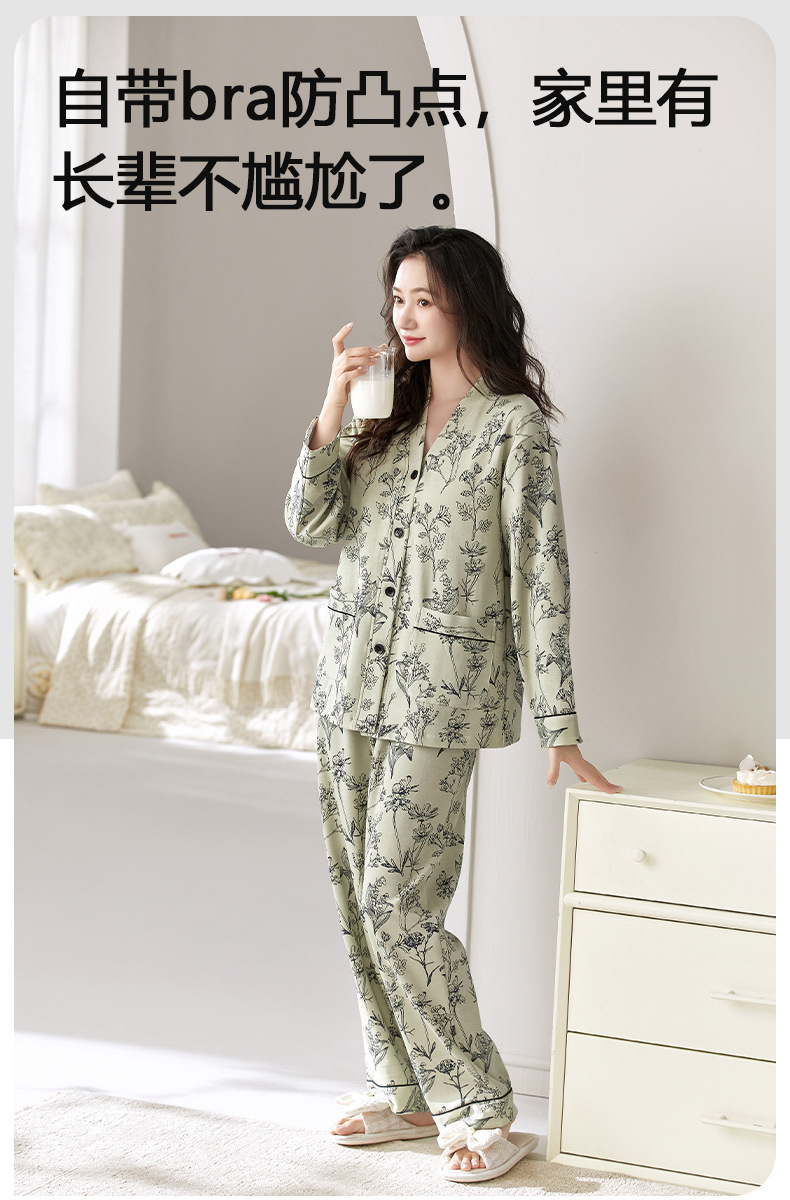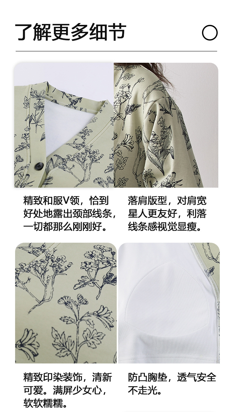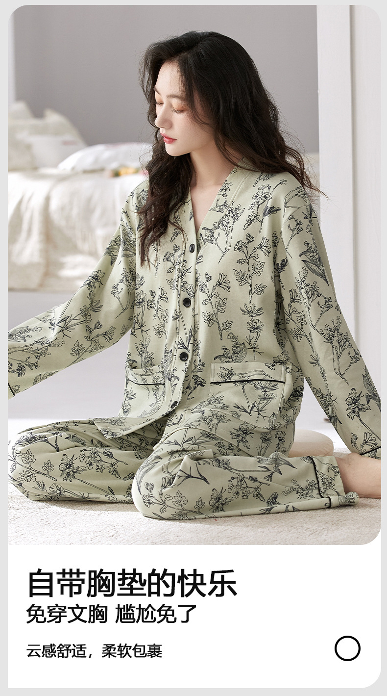 国风开衫睡衣新款带胸垫卡通睡衣女春秋款冬季长袖薄款开衫和服家居服可外穿两件套