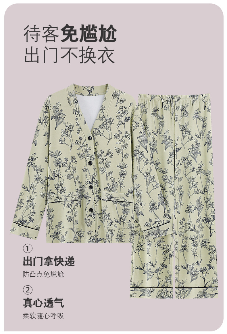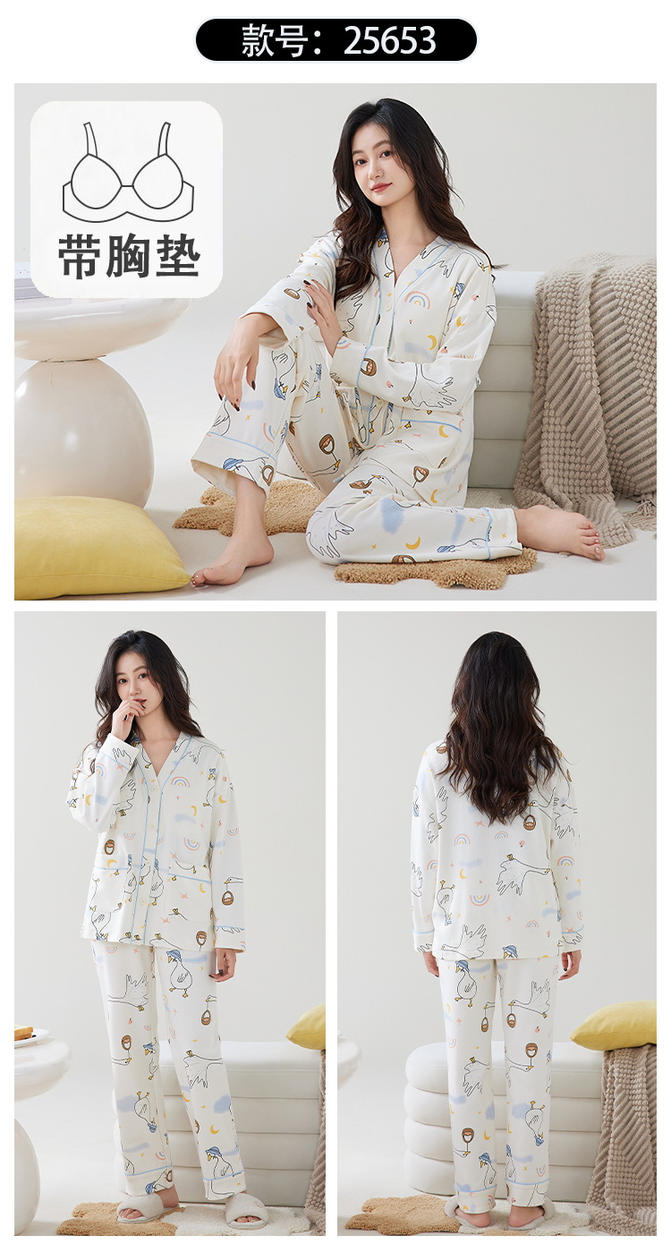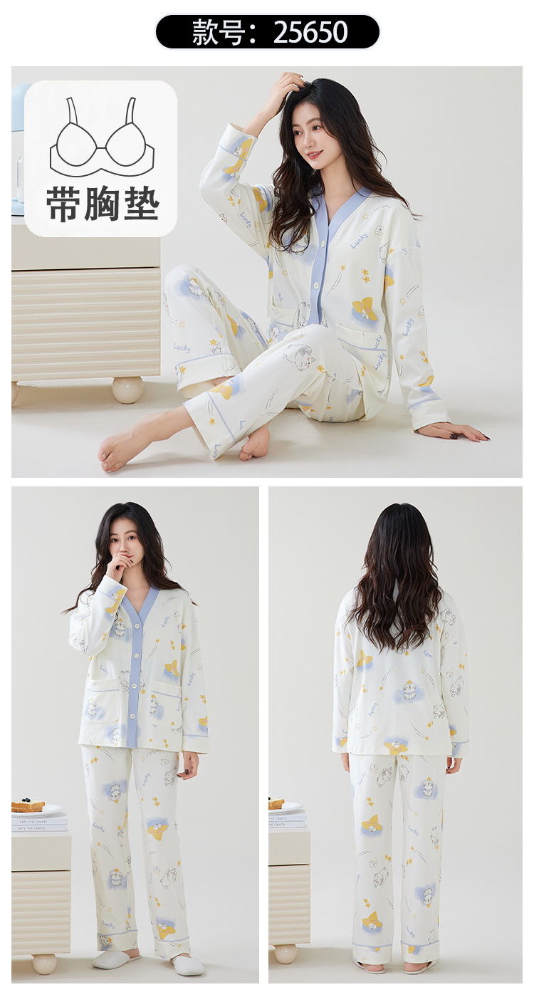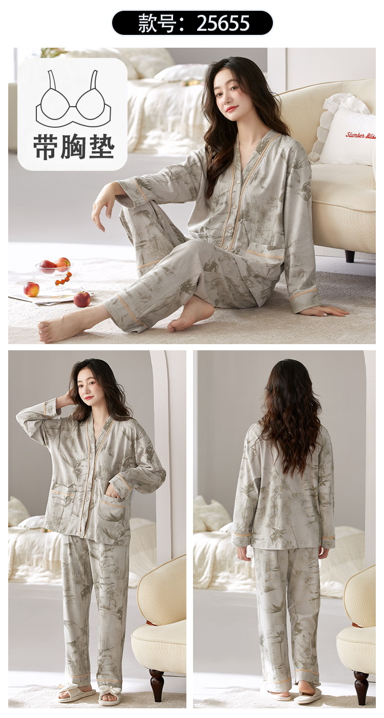 国风开衫睡衣新款带胸垫卡通睡衣女春秋款冬季长袖薄款开衫和服家居服可外穿两件套