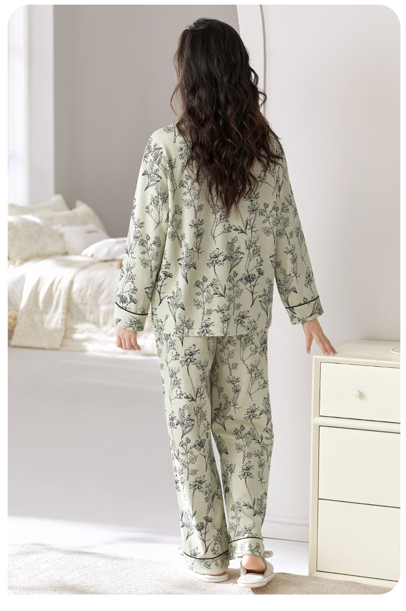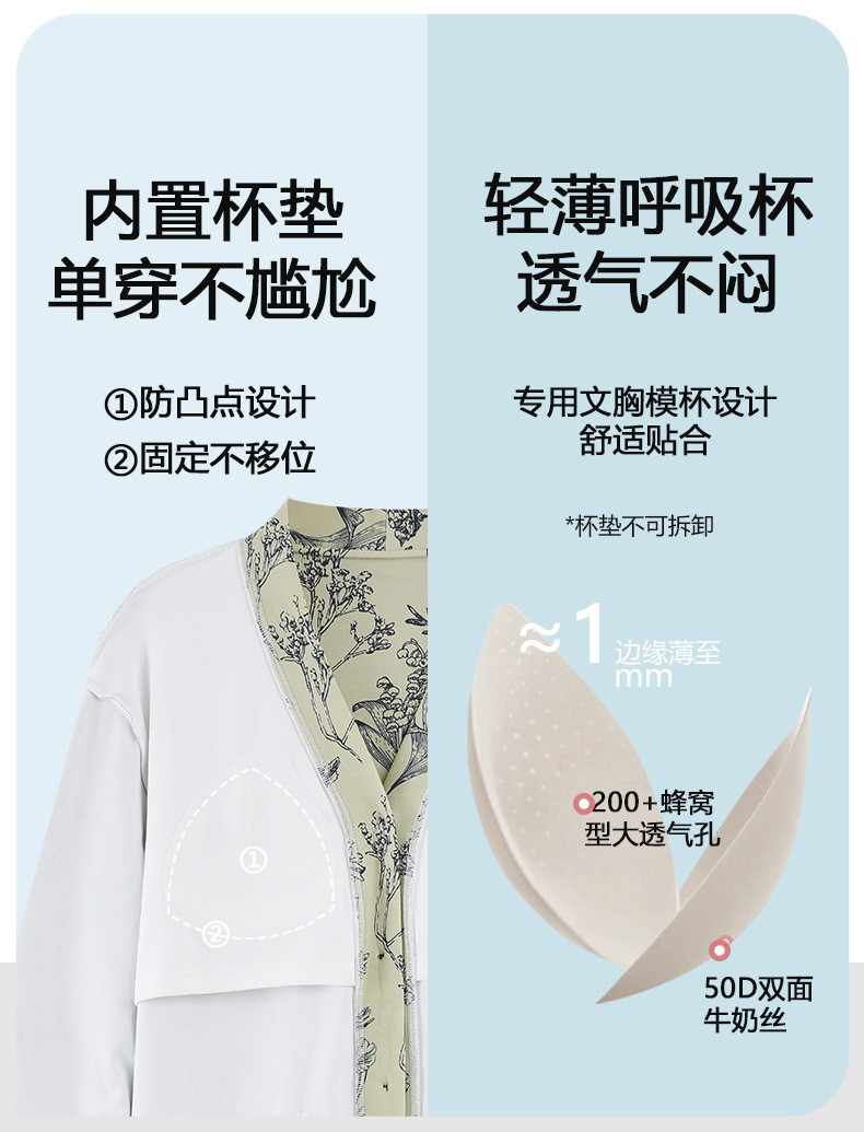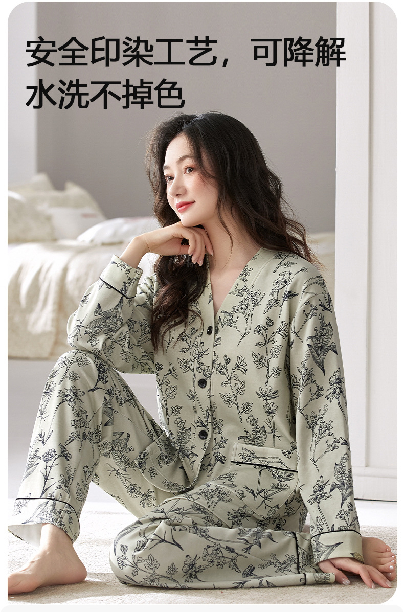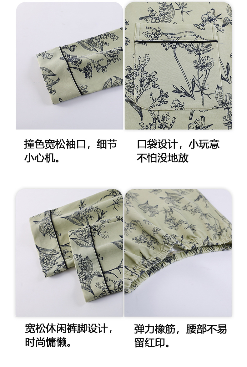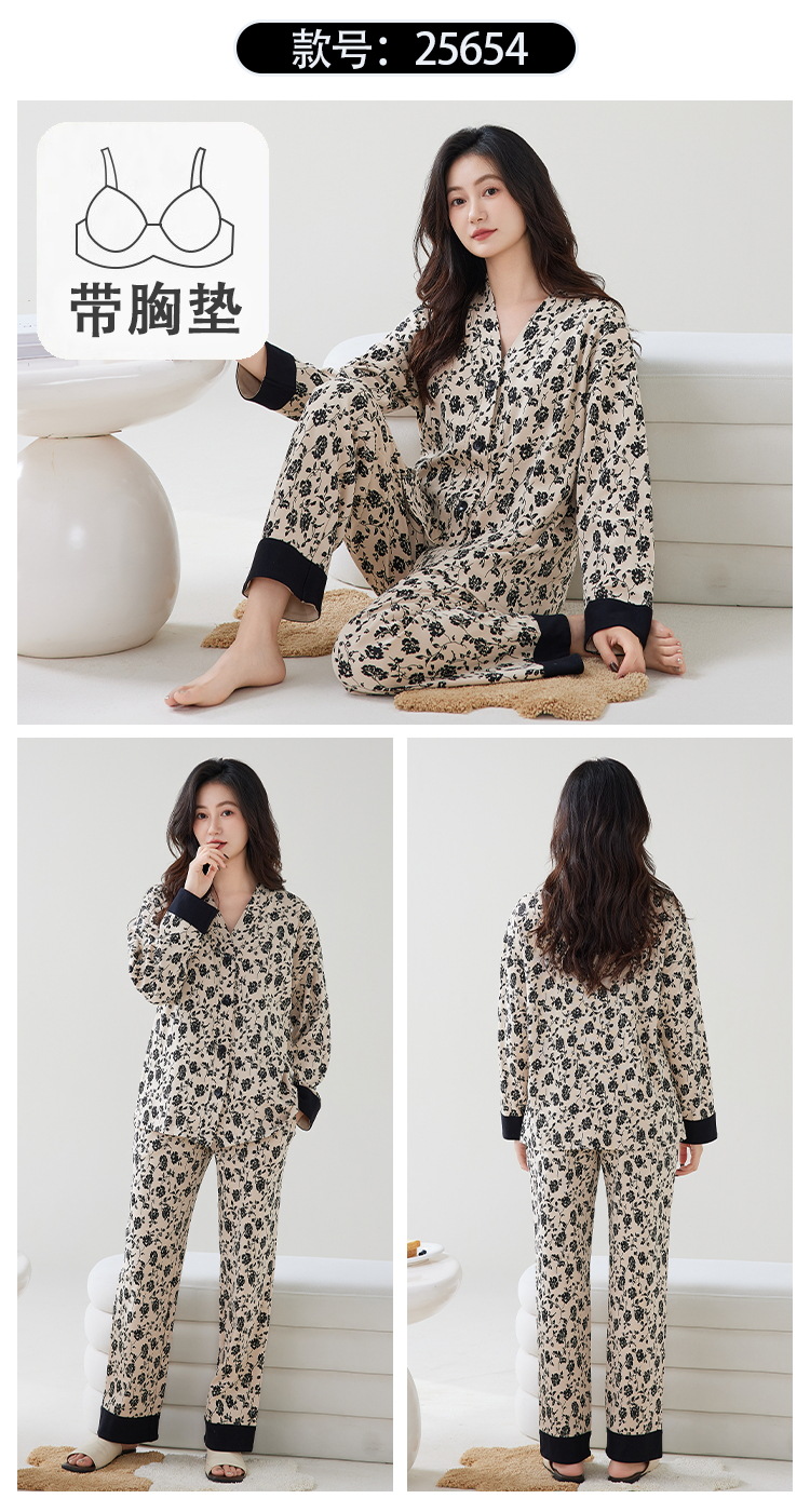 国风开衫睡衣新款带胸垫卡通睡衣女春秋款冬季长袖薄款开衫和服家居服可外穿两件套