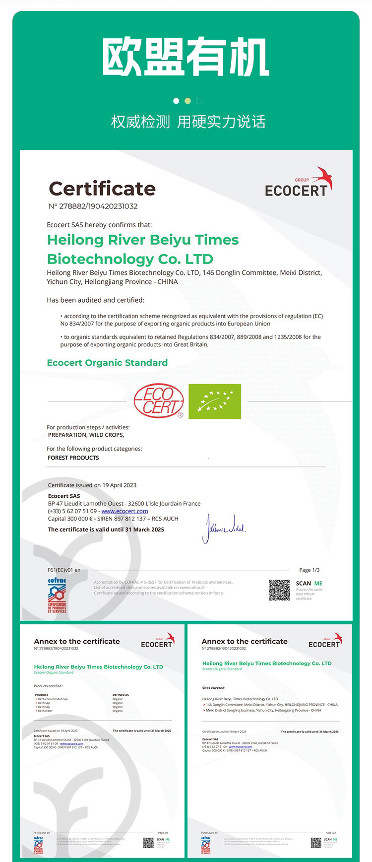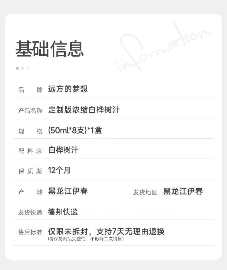 【检测308项0农残!浓缩白桦树汁 欧盟有机认证!】来自大自然的馈赠!生命之水!50ml*8支/盒