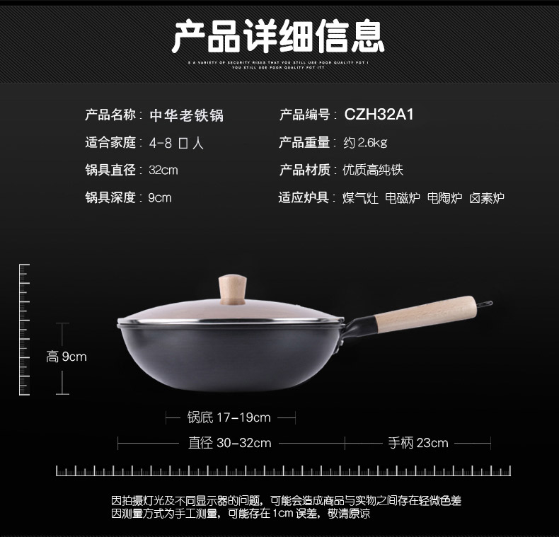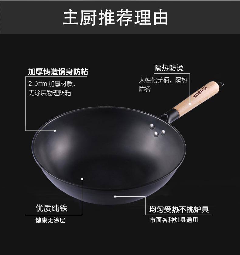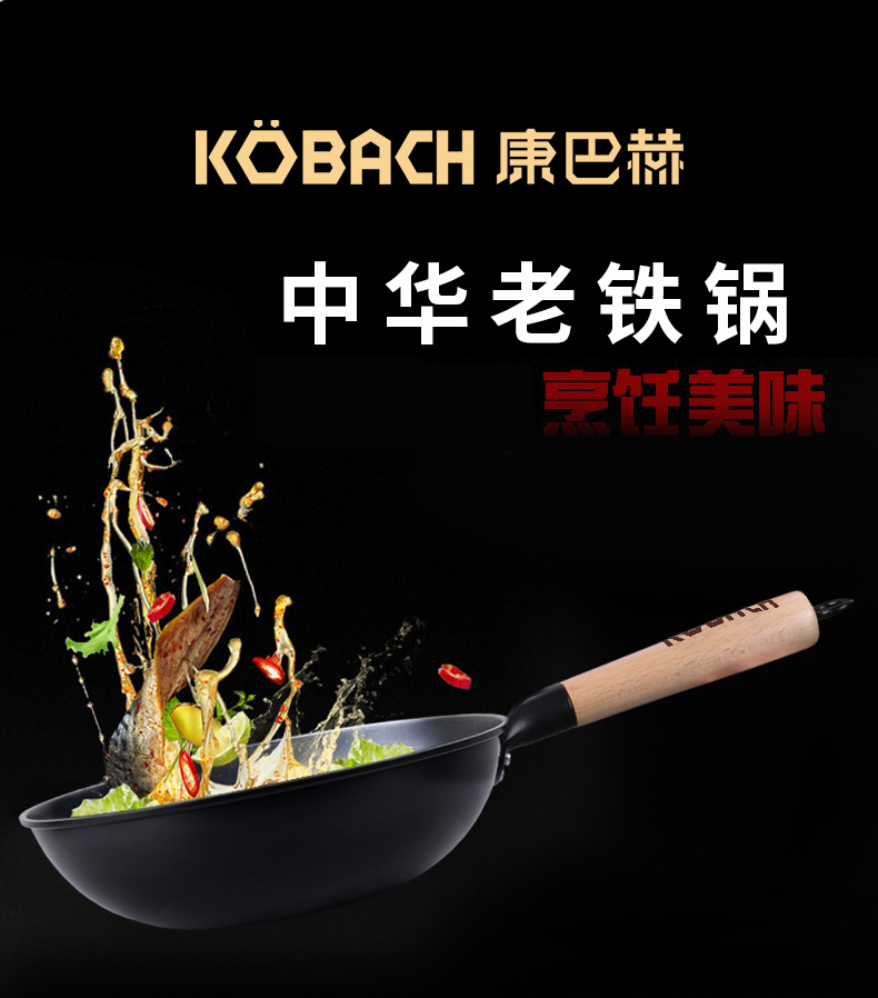 康巴赫炒锅精铸铁锅炒菜锅电磁炉煤气灶通用无涂层铁锅CZH32A1