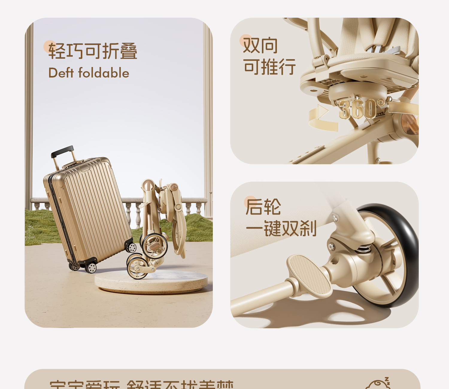 360°全景新升级儿童遛娃神器 轻便双向一键折叠高景观推车 男女宝可坐躺溜娃折叠车 婴儿手推车